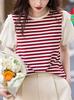 Camiseta de manga corta con cuello redondo y costuras a rayas de moda para mujer, novedad de verano 2025, top holgado y adelgazante de algodón con mangas farol