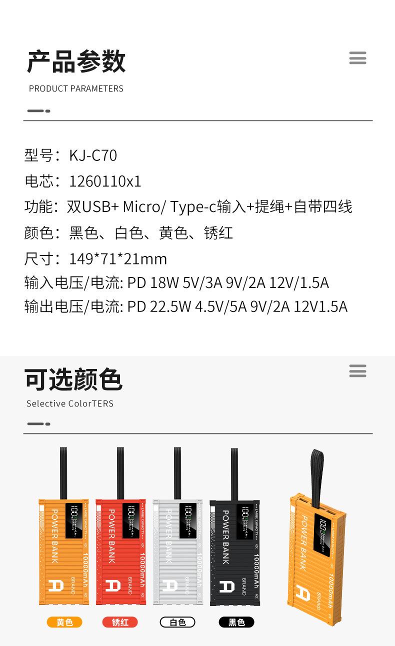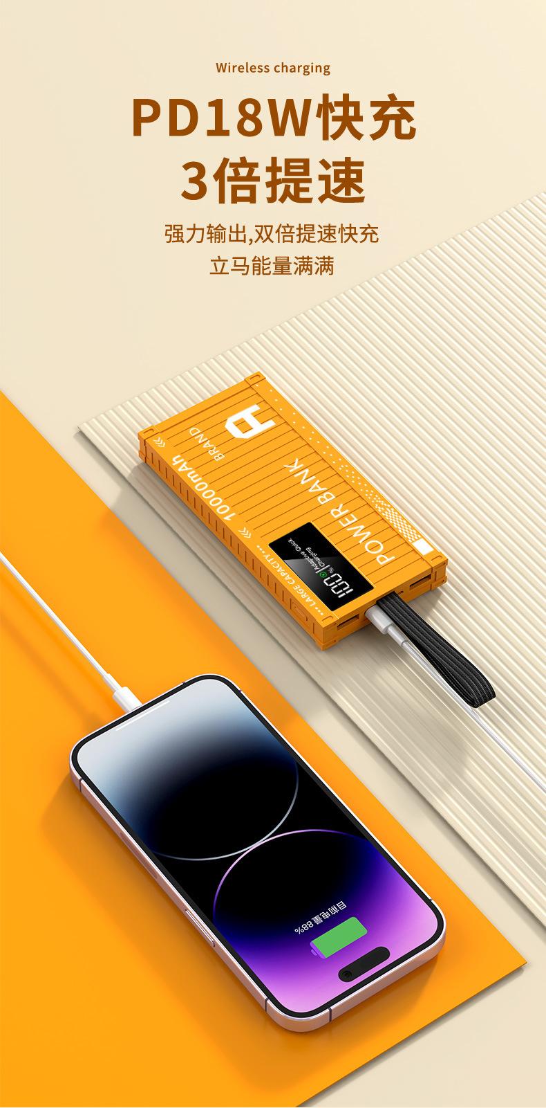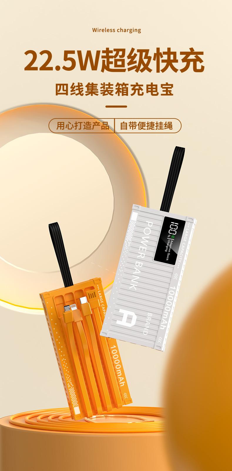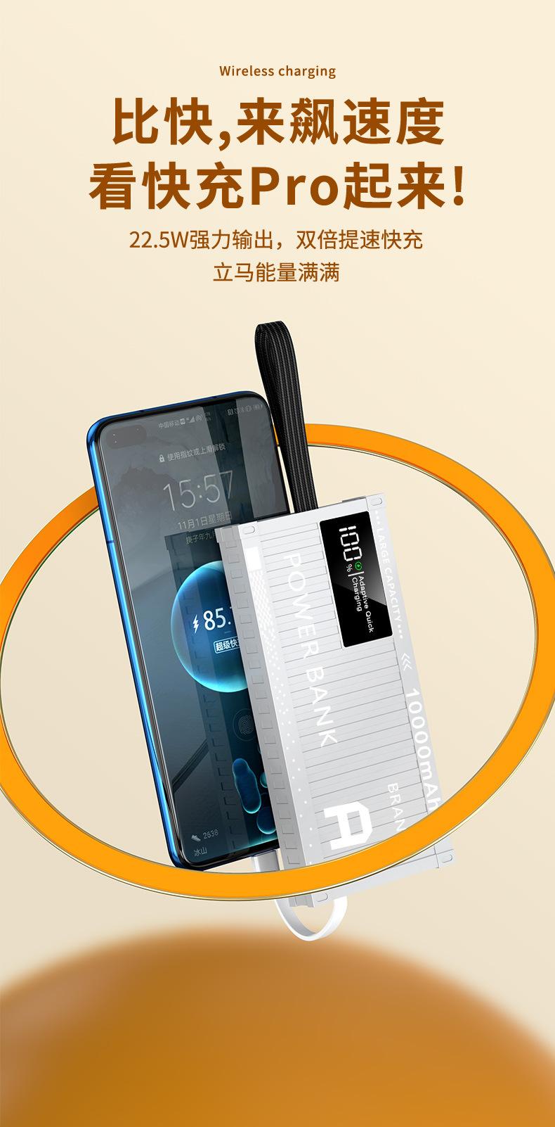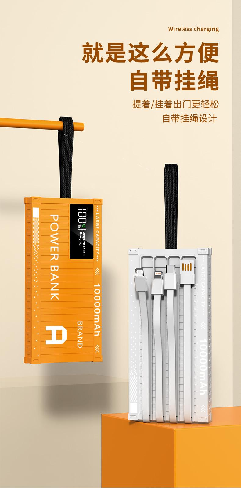 Nuevo contenedor colorido de gran capacidad tesoro de carga 50000 mA carga rápida 22.5W fuente de alimentación móvil con autocinturón