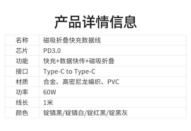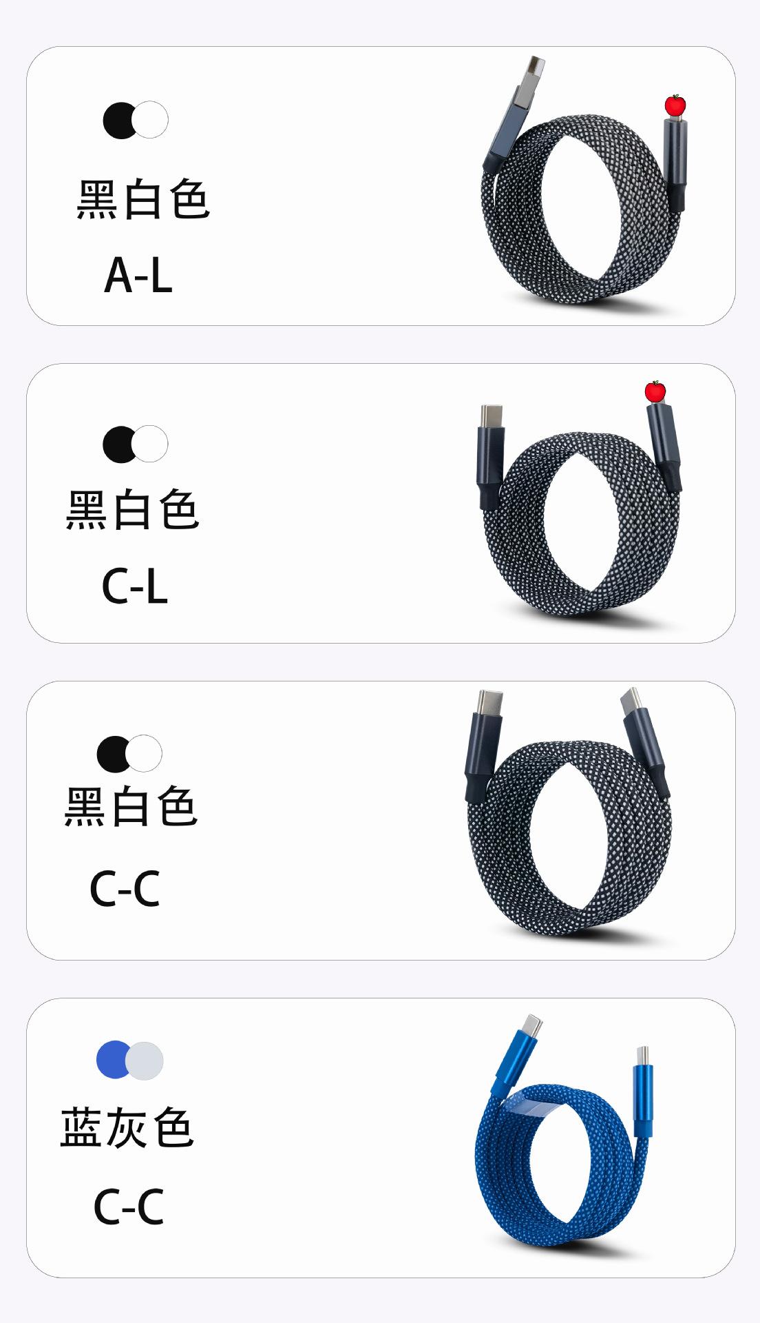 Black and white braided magnetic data cable 1m c-pingguo