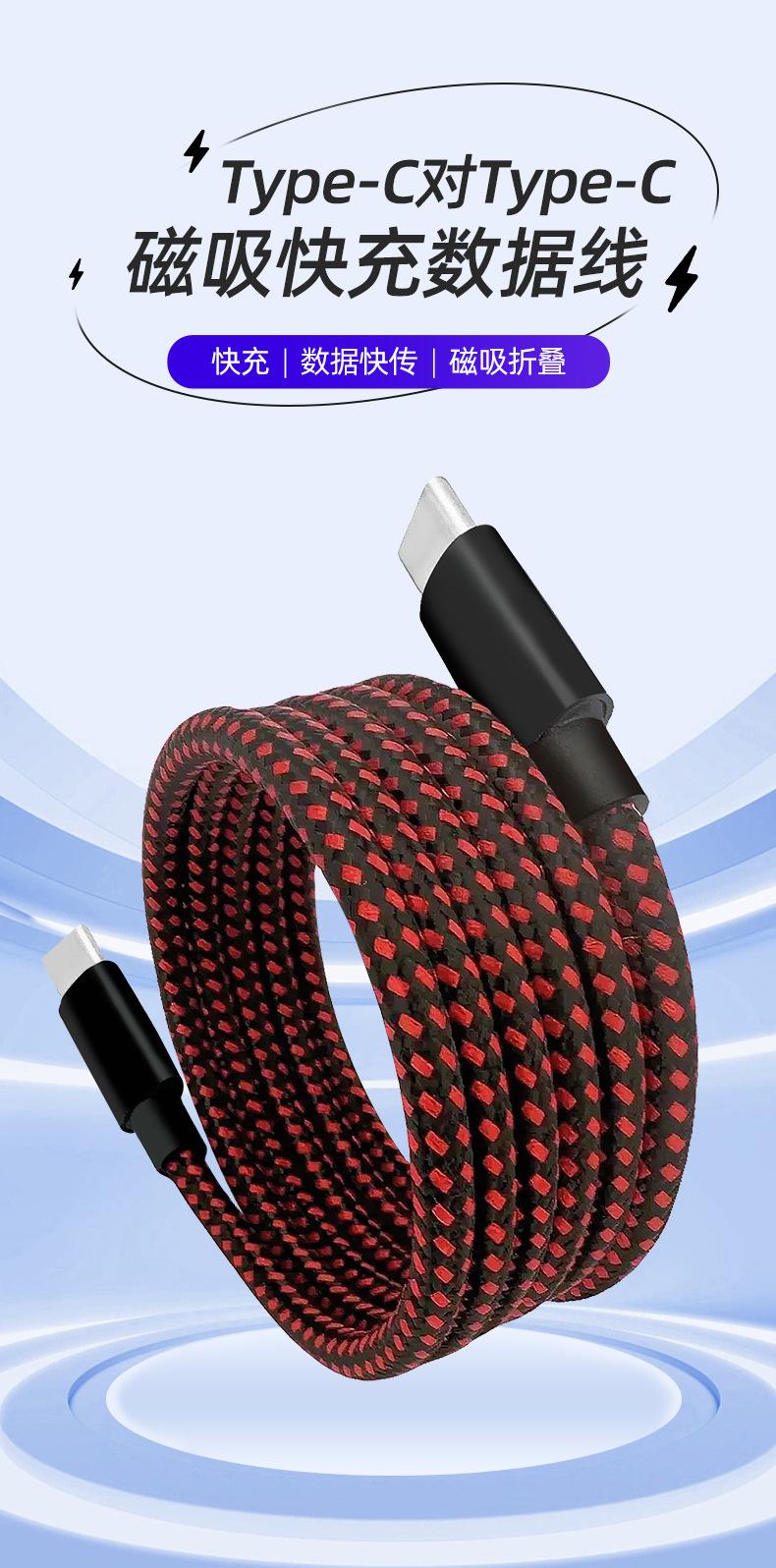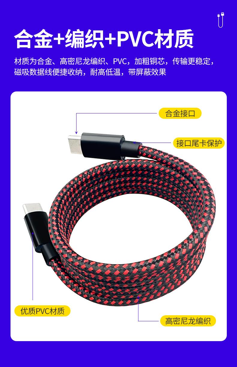 Cable de carga magnético Tipo C de doble cabezal cable de datos para teléfono móvil para coche C a C para cable de carga rápida Apple pd60w