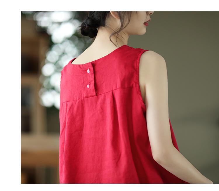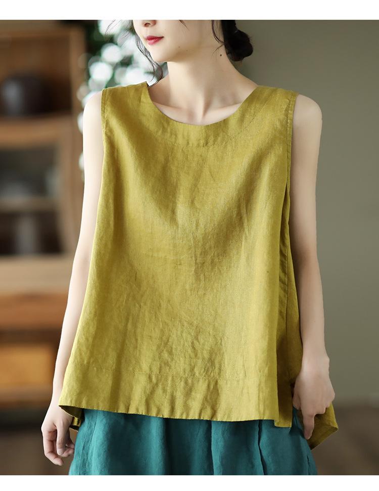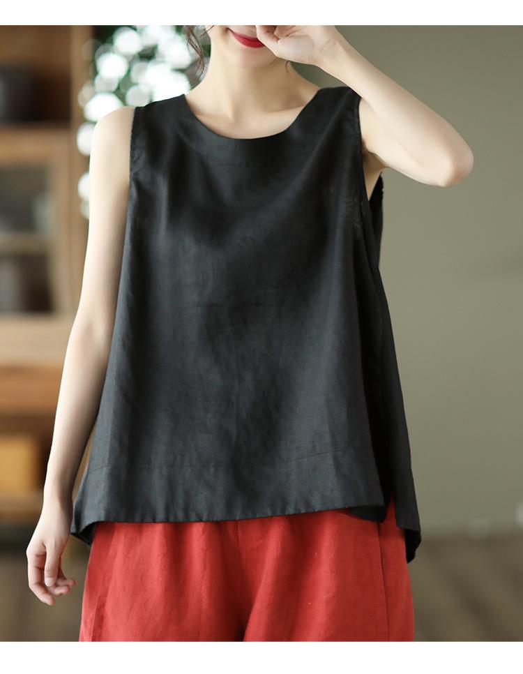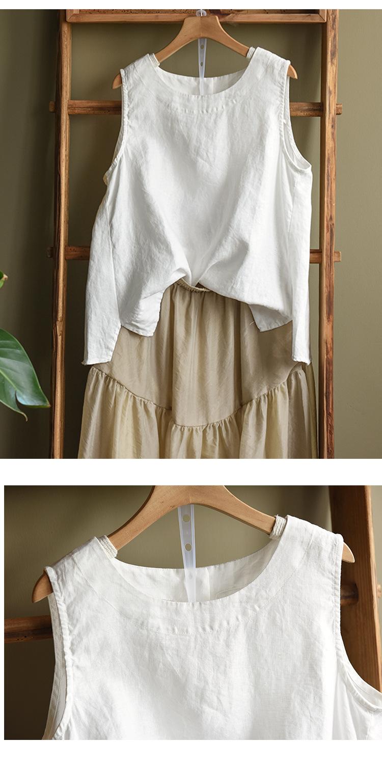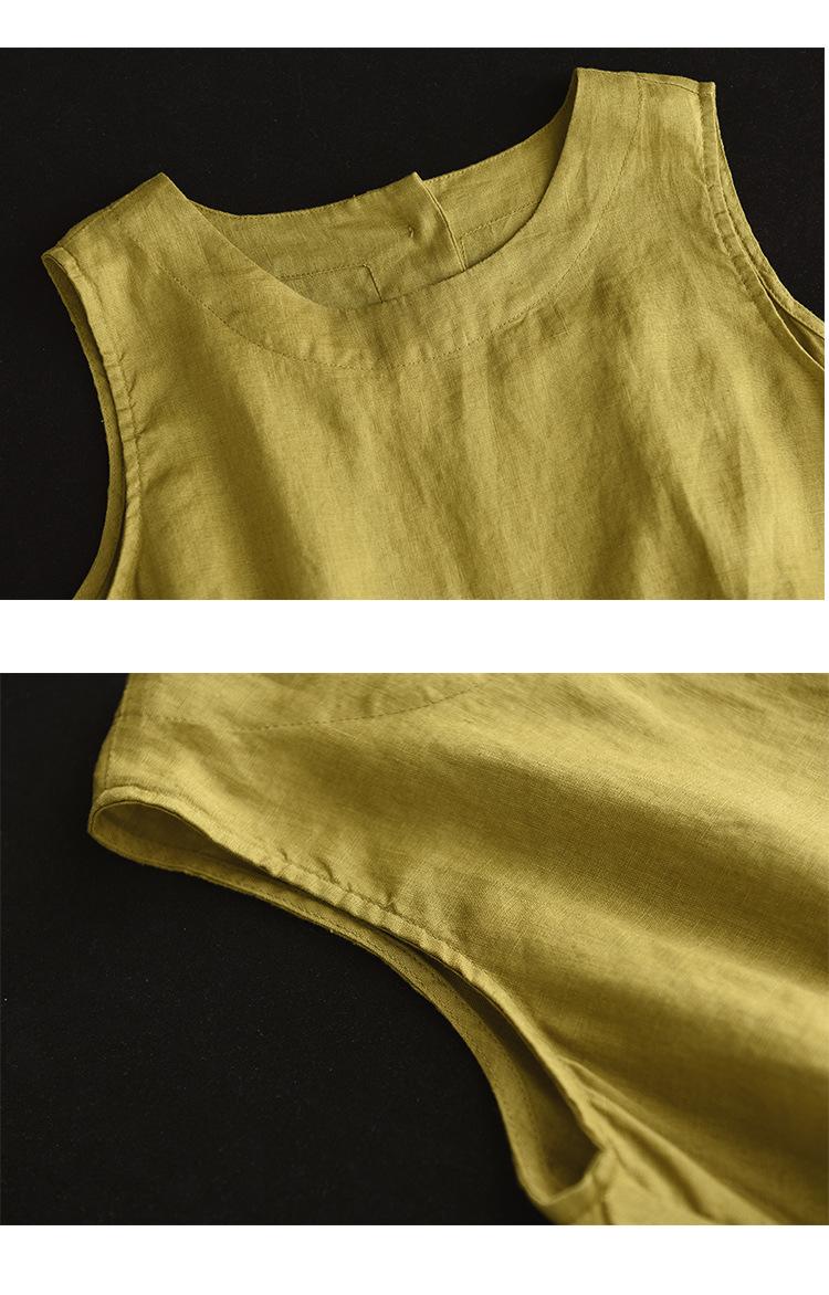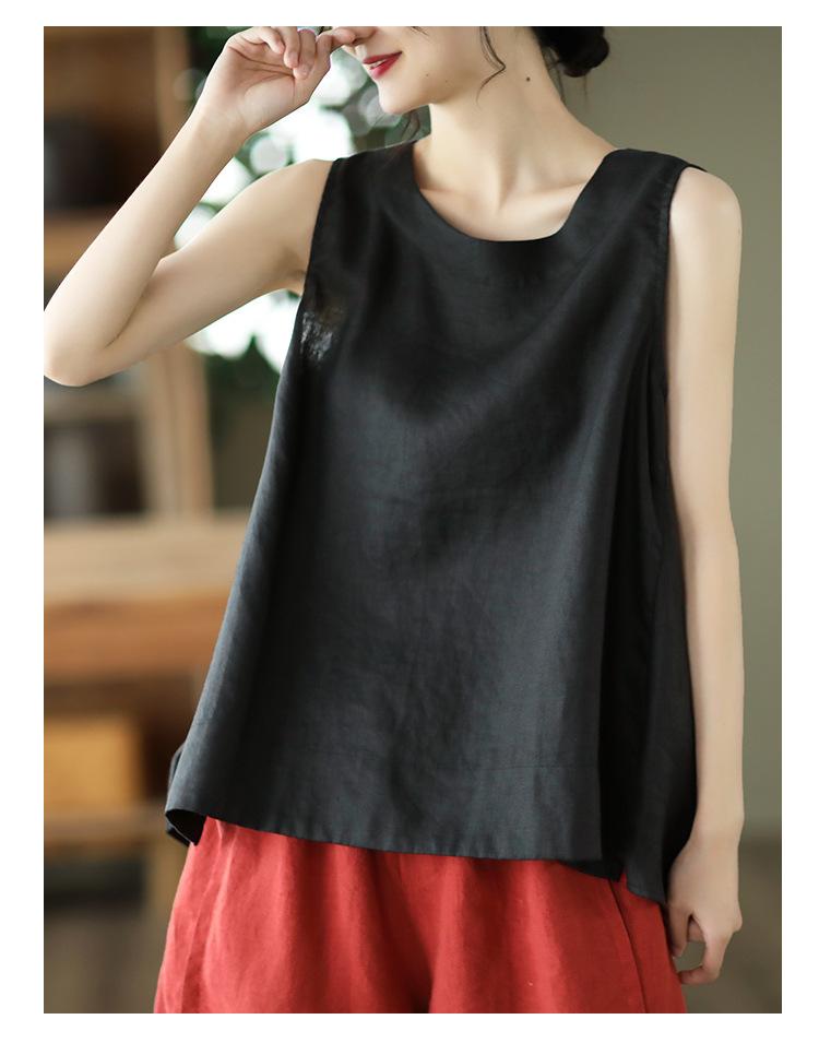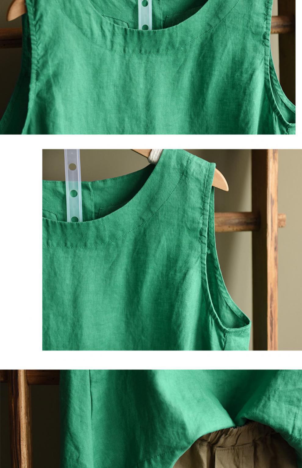 Camisola de algodón y lino en stock, holgada, fina, interior de lino, sin mangas, para mujer, verano