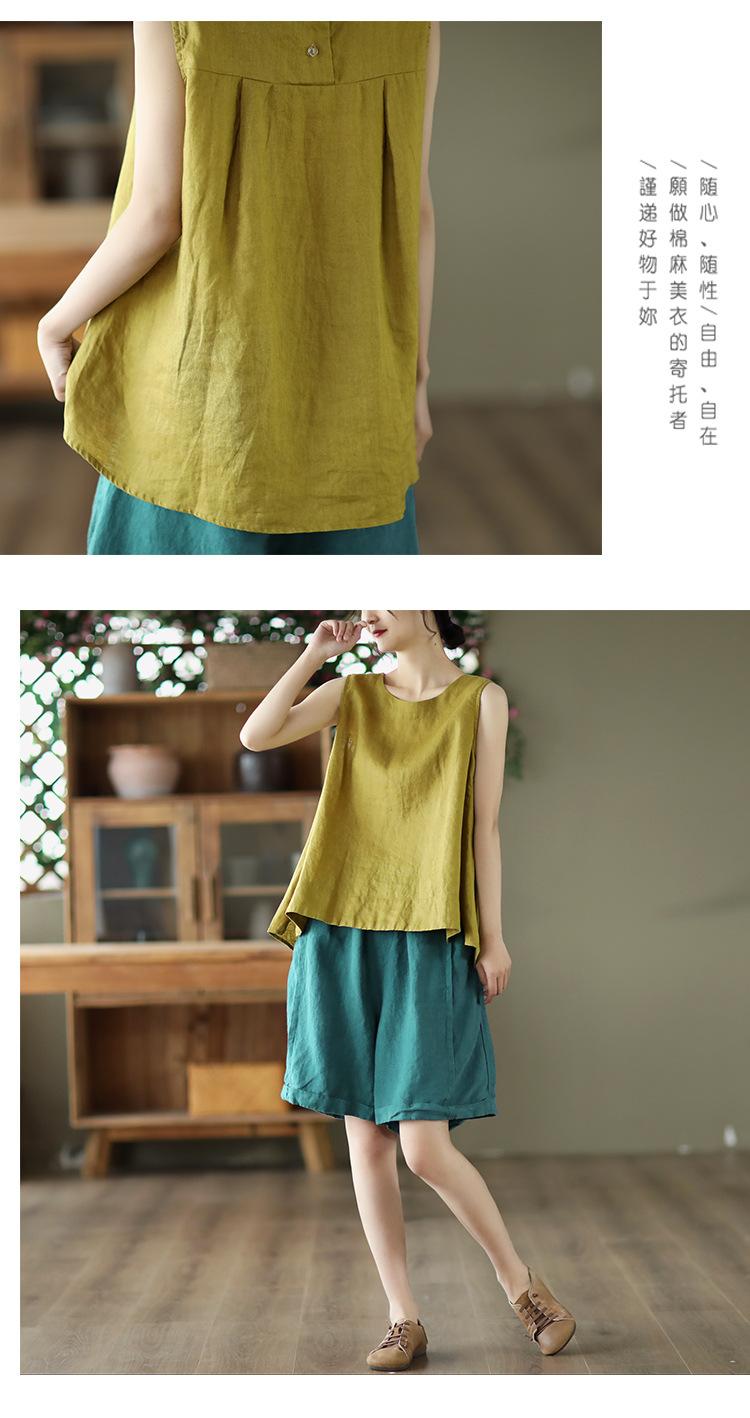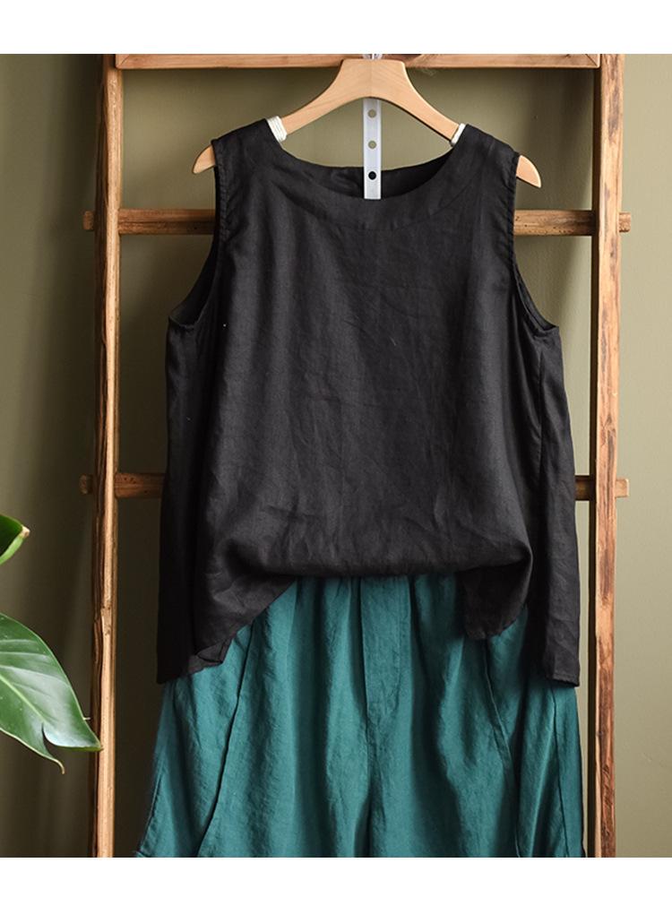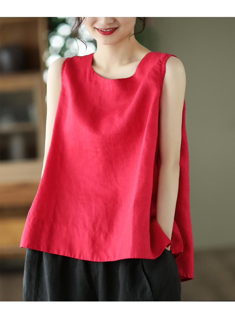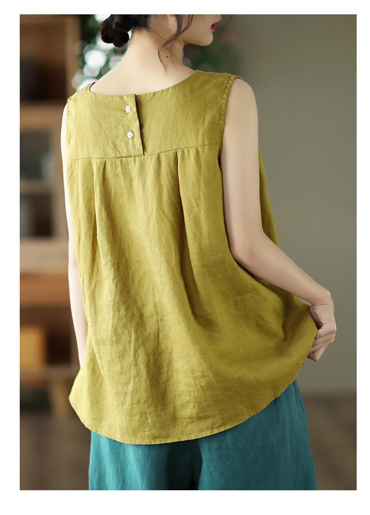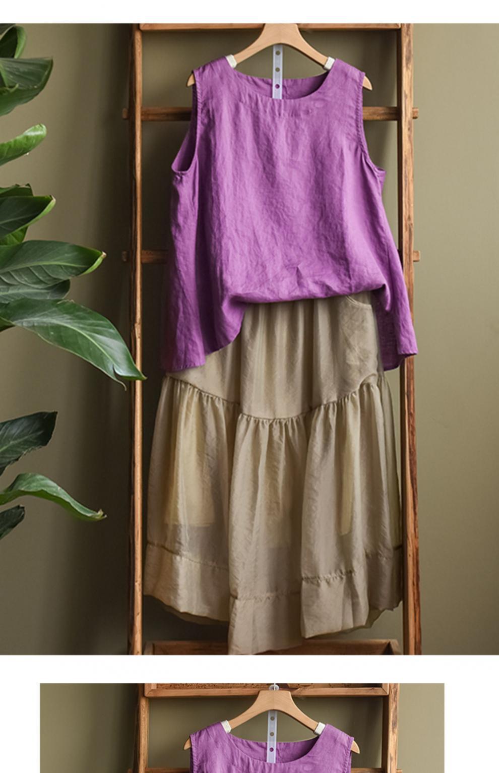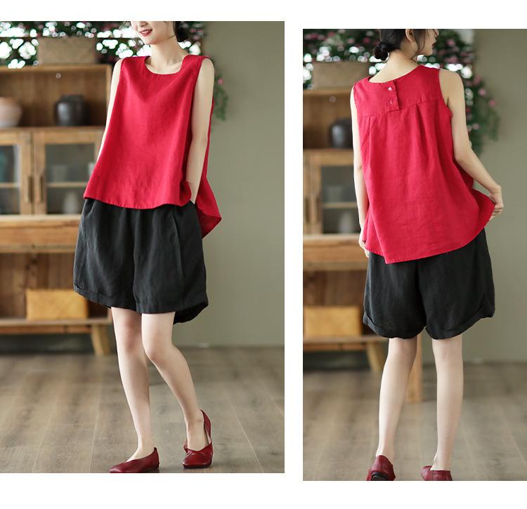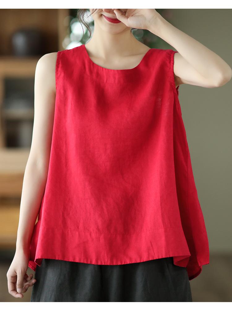 Camisola de algodón y lino en stock, holgada, fina, interior de lino, sin mangas, para mujer, verano