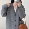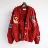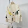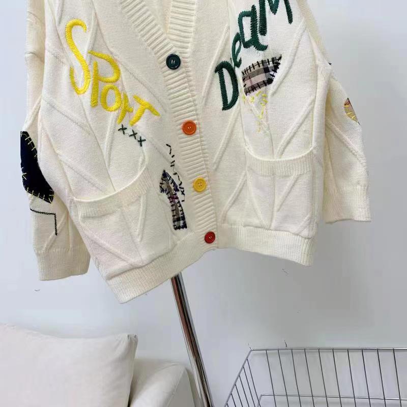 Hongtai Otoño e Invierno Nuevo Estilo Coreano Tejido Suelto Chaqueta de Mujer Pesado Bordado Colorido Moda Cuello en V Suéter de Longitud Media