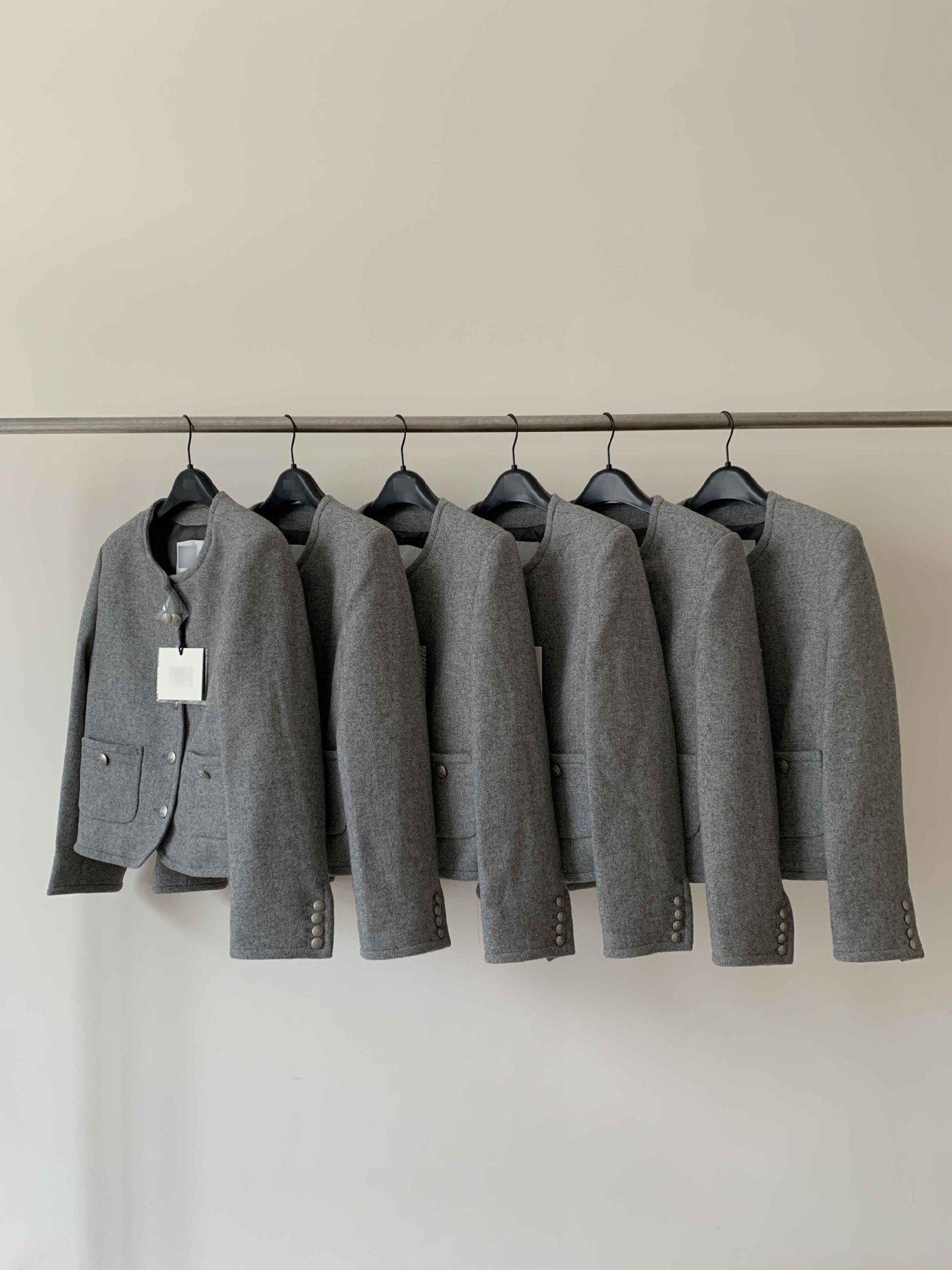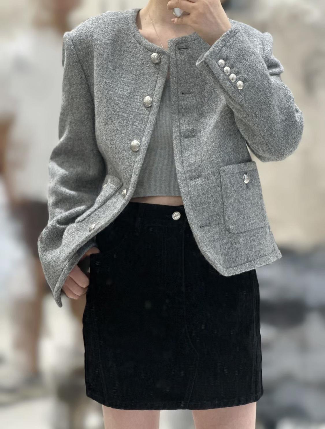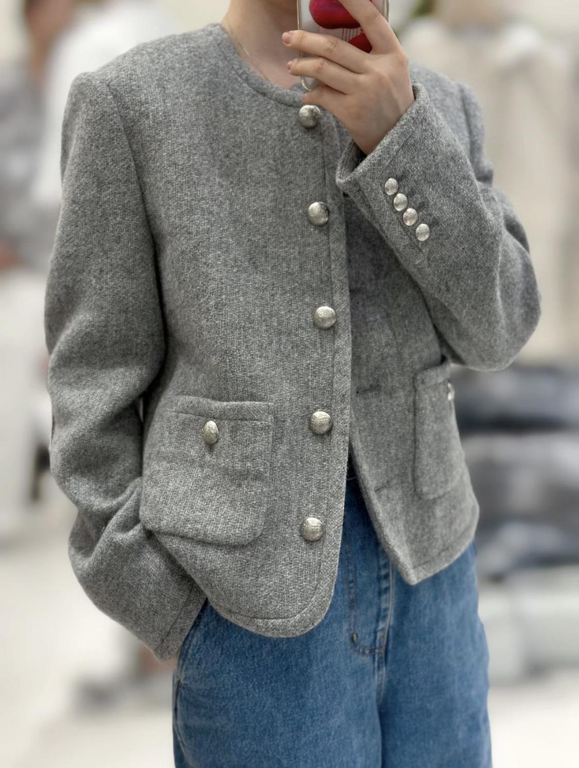 Los botones metálicos hechos a medida que seleccioné tienen una gran textura y un aire muy retro.
