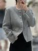 Tejido retro de lana gris con hilos de urdimbre y trama texturizados
