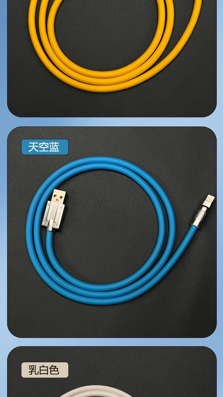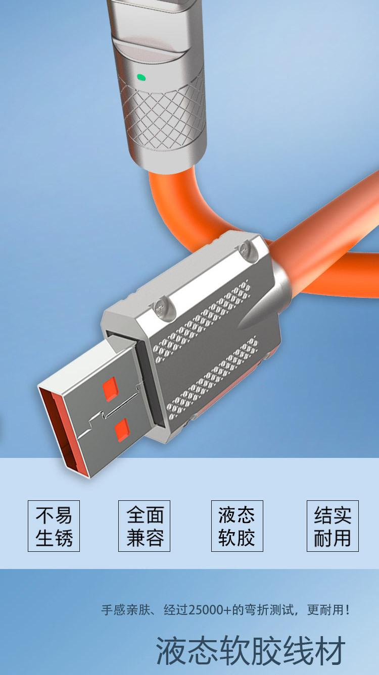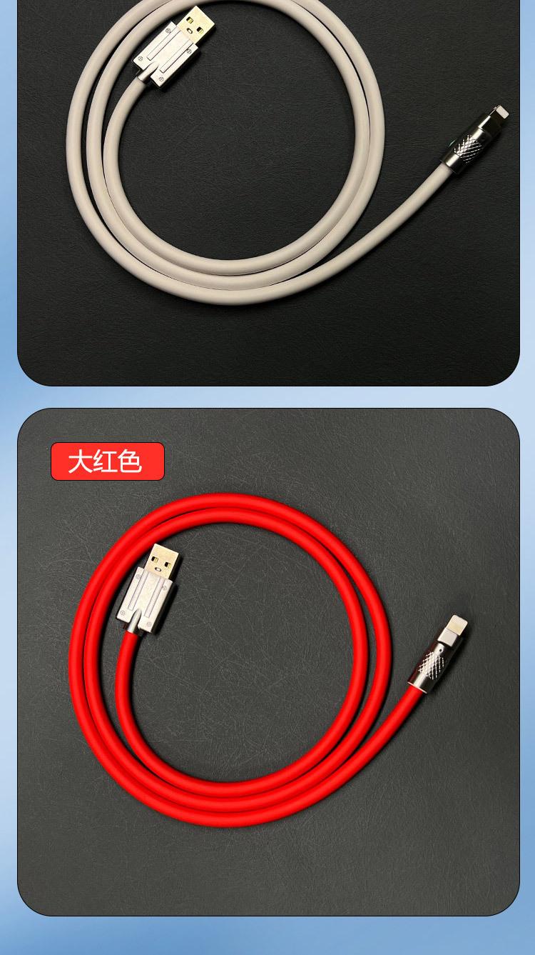 Cable de datos para teléfono móvil de aleación de zinc para pasajeros de máquina con carga rápida para Apple Huawei, cable de carga de silicona líquida de imitación