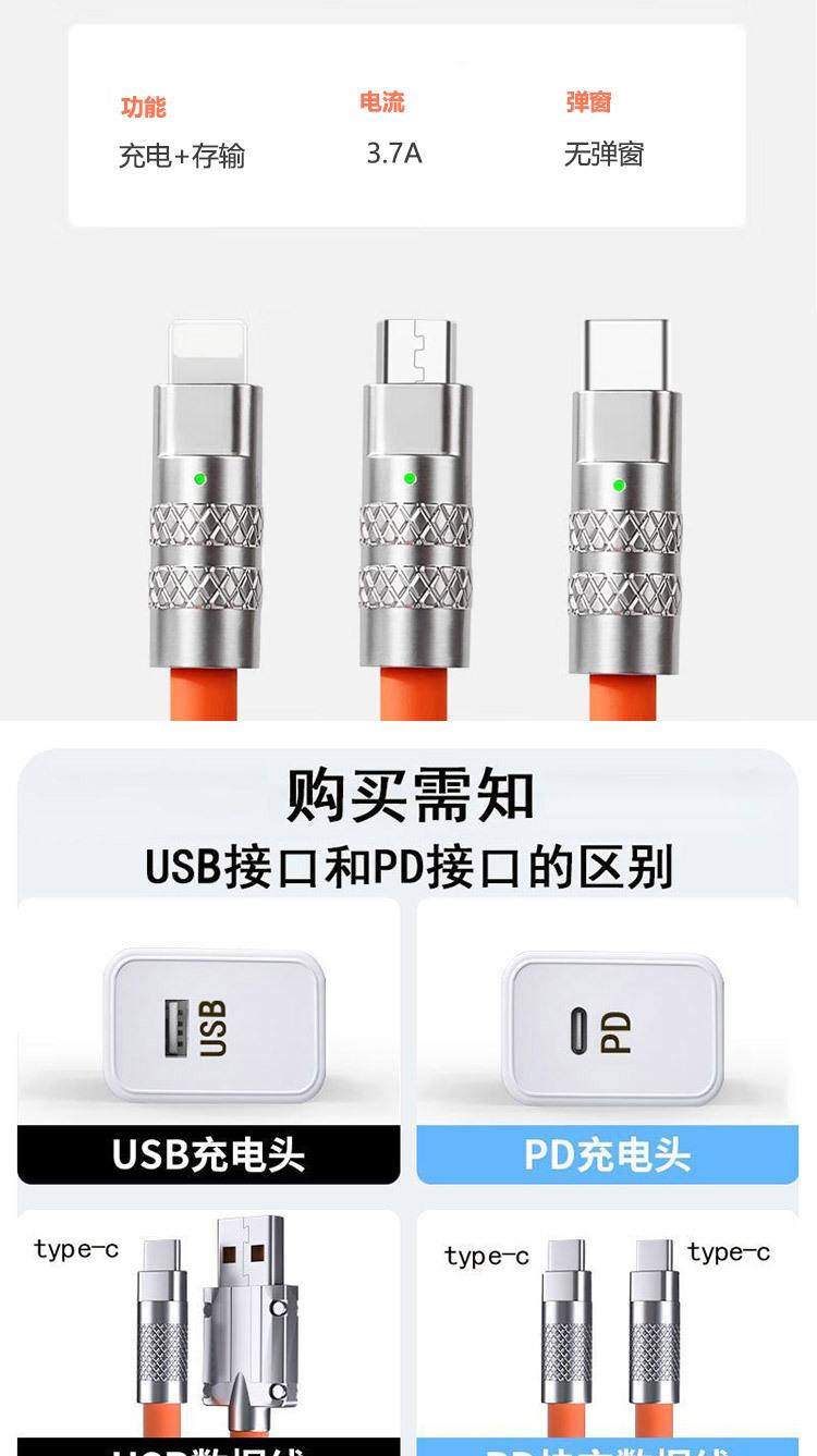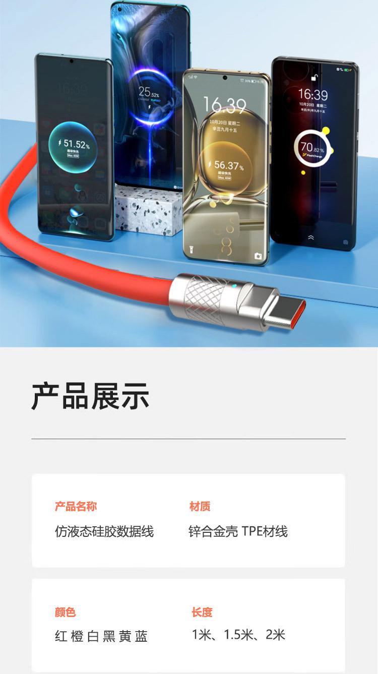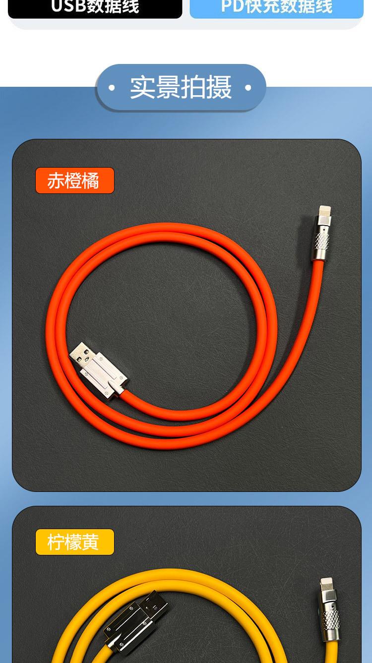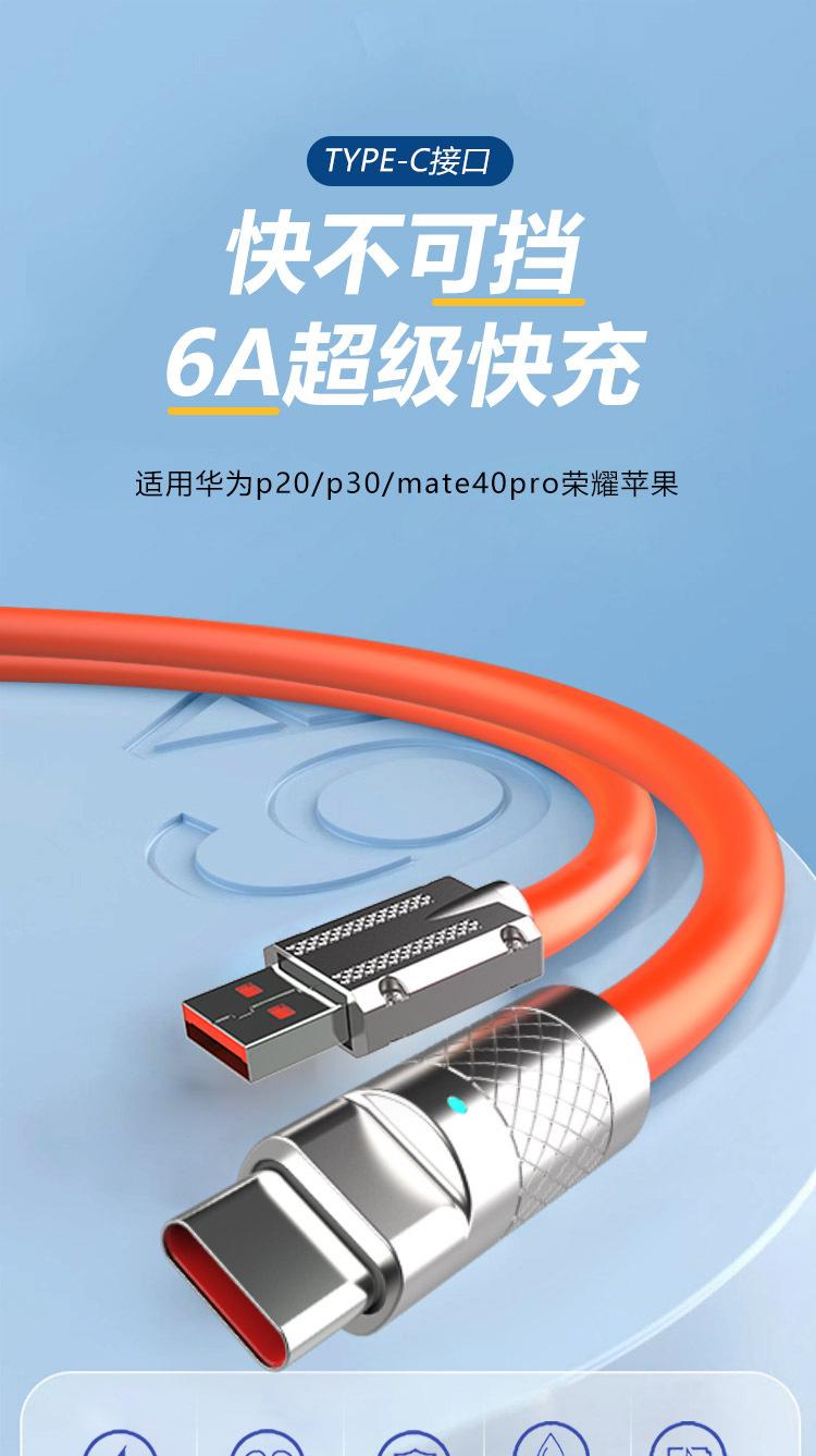 Cable de datos para teléfono móvil de aleación de zinc para pasajeros de máquina con carga rápida para Apple Huawei, cable de carga de silicona líquida de imitación