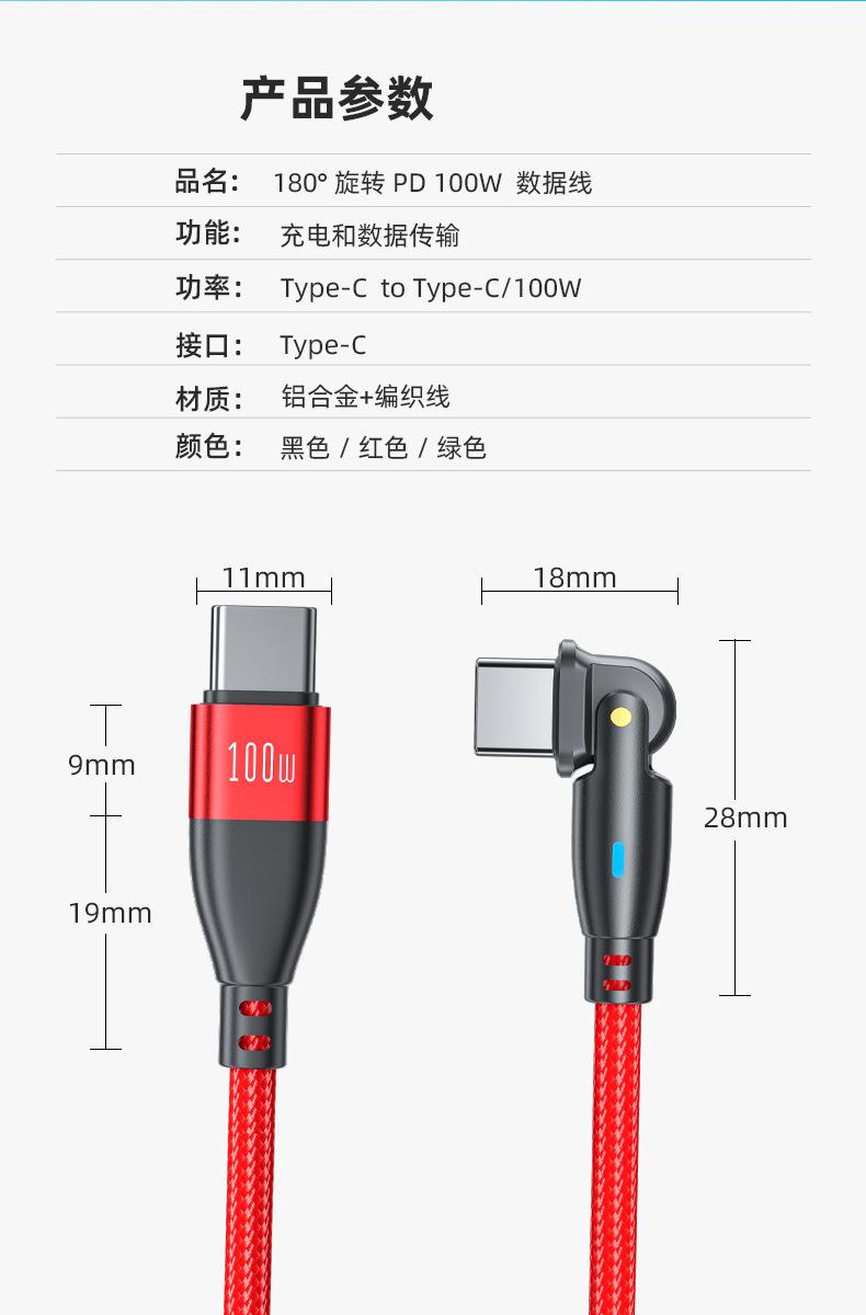 Nombre: Cable de datos de carga rápida de 5A PD100W con rotación de 180 grados