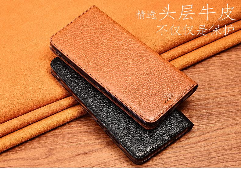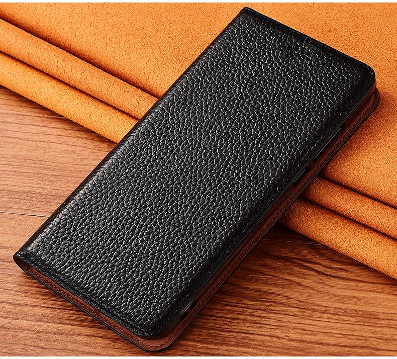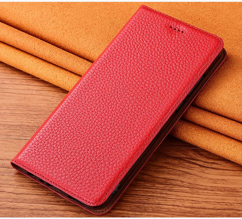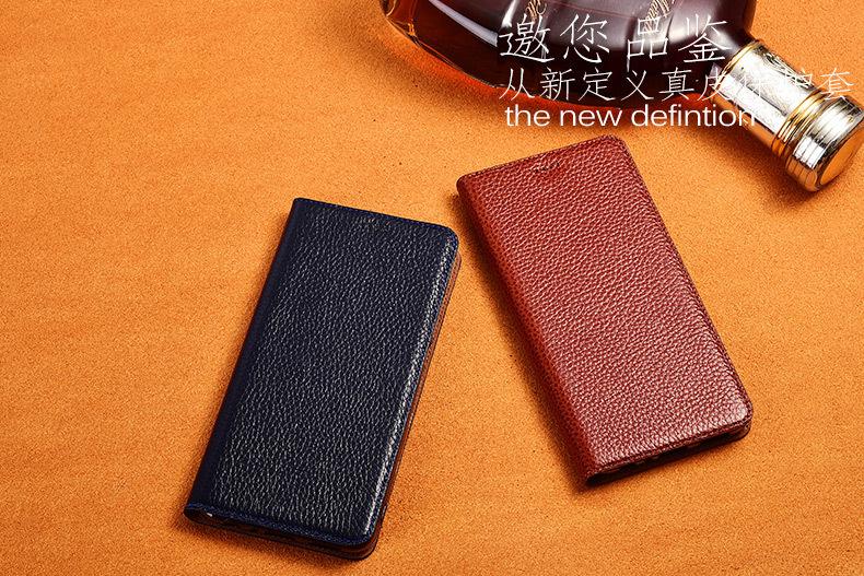 Adecuado para Funda de Teléfono Móvil Samsung J6 Plus J6 2018 Cuero Genuino J5Prime Tapa Abatible J5 2017 Funda Protectora Lichi