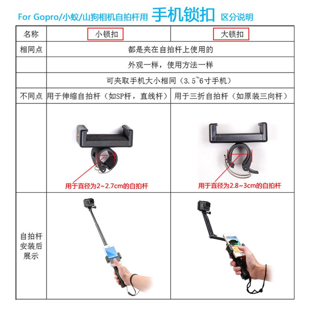 gopro varilla de tres vías soporte de cabeza de metal fijo control remoto hebilla para teléfono móvil instalación palo selfie de tres vías control remoto
