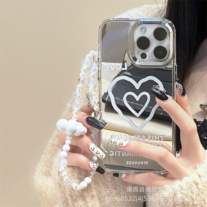 Espejo amor Apple 15promax aplicable iPhone14/13 funda para teléfono móvil tres en uno 12pro funda protectora 11