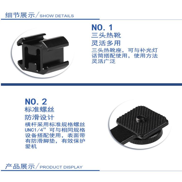 Sea aplicable | Cámara deportiva/luz de relleno/monitor | Características | Se puede utilizar con estabilizadores de mano y trípodes. |