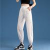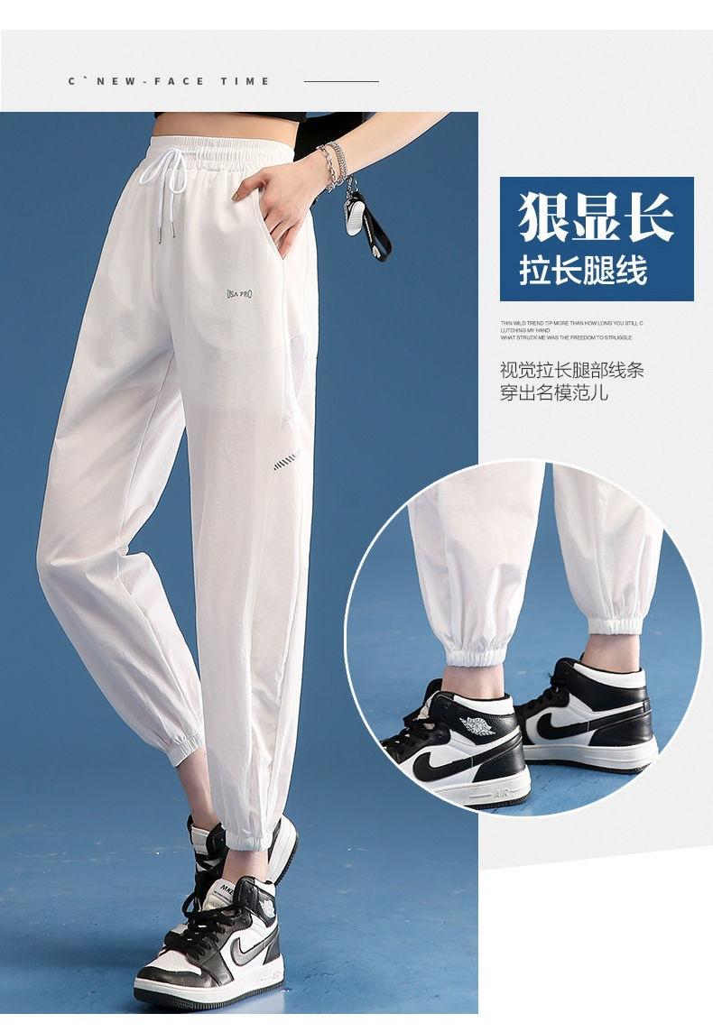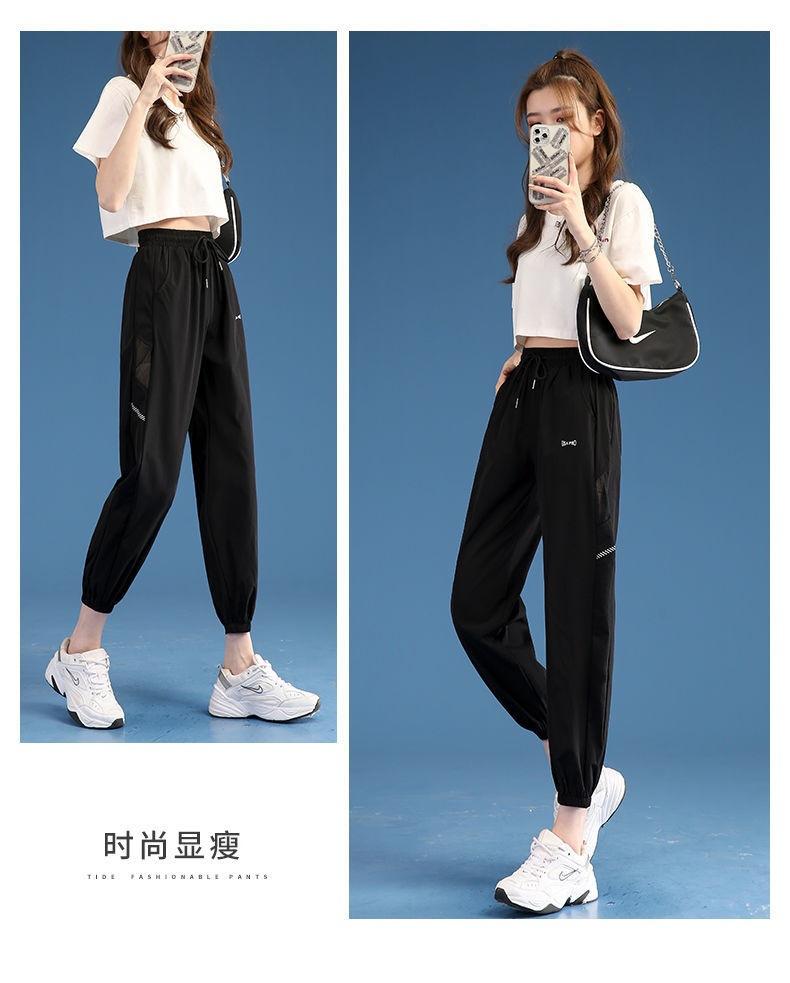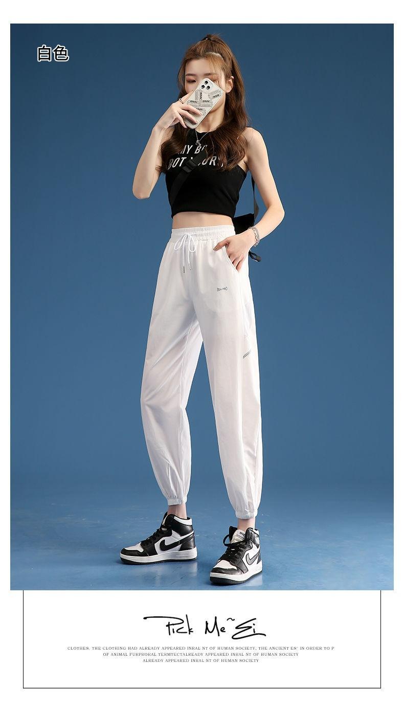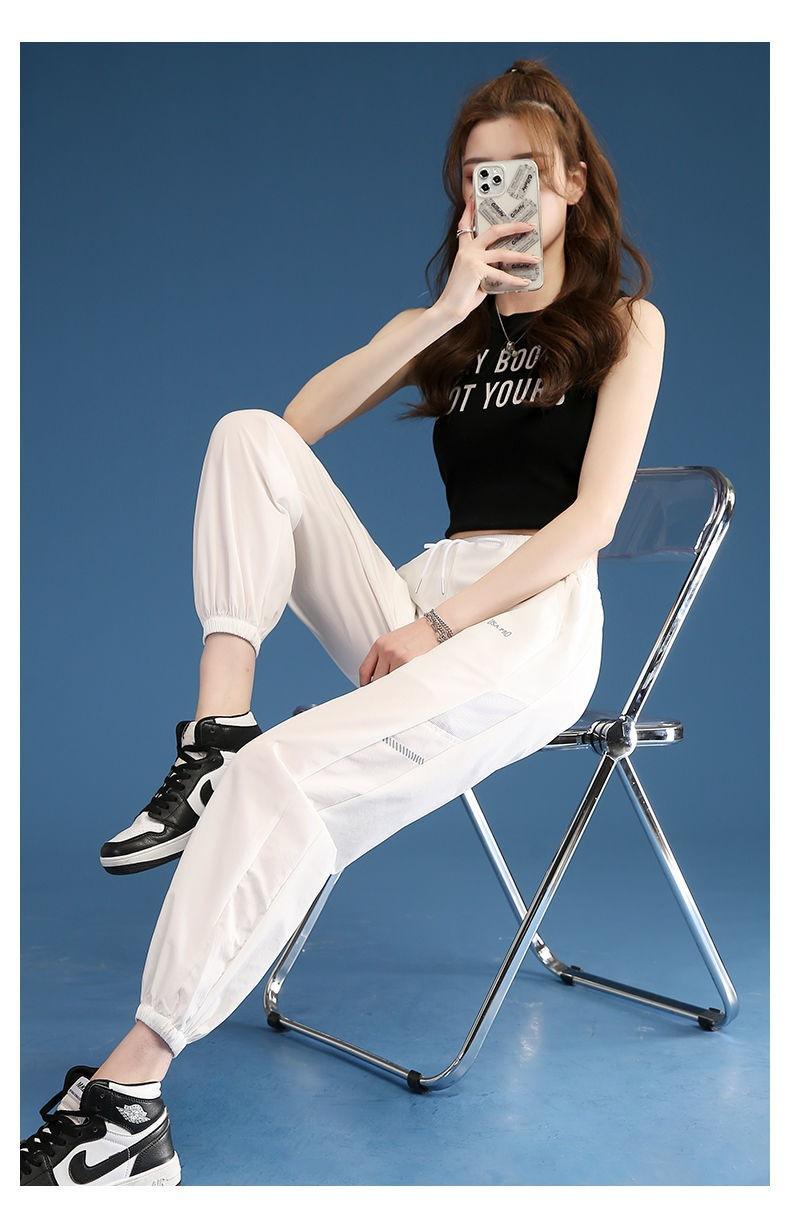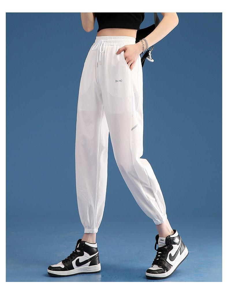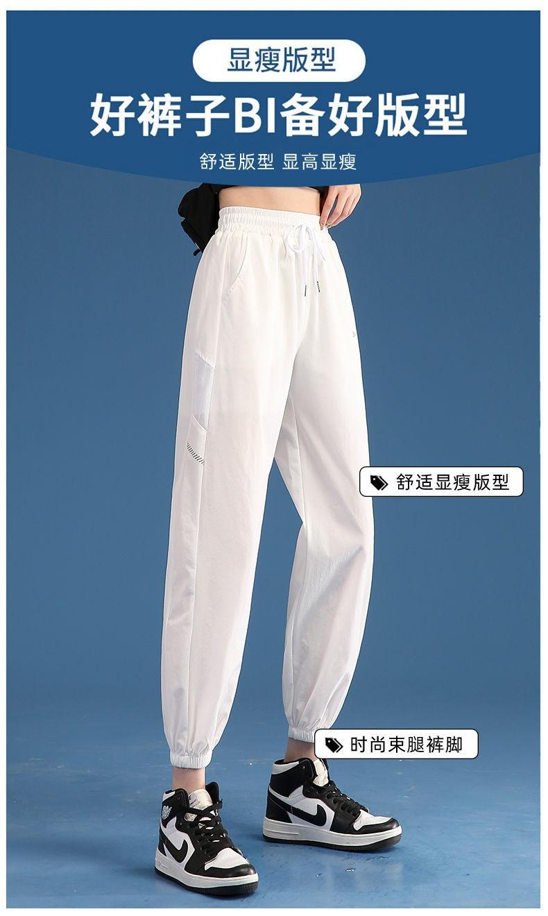Pantalones Deportivos Finos de Seda de Hielo para Mujer Estación Europea 2025 Nuevo Suelto con Lazo en la Pierna Finos de Secado Rápido Transpirables Nueve Puntos Casuales