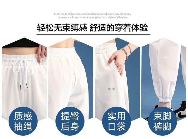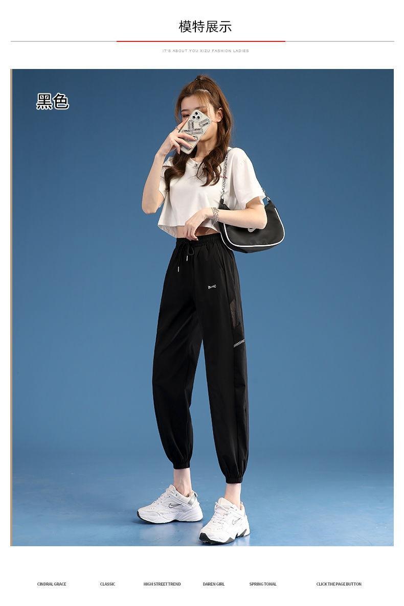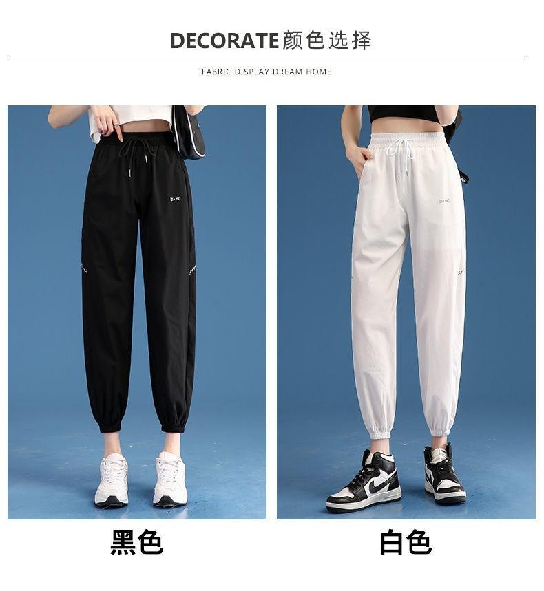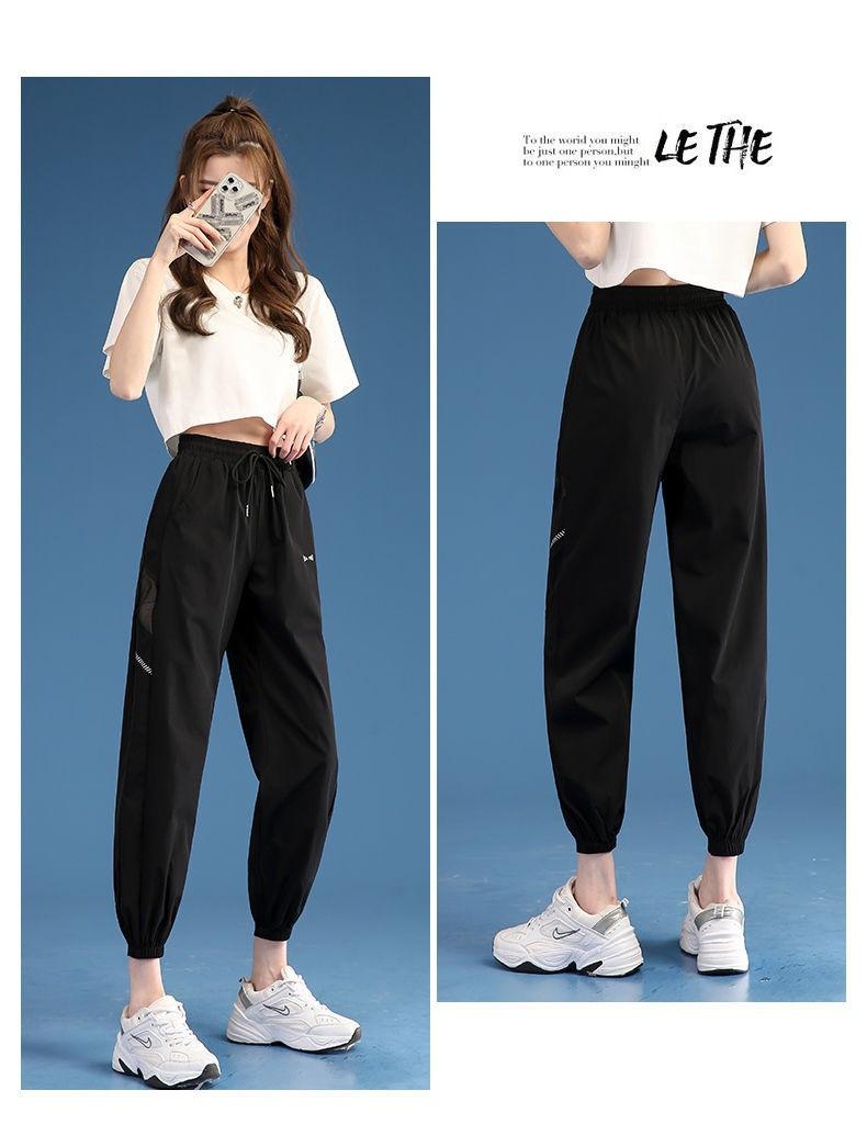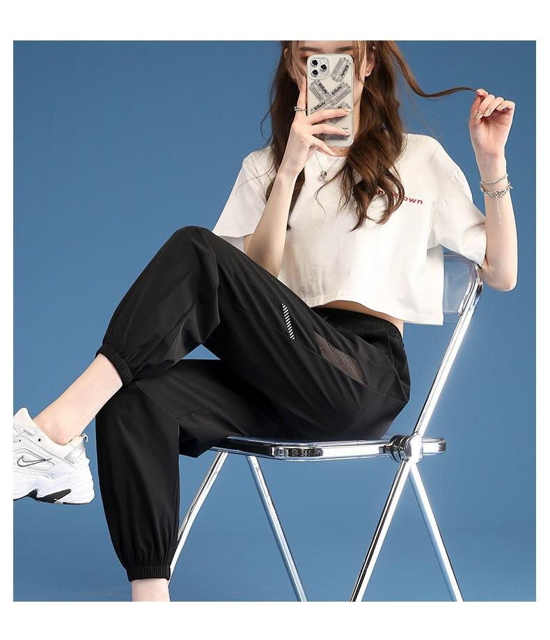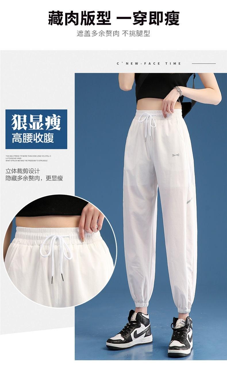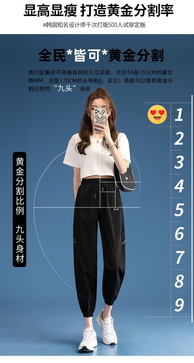 Pantalones Deportivos Finos de Seda de Hielo para Mujer Estación Europea 2025 Nuevo Suelto con Lazo en la Pierna Finos de Secado Rápido Transpirables Nueve Puntos Casuales
