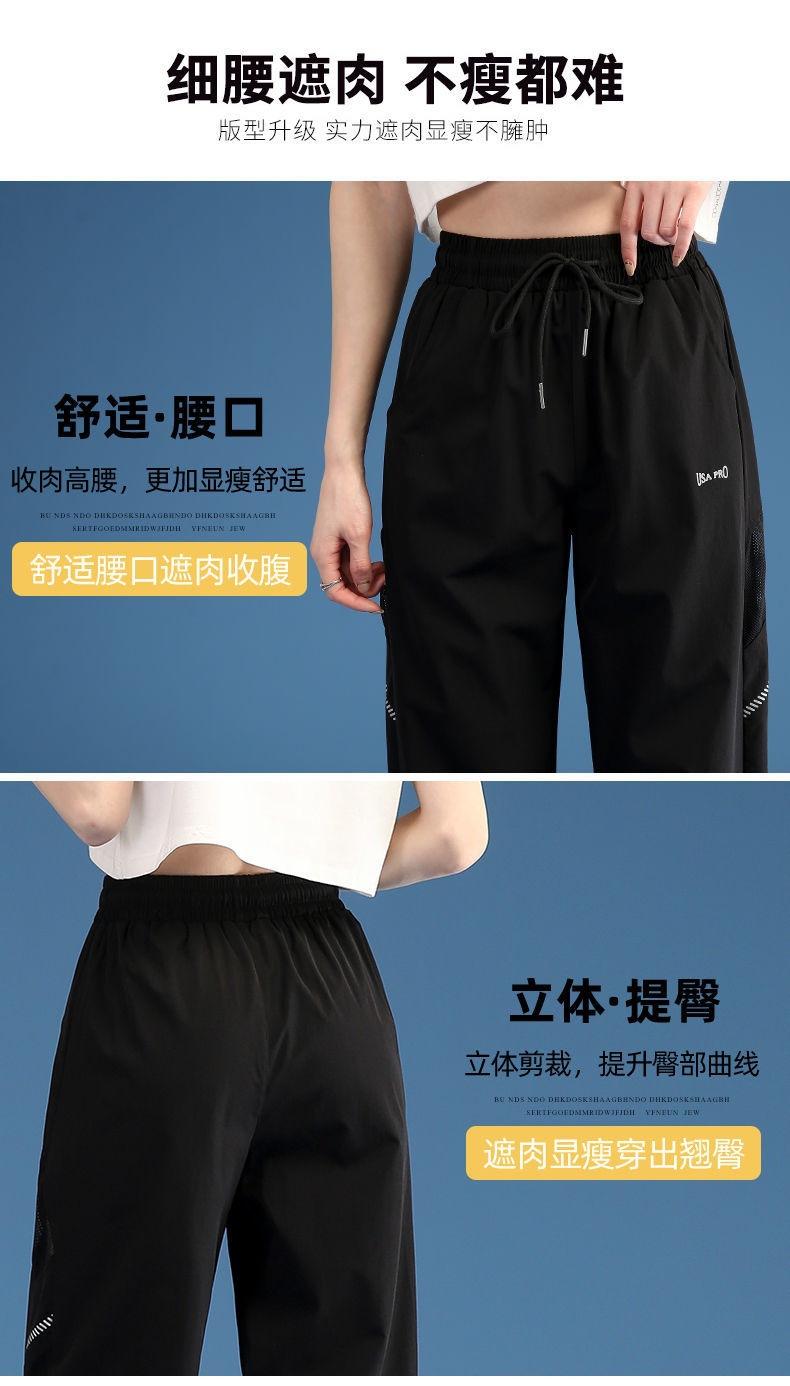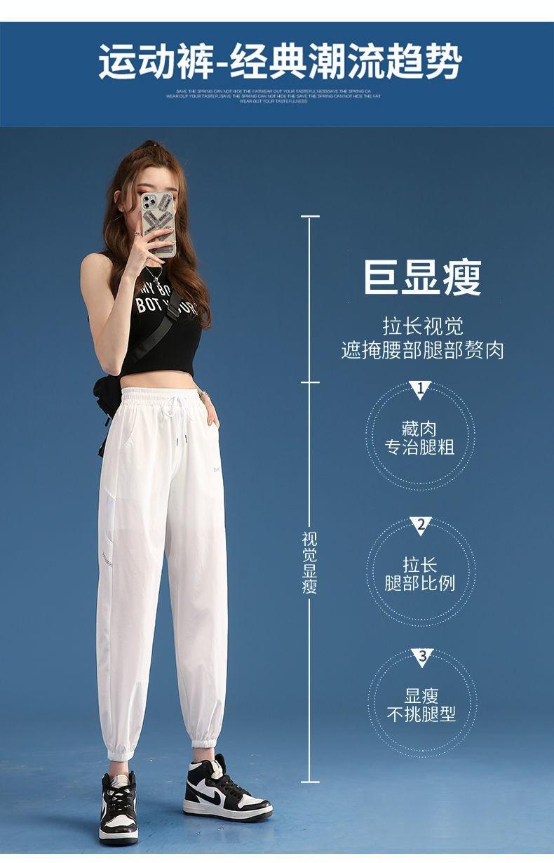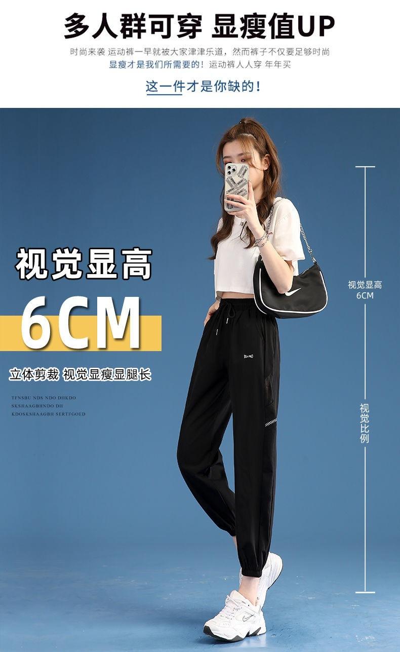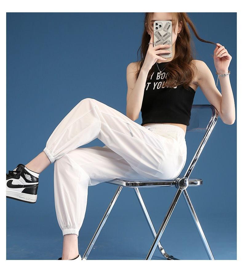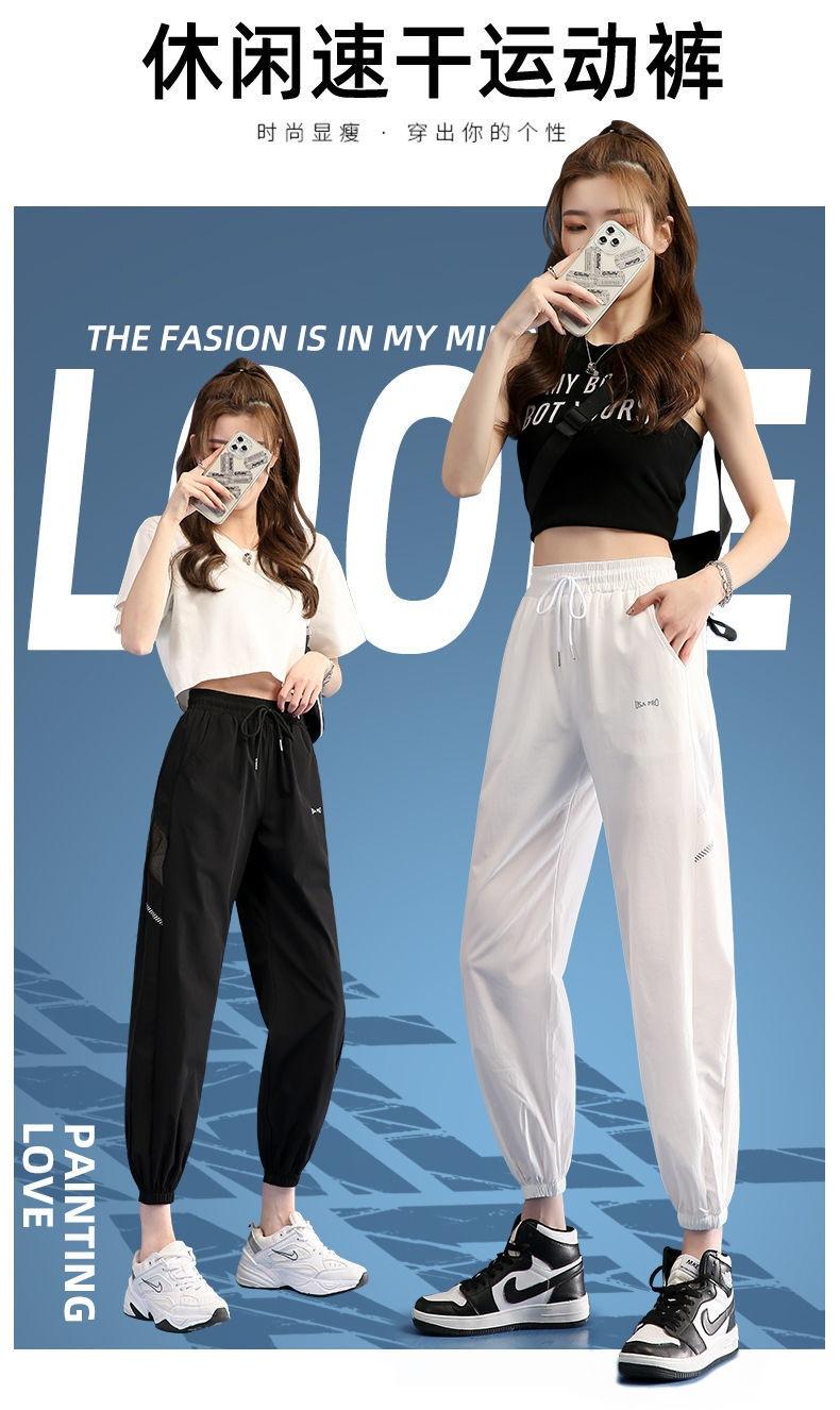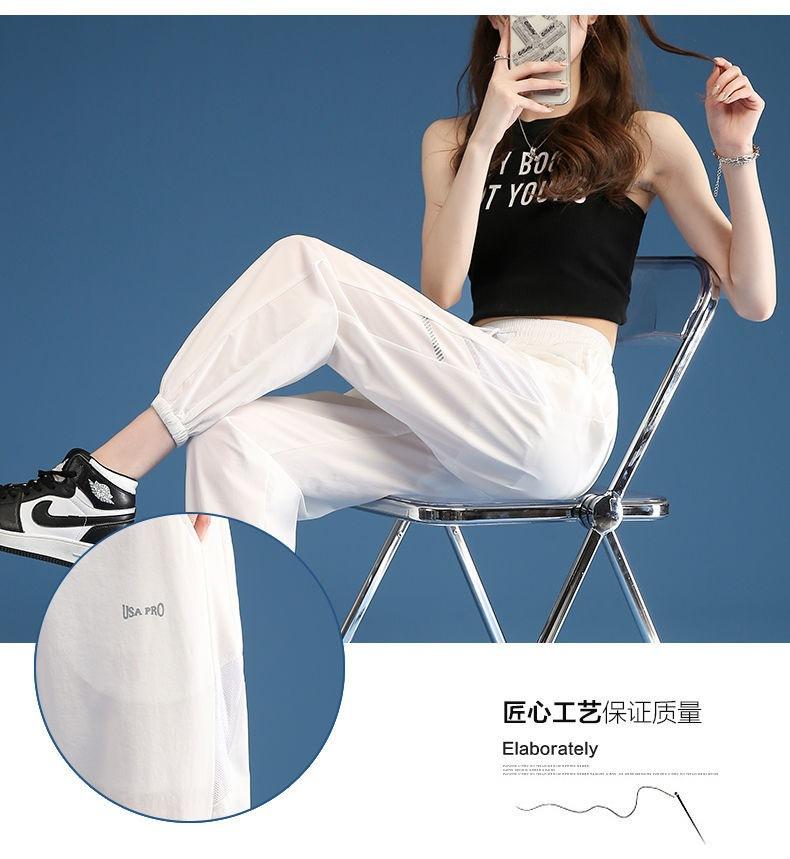 Pantalones Deportivos Finos de Seda de Hielo para Mujer Estación Europea 2025 Nuevo Suelto con Lazo en la Pierna Finos de Secado Rápido Transpirables Nueve Puntos Casuales