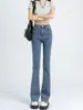 Pantalones acampanados micro estilo americano, vaqueros ajustados retro estilo americano para mujer, nuevos pantalones acampanados de cintura alta con forma de herradura pequeña