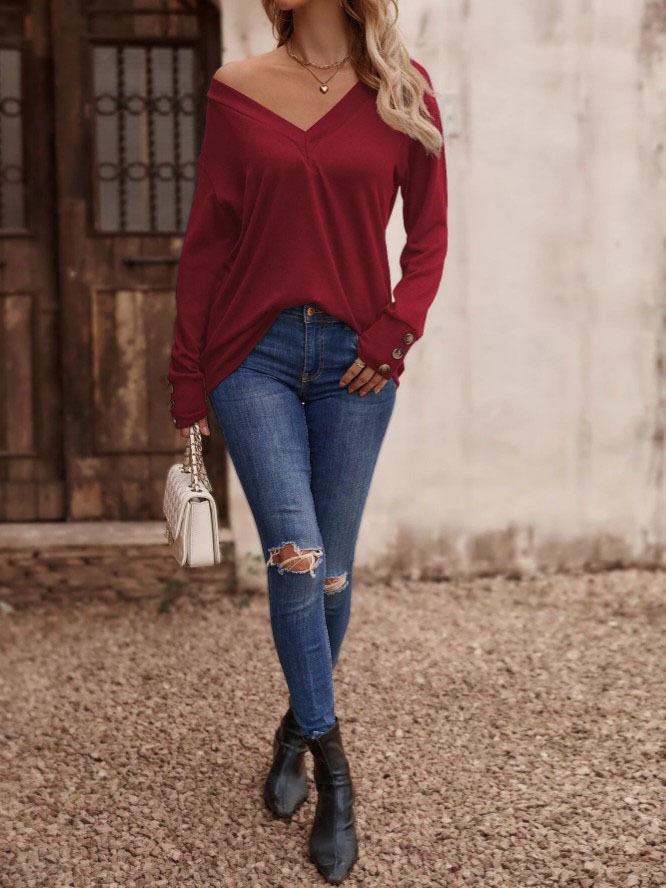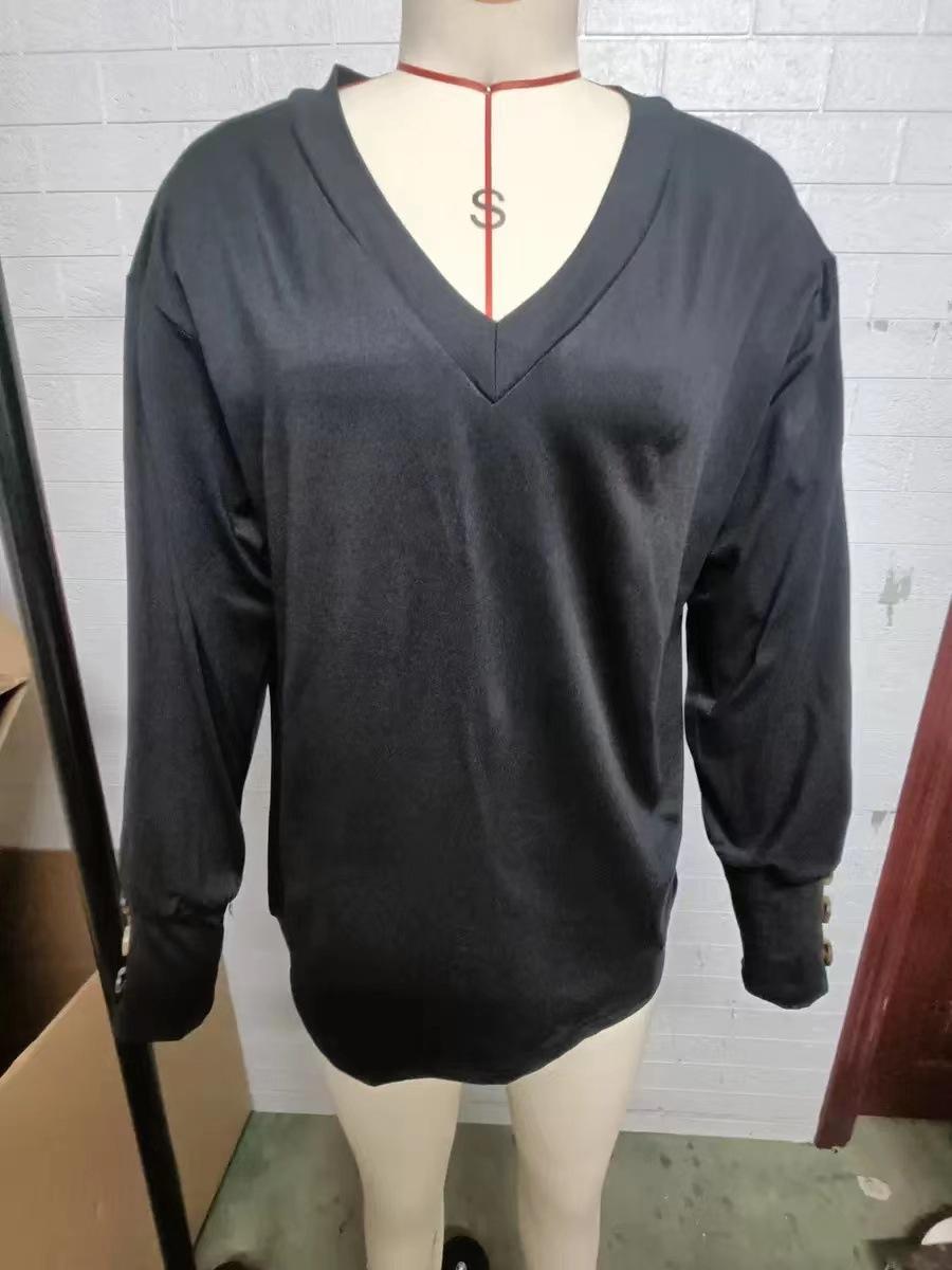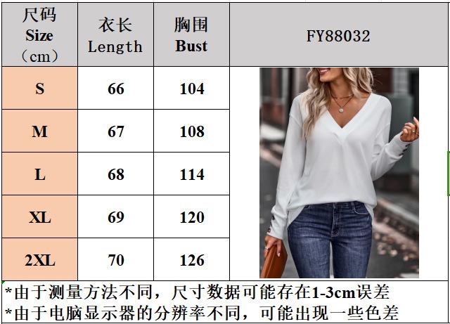 Ropa de mujer de comercio exterior transfronterizo europeo y americano 2023 Amazon otoño e invierno nuevo color sólido cuello en V suelto manga larga camiseta botón
