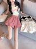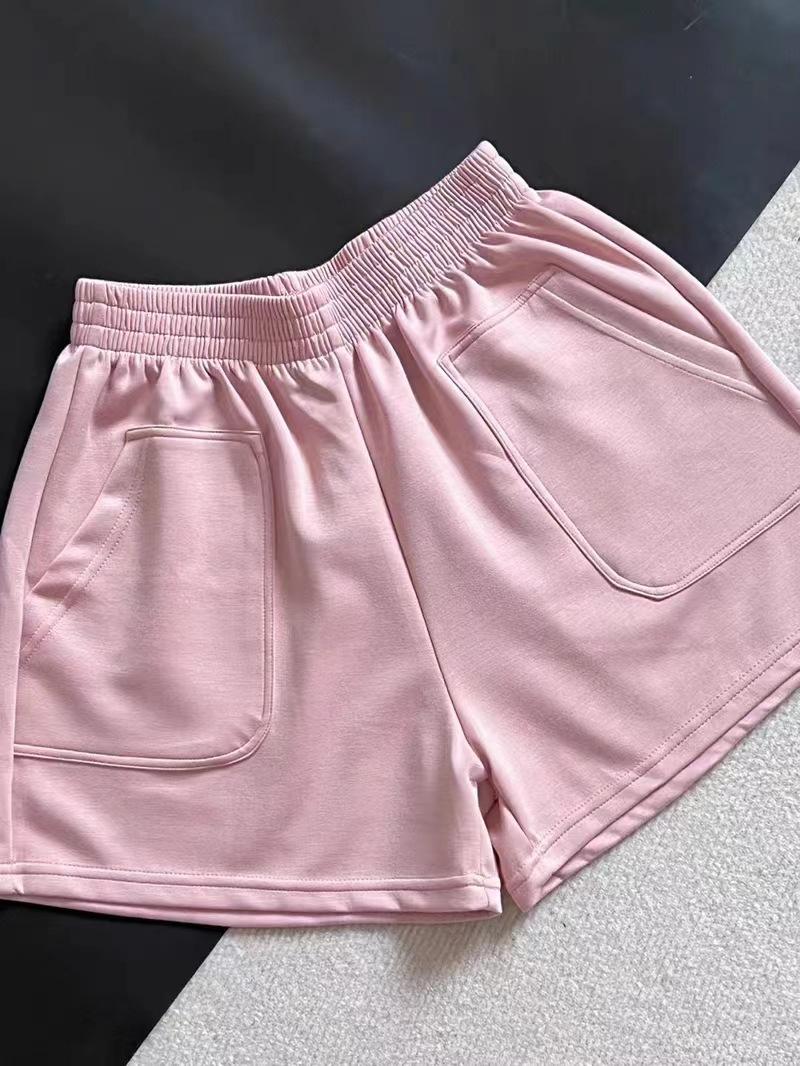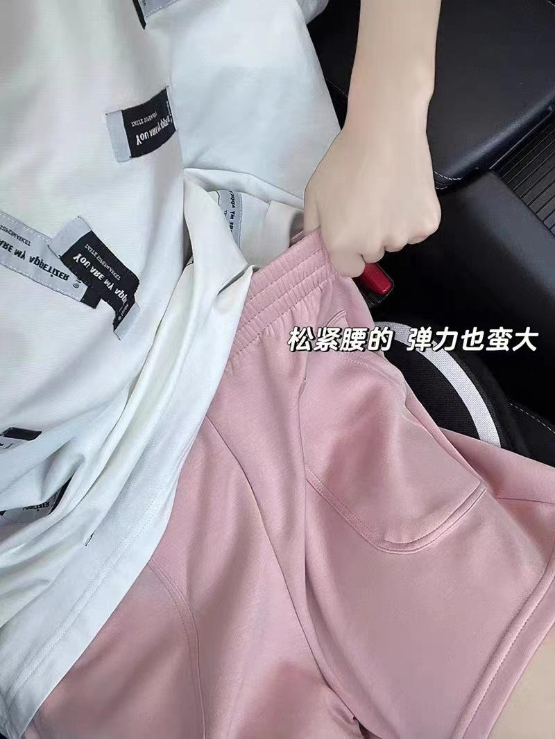 Pantalones cortos deportivos rosas de verano para mujer, finos, sueltos, de cintura alta, en forma de A, aspecto ajustado, pantalones cortos de pierna ancha, pantalones casuales