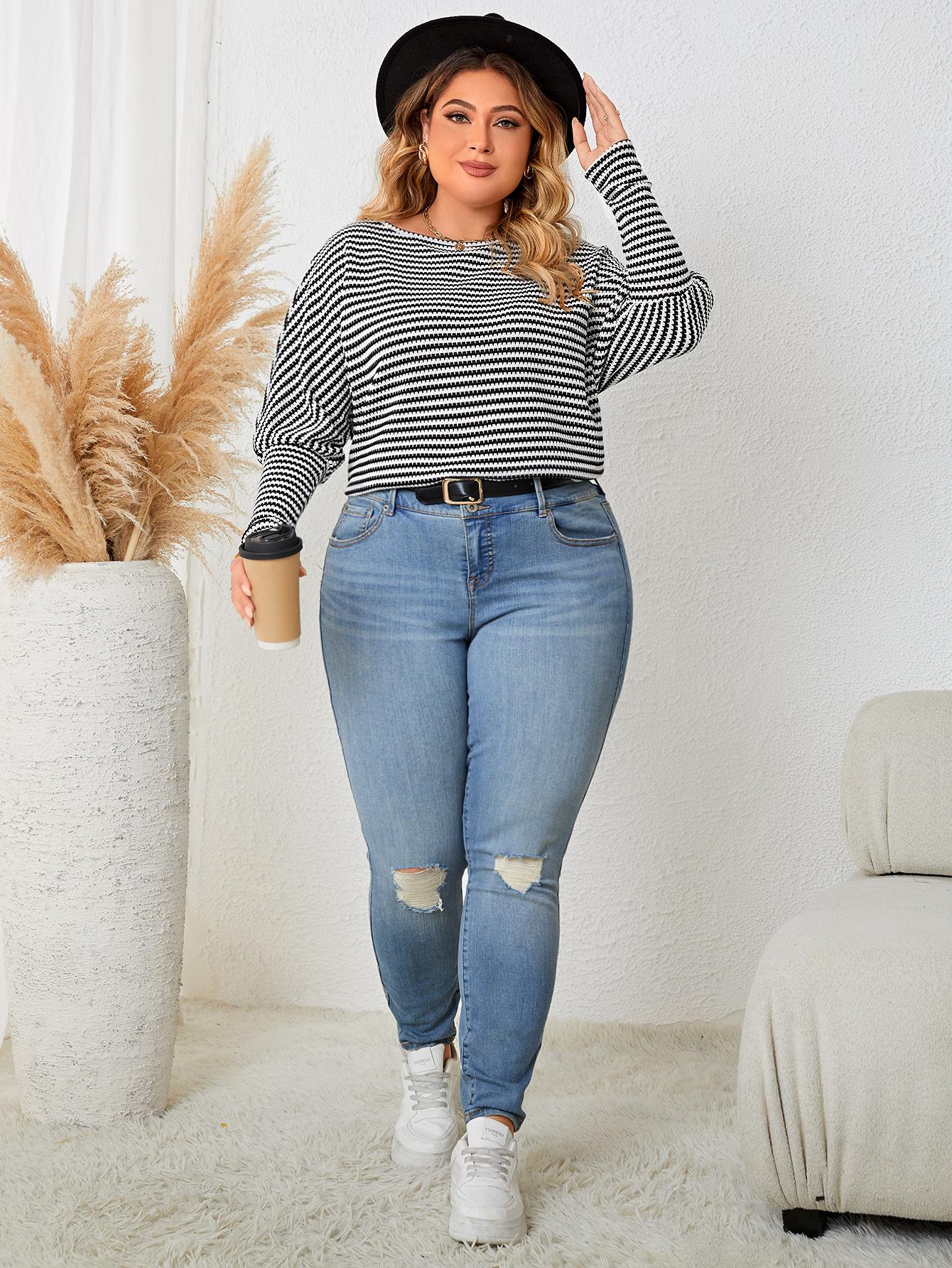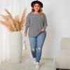 Amazon Europeo y Americano Talla Grande para Mujer AliExpress Comercio Exterior Suéter de Punto 2023 Otoño Nuevo Diseño Chaqueta a Rayas
