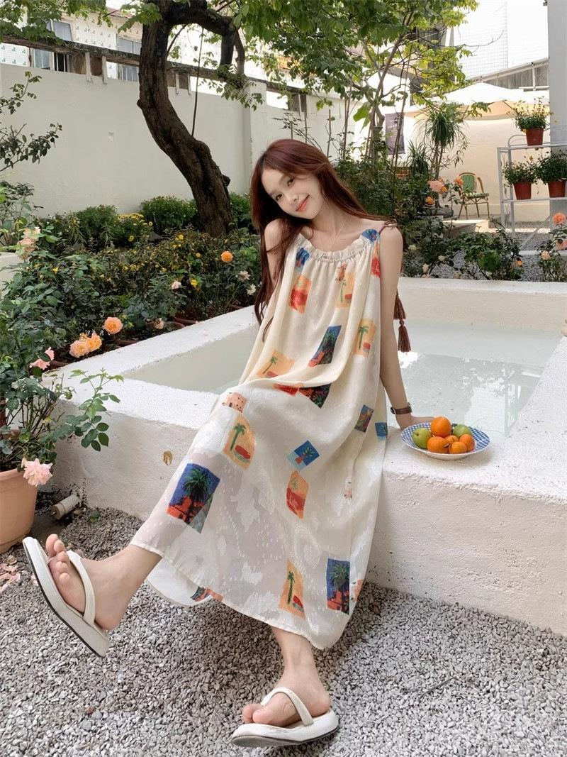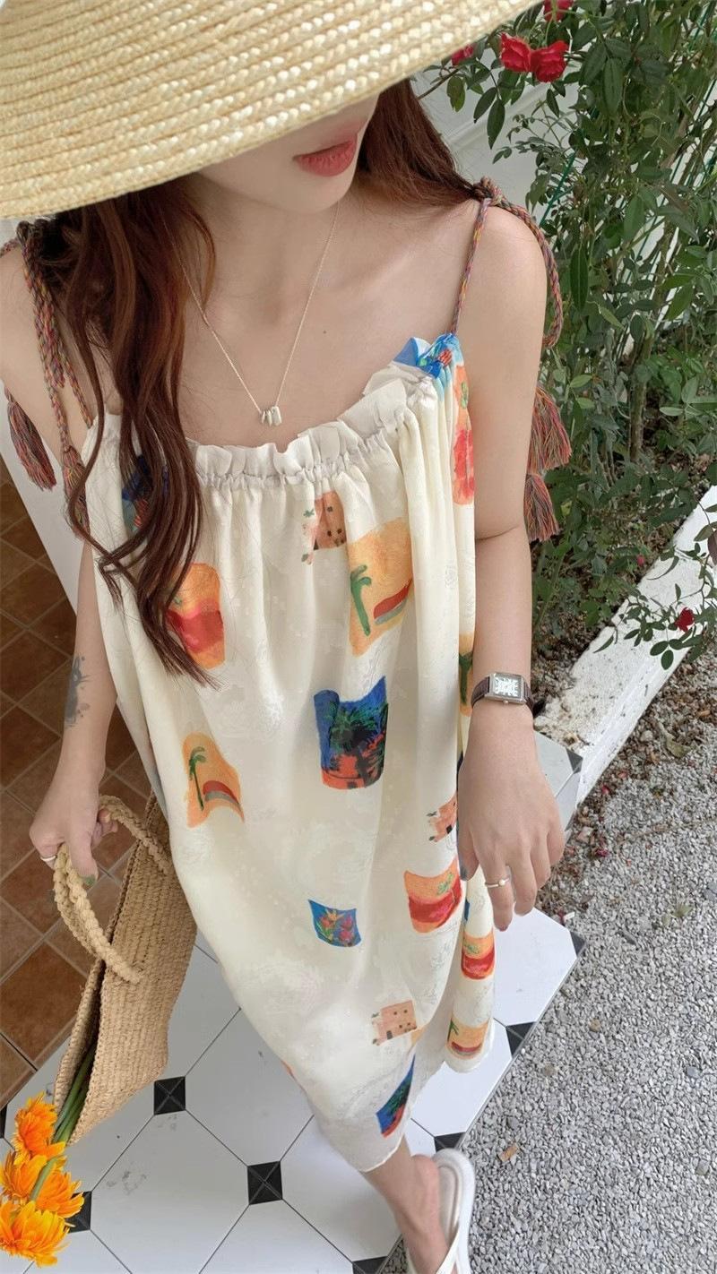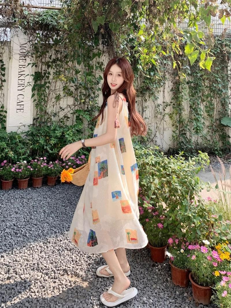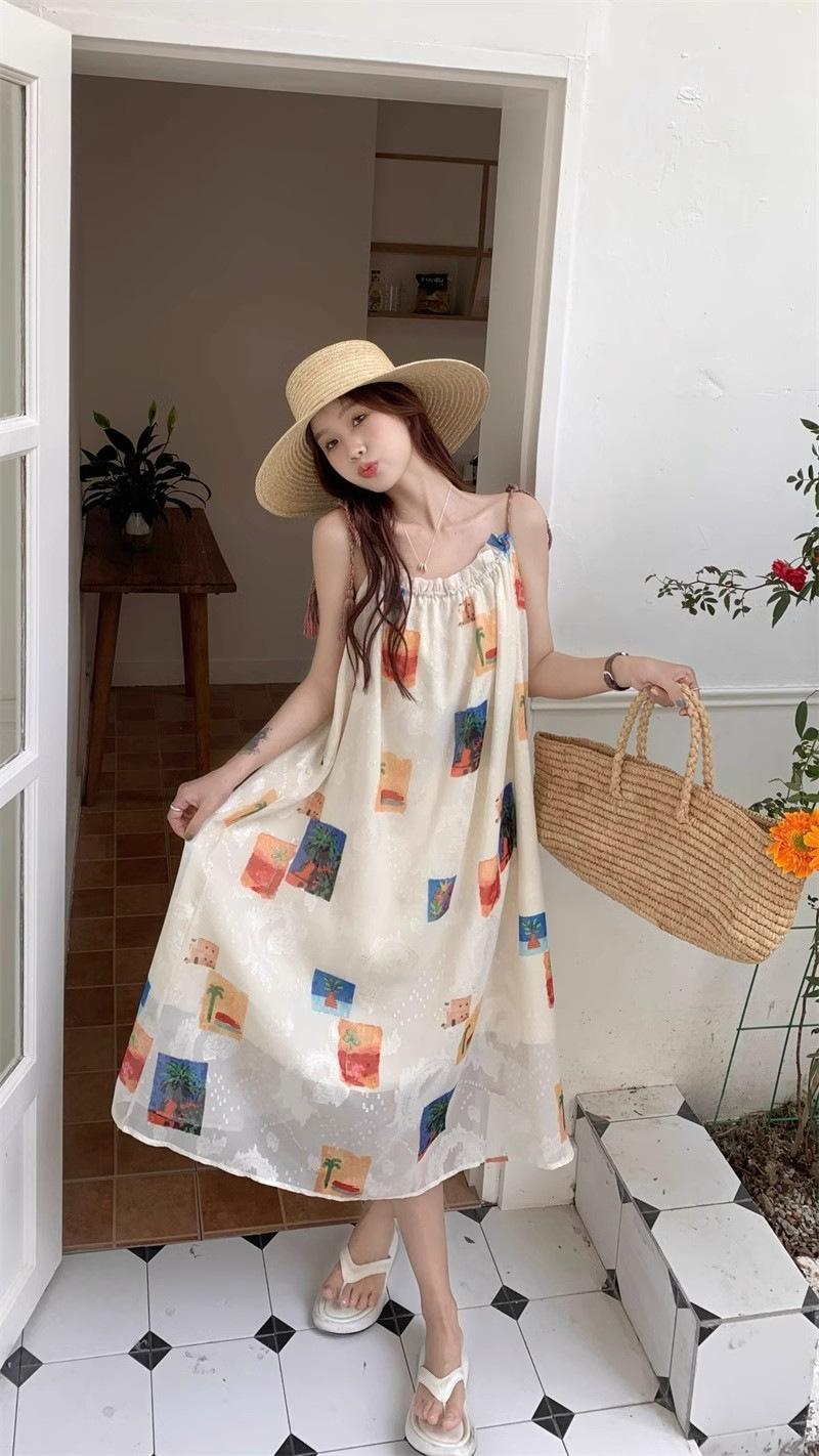 Vestido de Tirantes Estilo Bohemio de Talla Grande para Mujer Primavera 2025 Nuevo Vacaciones de Lujo Junto al Mar Chifón Falda Larga