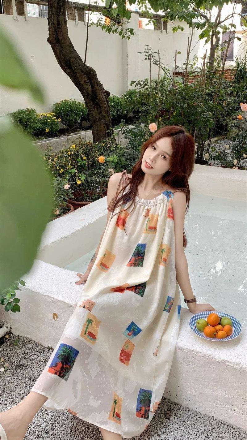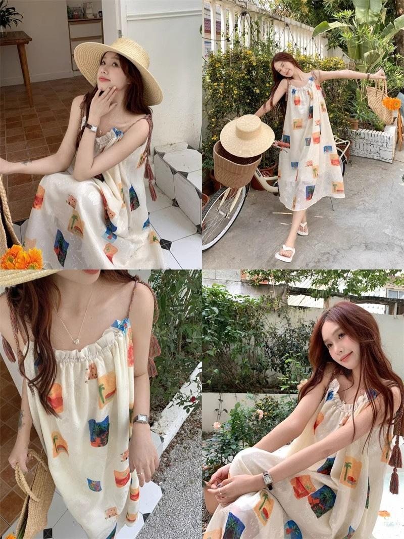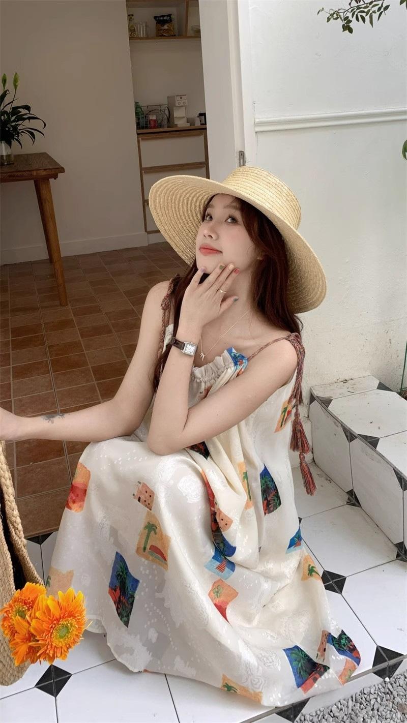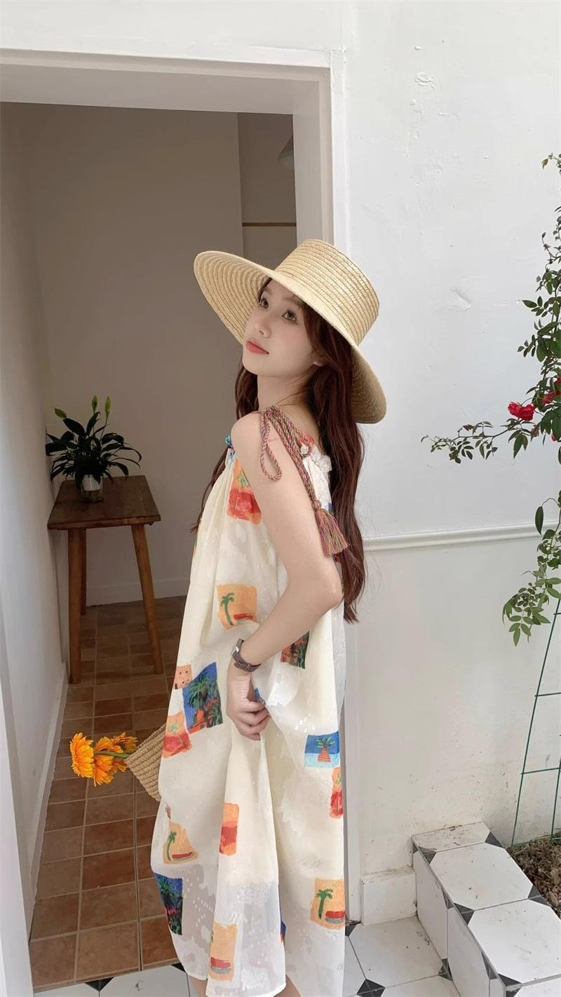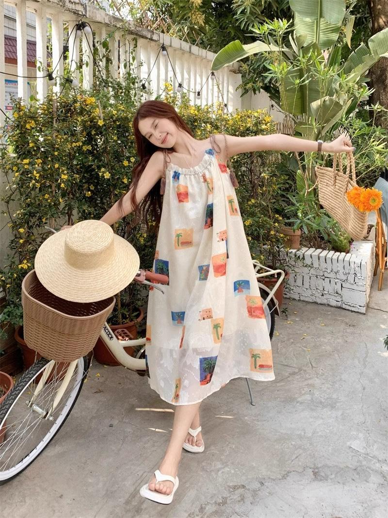 Vestido de Tirantes Estilo Bohemio de Talla Grande para Mujer Primavera 2025 Nuevo Vacaciones de Lujo Junto al Mar Chifón Falda Larga