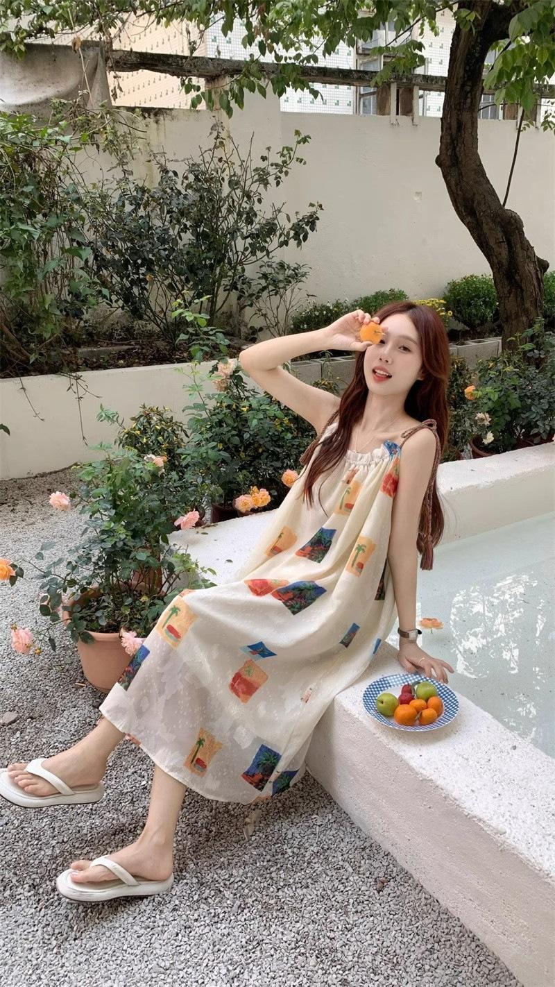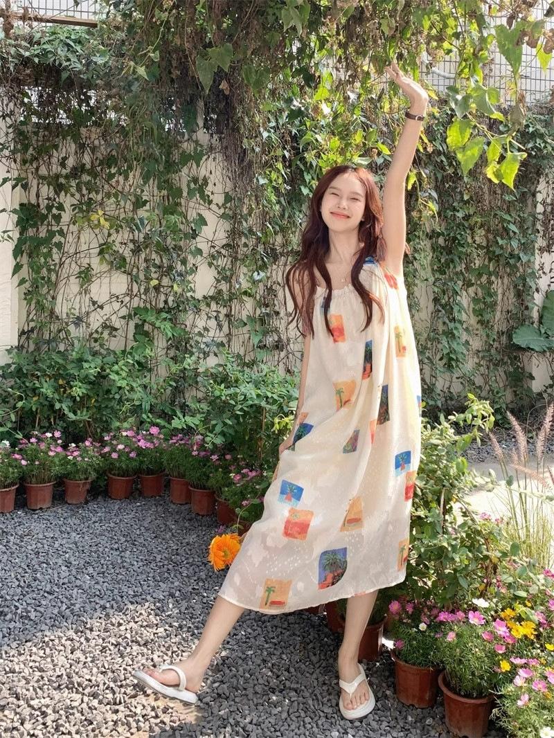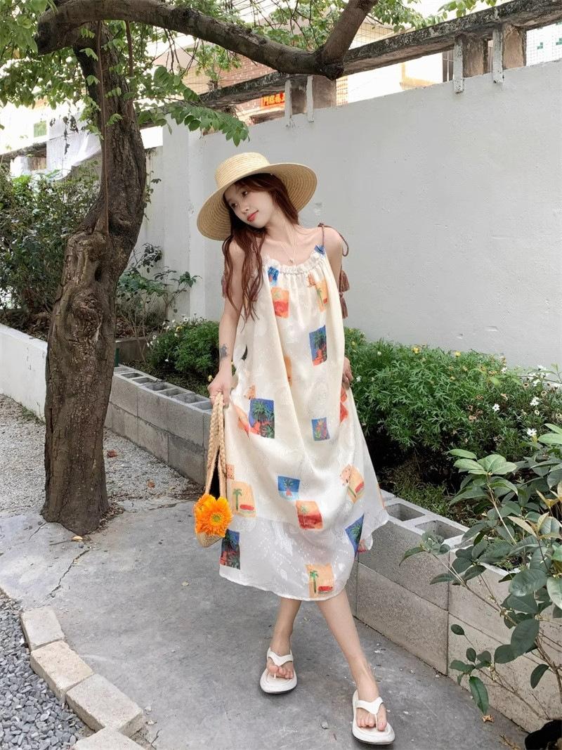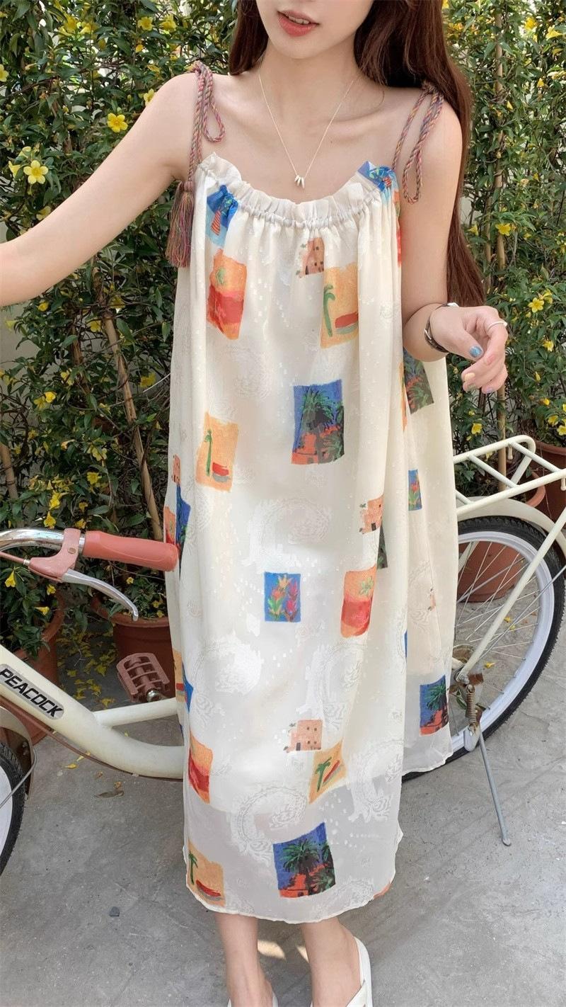 Vestido de Tirantes Estilo Bohemio de Talla Grande para Mujer Primavera 2025 Nuevo Vacaciones de Lujo Junto al Mar Chifón Falda Larga