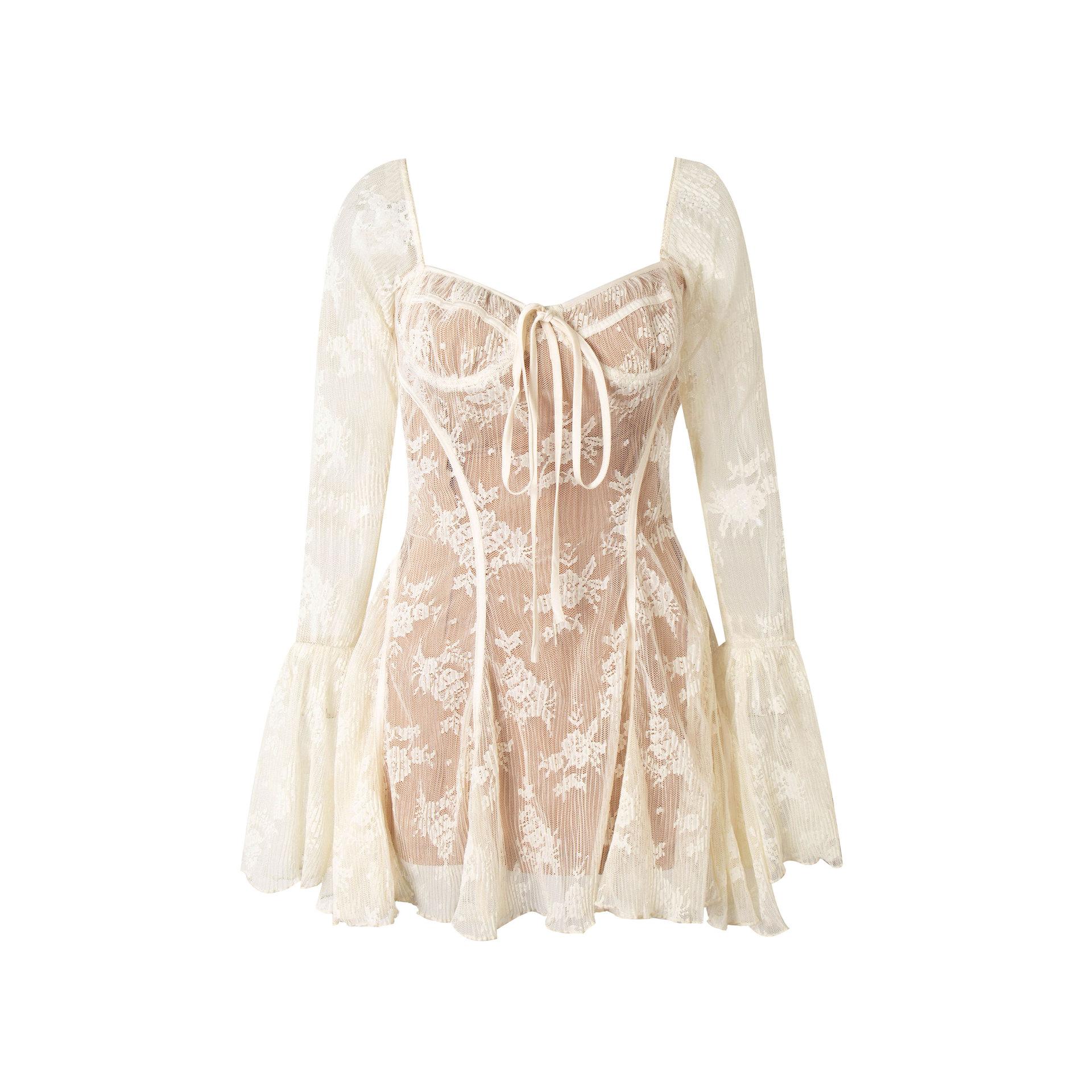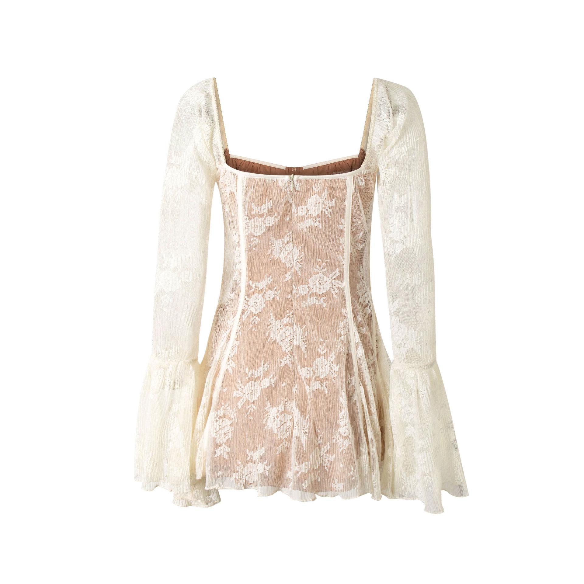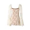 L24064-24 Primavera Nuevo Estilo Francés Retro Estilo Deseo Puro Encaje Ligero Sexy Vestido de Tirantes con Cuello Cuadrado
