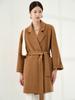 Abrigo de Lana 100% de Lana de Doble Cara de Lana de Cachemira de Alto Conteo de Lana para Mujer de Talla Pequeña de Largo Medio con Cordones y Corte Suelto