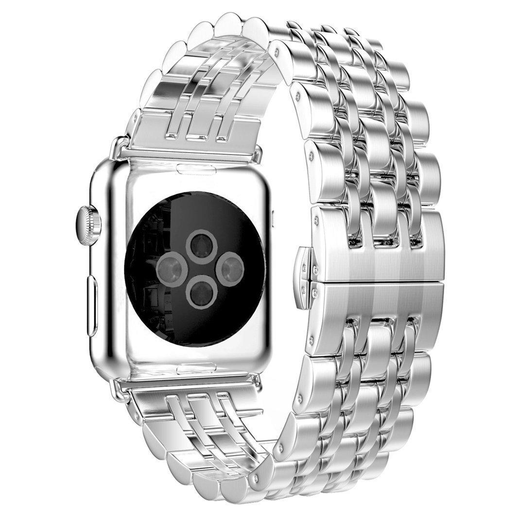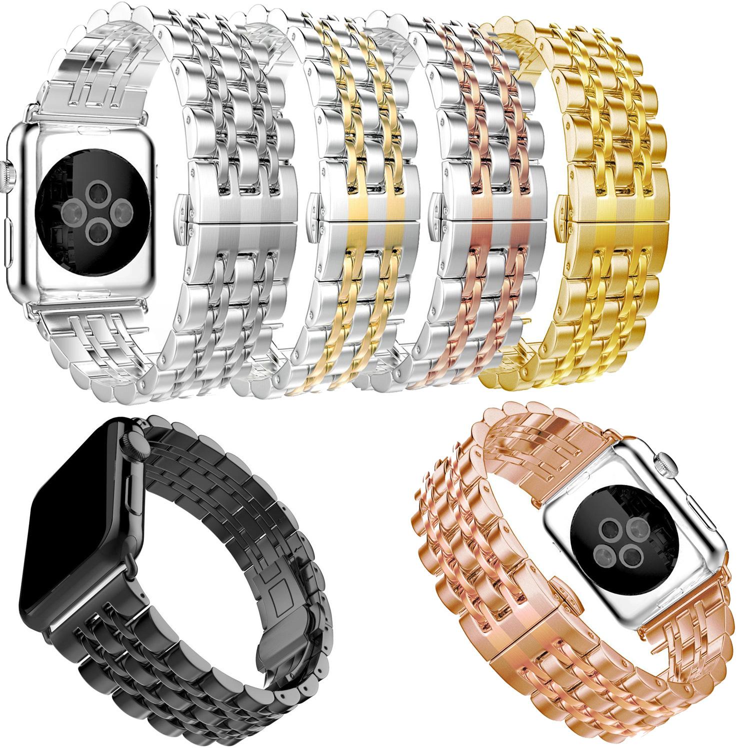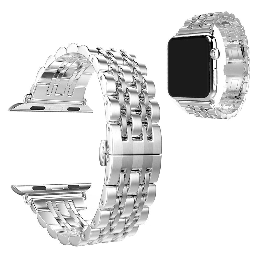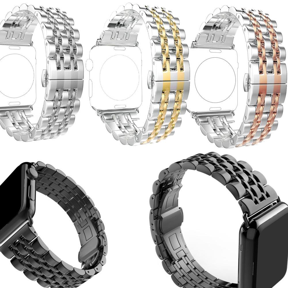Adecuado para Apple Watch Apple Watch correa de acero inoxidable de metal de siete eslabones con hebilla de mariposa