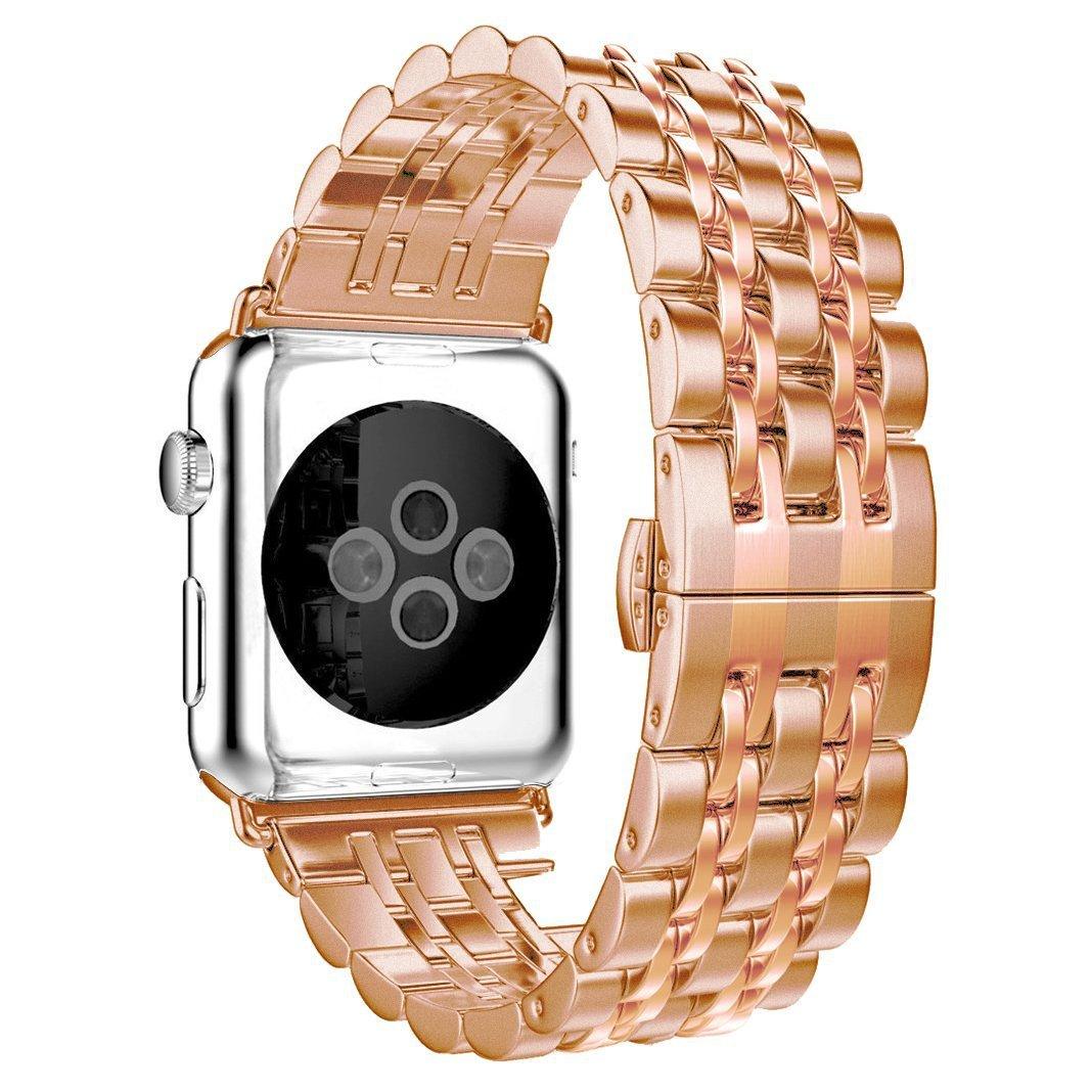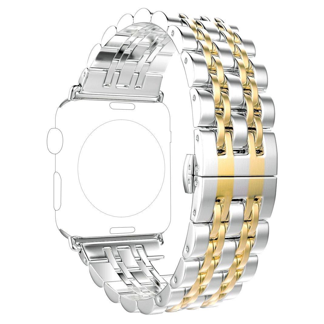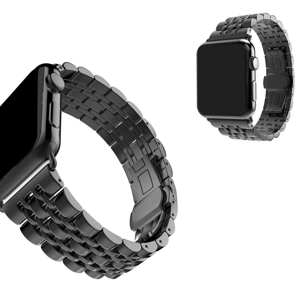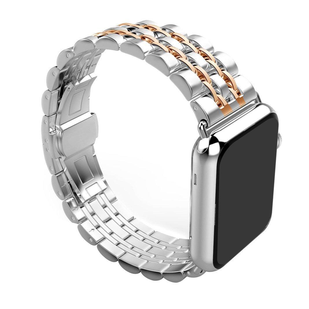 Adecuado para Apple Watch Apple Watch correa de acero inoxidable de metal de siete eslabones con hebilla de mariposa