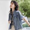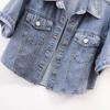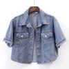 Abrigo de mezclilla delgado para combinar con todo para mujer, corto, primavera y verano 2023, azul claro, casual, adelgazante, hombros, manga corta