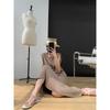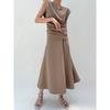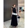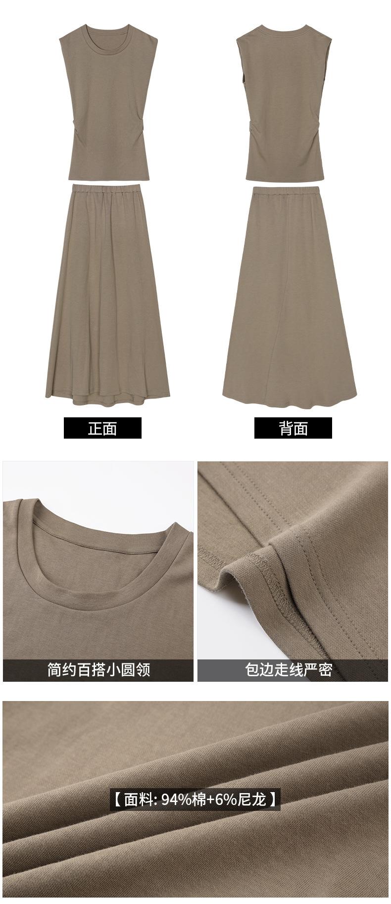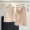 Hongyi 2024 Verano Sal Cuello Redondo Suelto Sin Mangas Top Chaleco Cintura Alta Slim A-Line Falda Media Traje