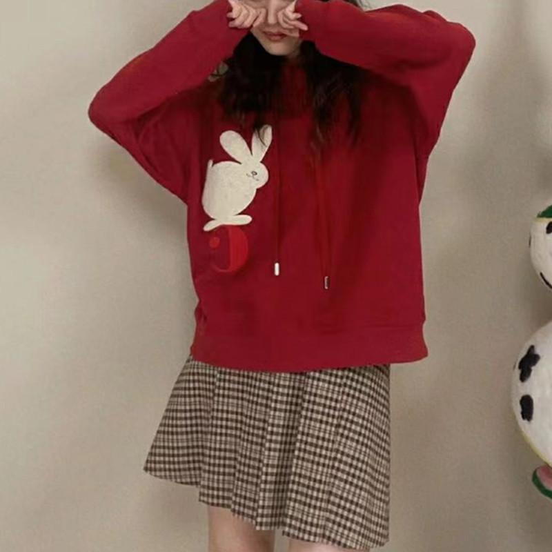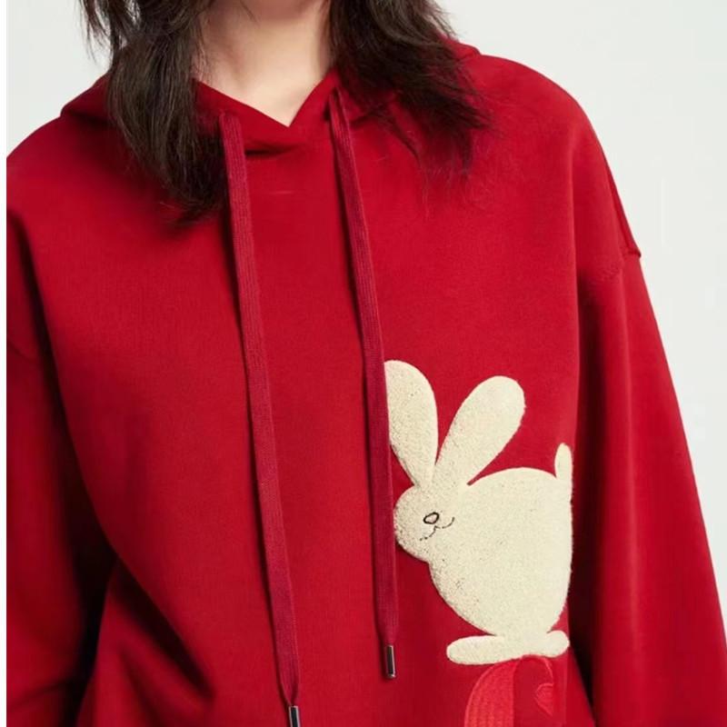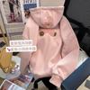 Sudadera con capucha de felpa de rizo de manga corta nueva de Hejia, forro bordado, holgada, casual, linda, elegante, top