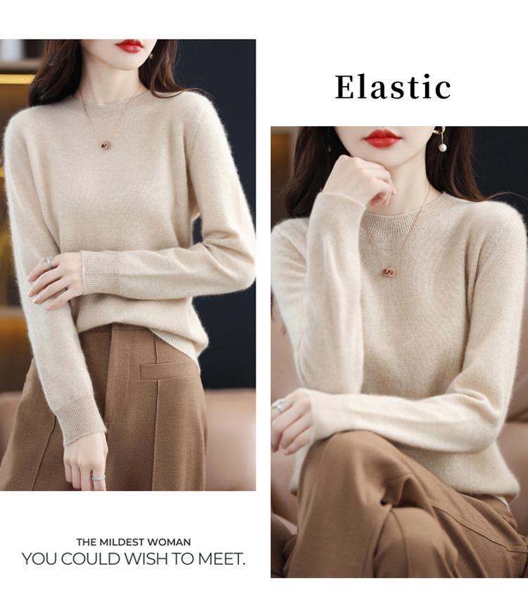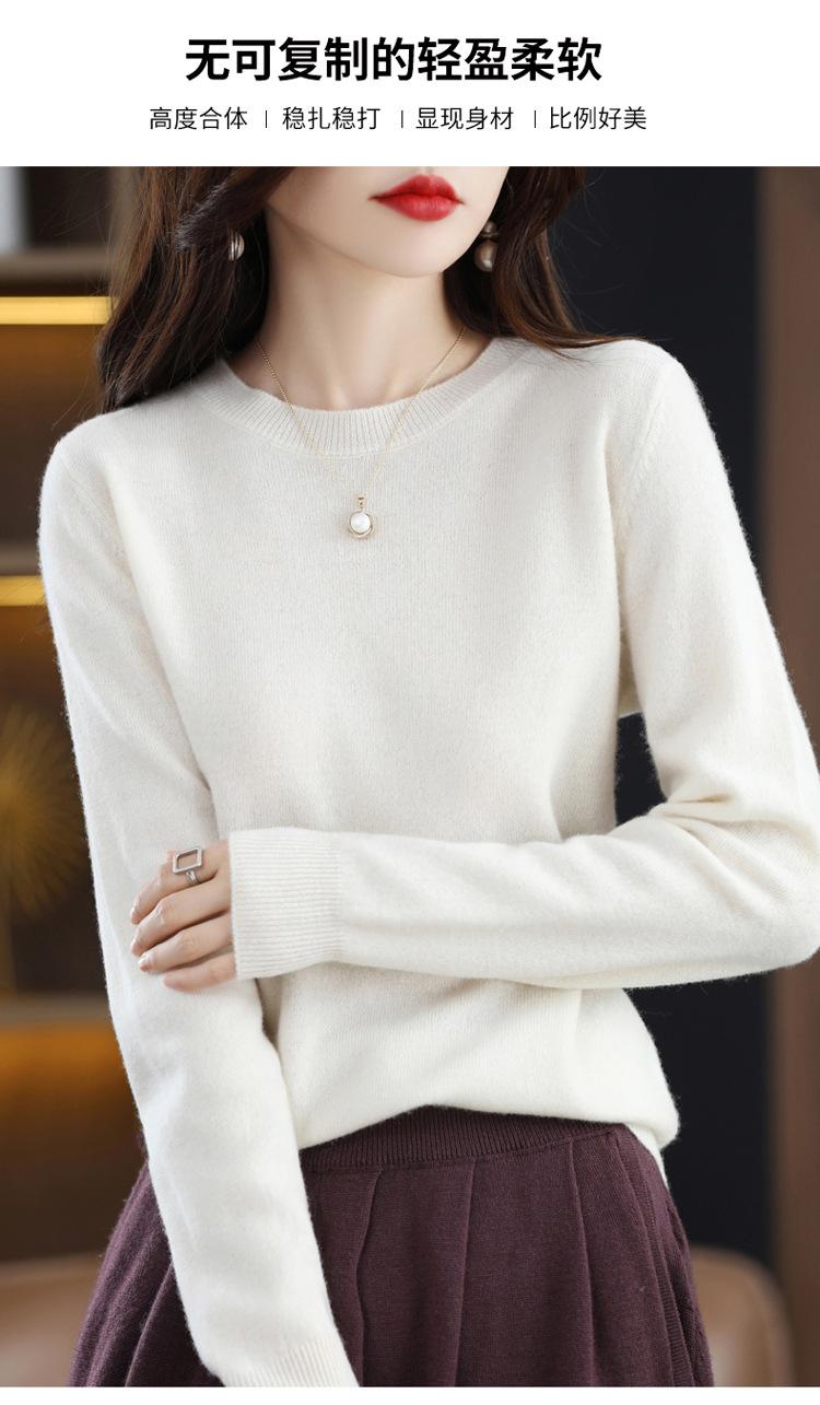 Suéter de lana para mujer, 100% lana pura, suéter de cuello redondo, invierno, nuevo, blanco, versátil, suelto, de punto, suéter cálido Suéter de lana 100% pura sin costuras para mujer, jersey de cuello redondo, camisa de punto hueco en la parte inferior, suéter perezoso fufu de leche súper hermoso Suéter de punto básico de lana 100% pura sin costuras, suéter de todo fósforo, suéter de cuello alto de media manga larga para mujer Suéter de lana 100% pura sin costuras de alta calidad para mujer, suéter de cuello redondo, parte inferior suelta, adelgazante, suéter de punto con hombros rectos