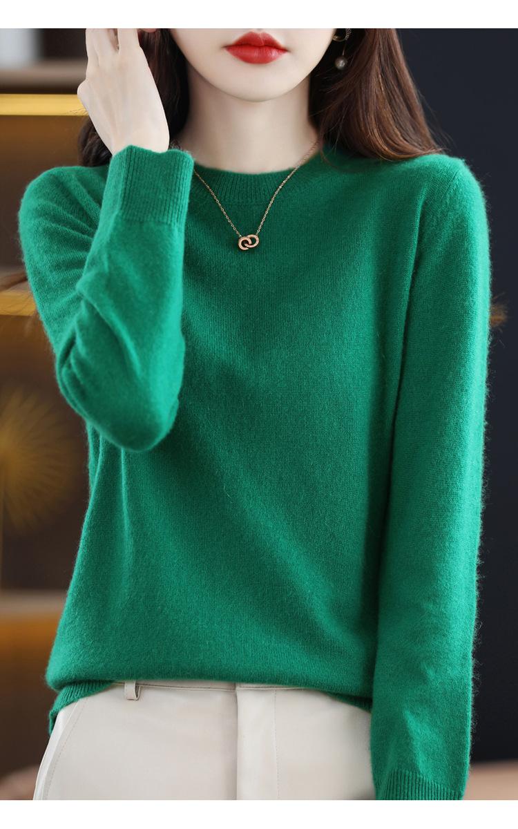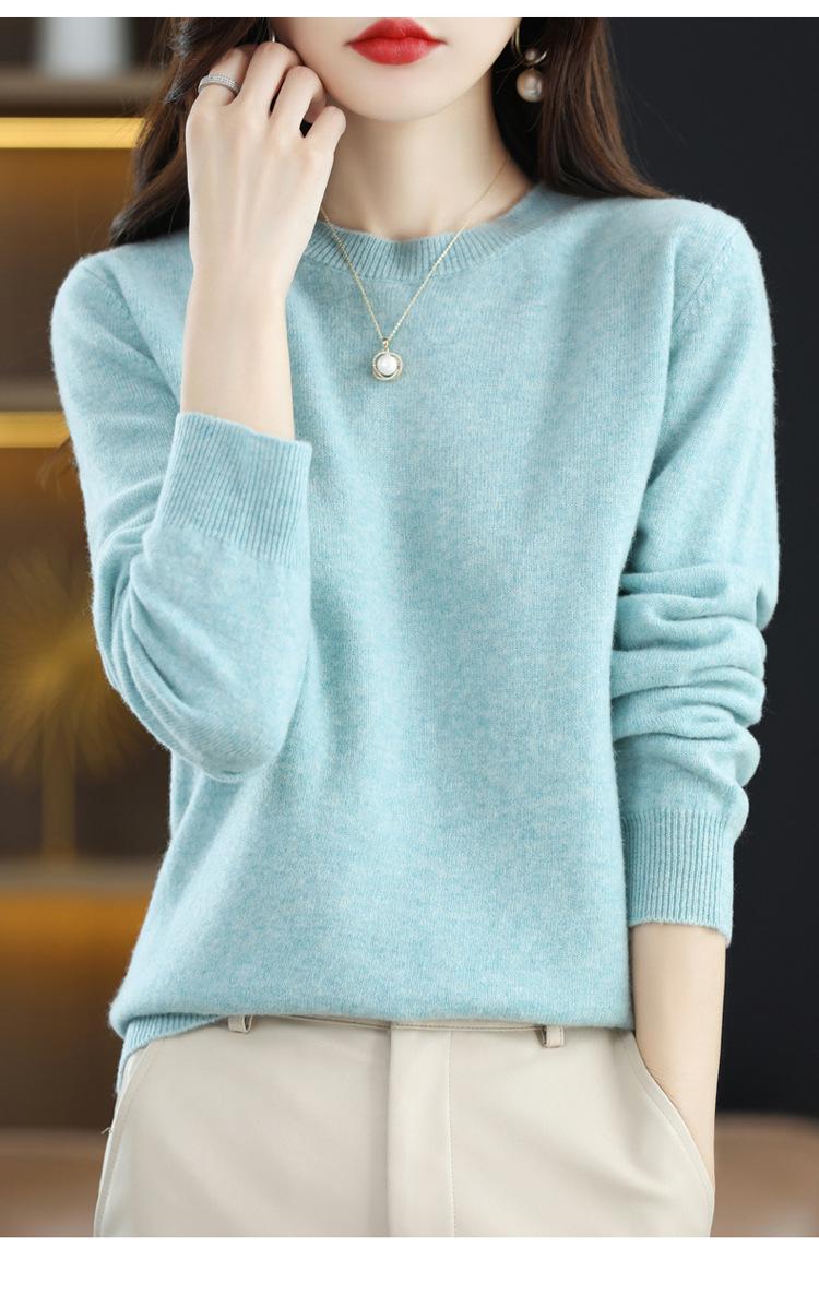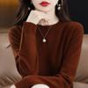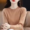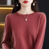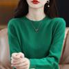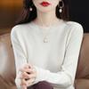 Suéter de lana para mujer 100% lana pura cuello redondo invierno Nuevo Blanco versátil holgado tejido camiseta base cálida