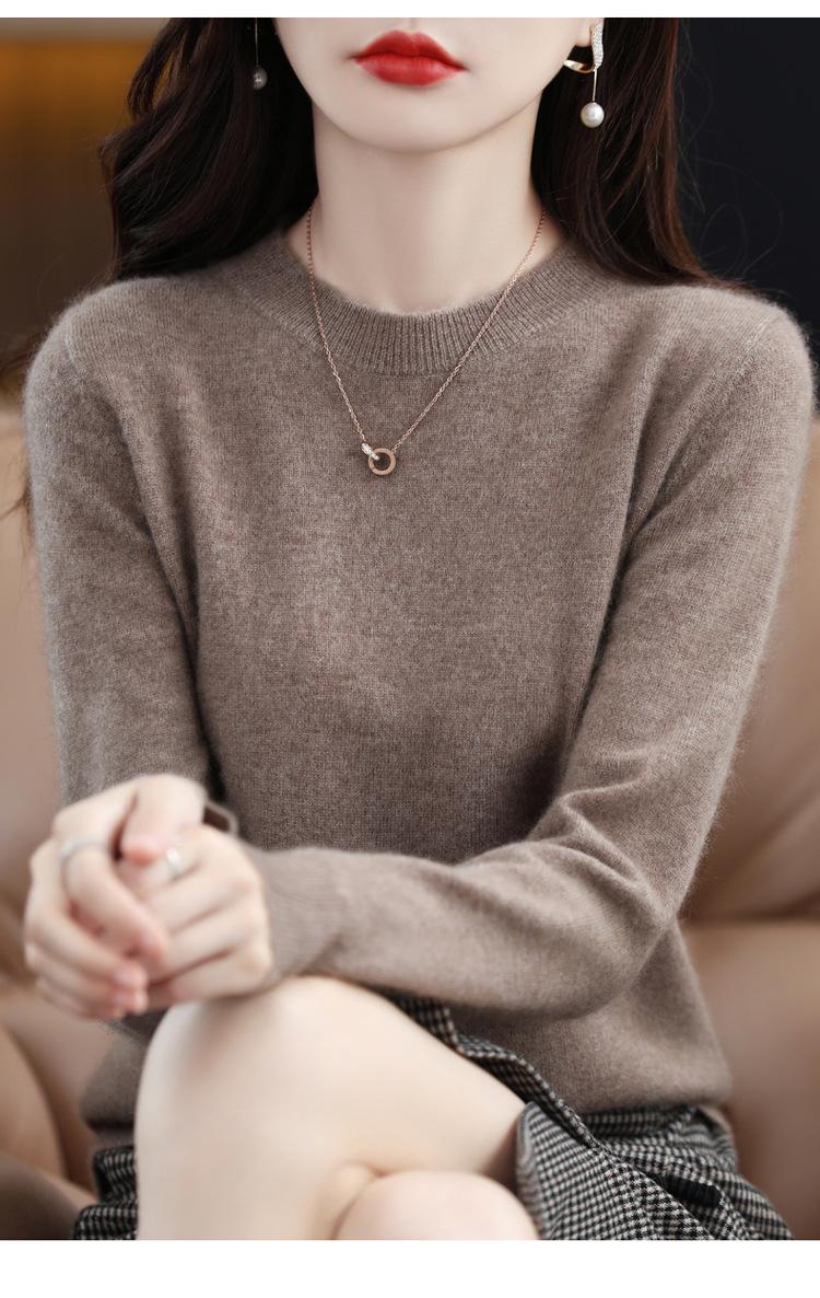 Abrigo de lana 100% pura, cárdigan de punto para mujer, suéter de cachemira sin costuras, estilo coreano, cuello redondo, prenda exterior holgada. Suéter de lana 100% pura para mujer, otoño e invierno, nuevo suéter holgado con cuello en V, jersey interior, camisa de fondo, suéter de punto corto y fino Suéter de primera línea confeccionado en seda brillante 100% lana pura para mujer, suéter holgado fufu, camisa de punto con cuello medio alto rizado Suéter de cuello alto de 100% lana para mujer, suéter de punto de pura lana, otoño e invierno 2023, nueva temporada, suéter cálido con base elegante