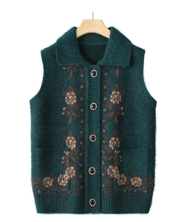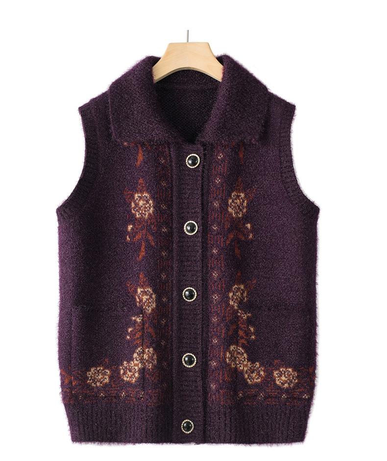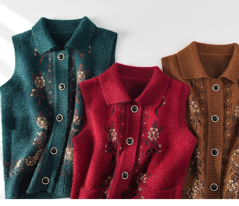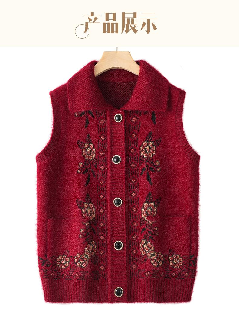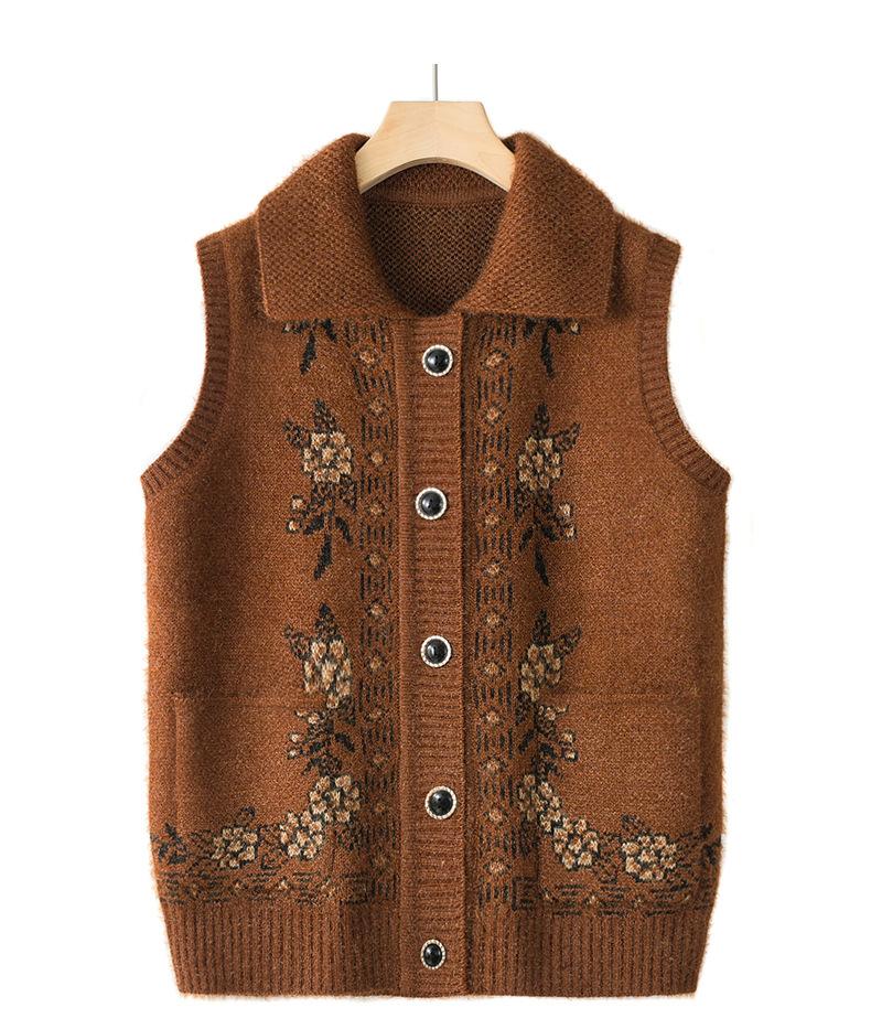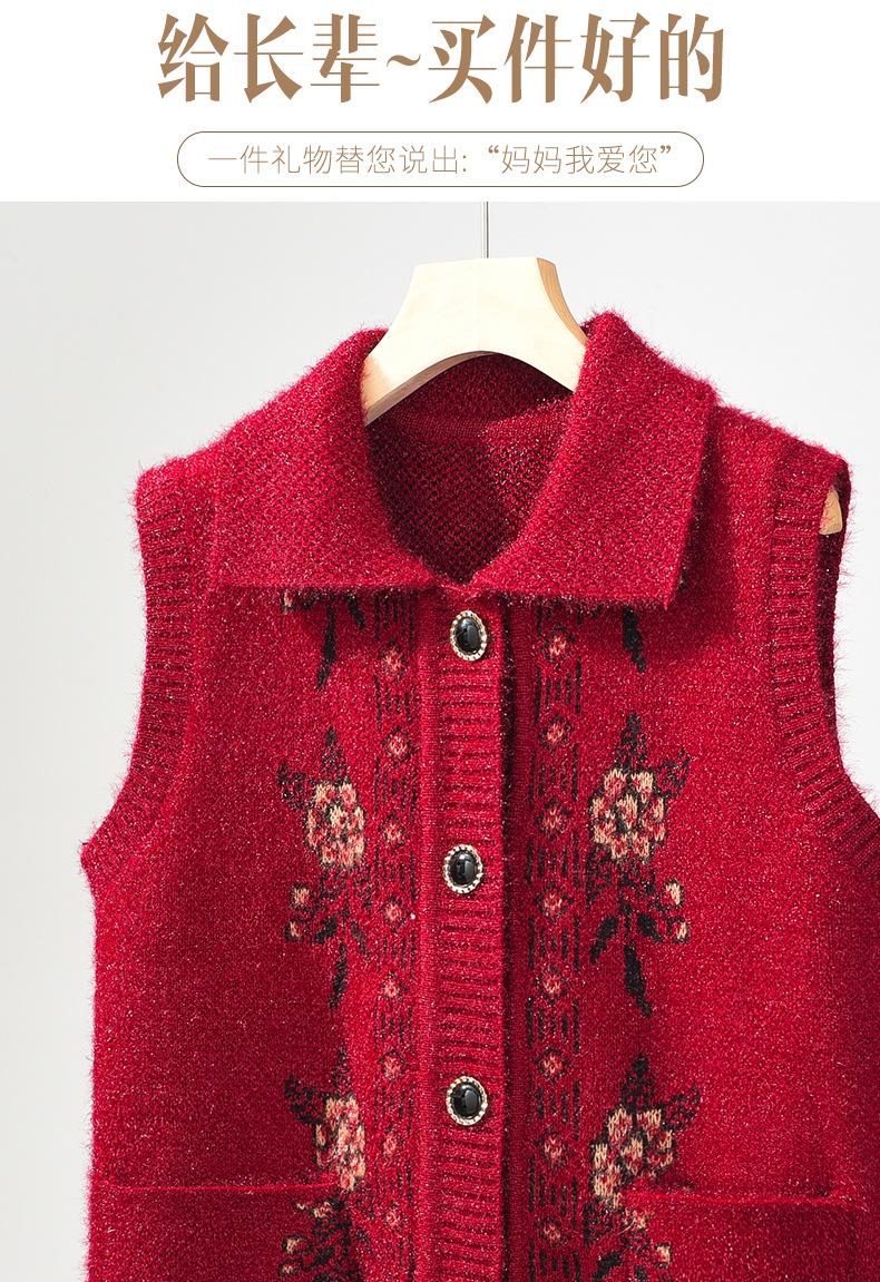 Suéter Chaleco de Punto Primavera de Mamá con Clip de Caballo Ropa Exterior Cárdigan Chaleco para Mujeres de Mediana Edad y Mayores Primavera y Otoño Nuevo