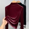 Camisa de terciopelo para mujer 2023, nueva camisa elegante de cuello alto medio estilo occidental, camisa pequeña, top interior ajustado de manga larga