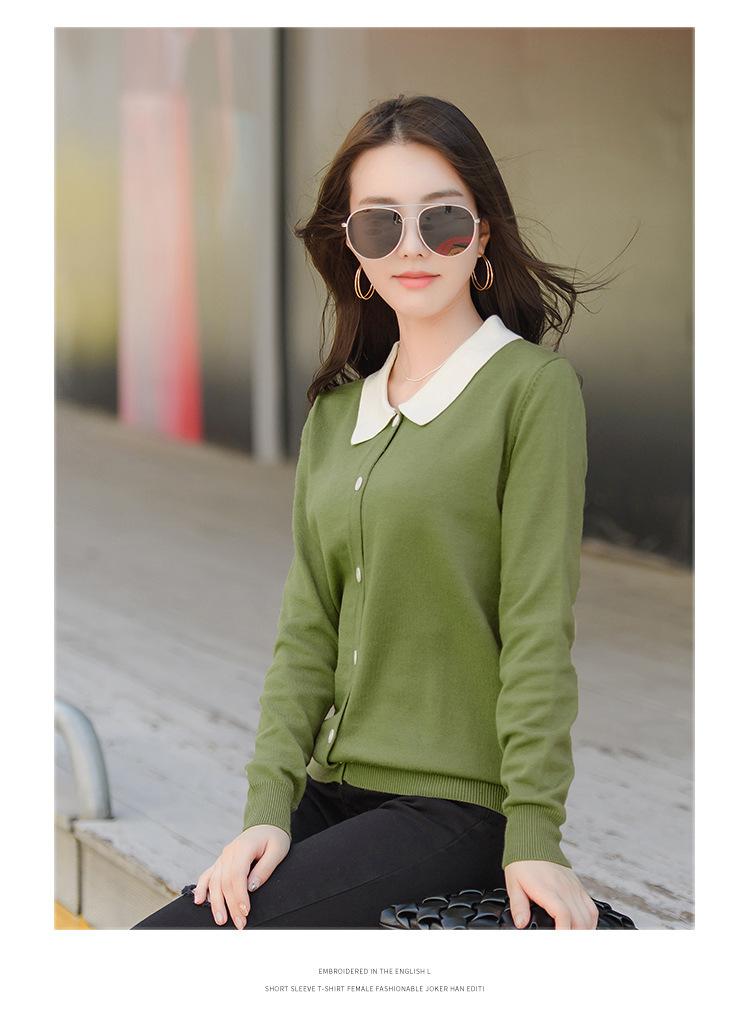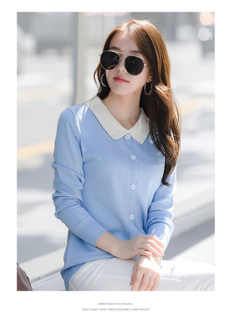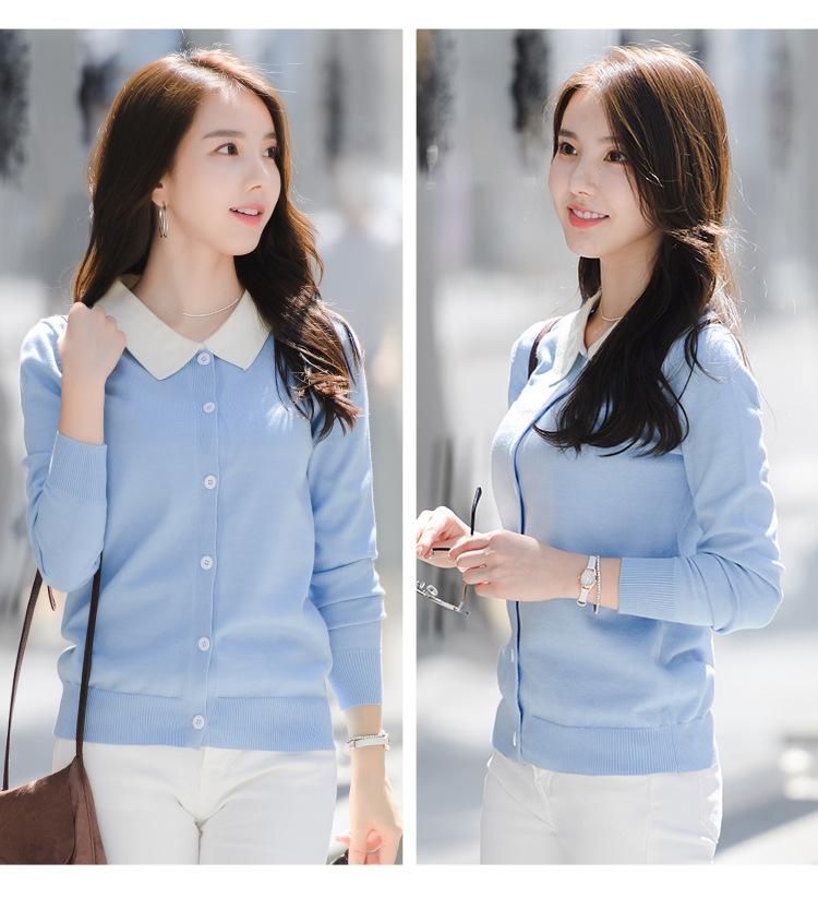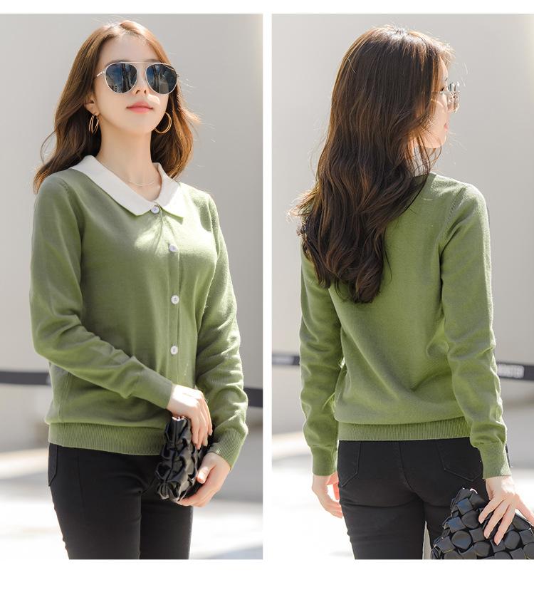 Liquidación manga larga tejido talla grande botón solapa cárdigan dulce costura top base para mujer 3022-1