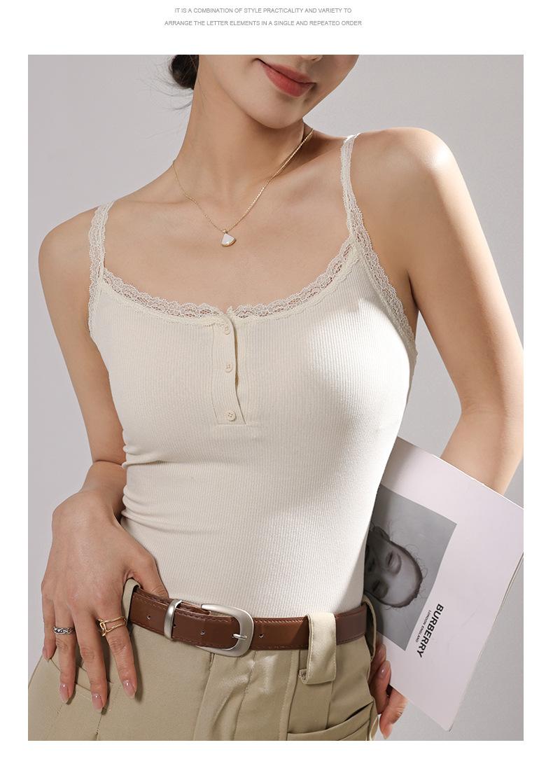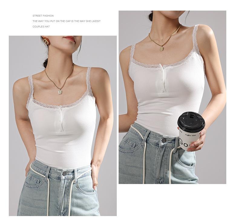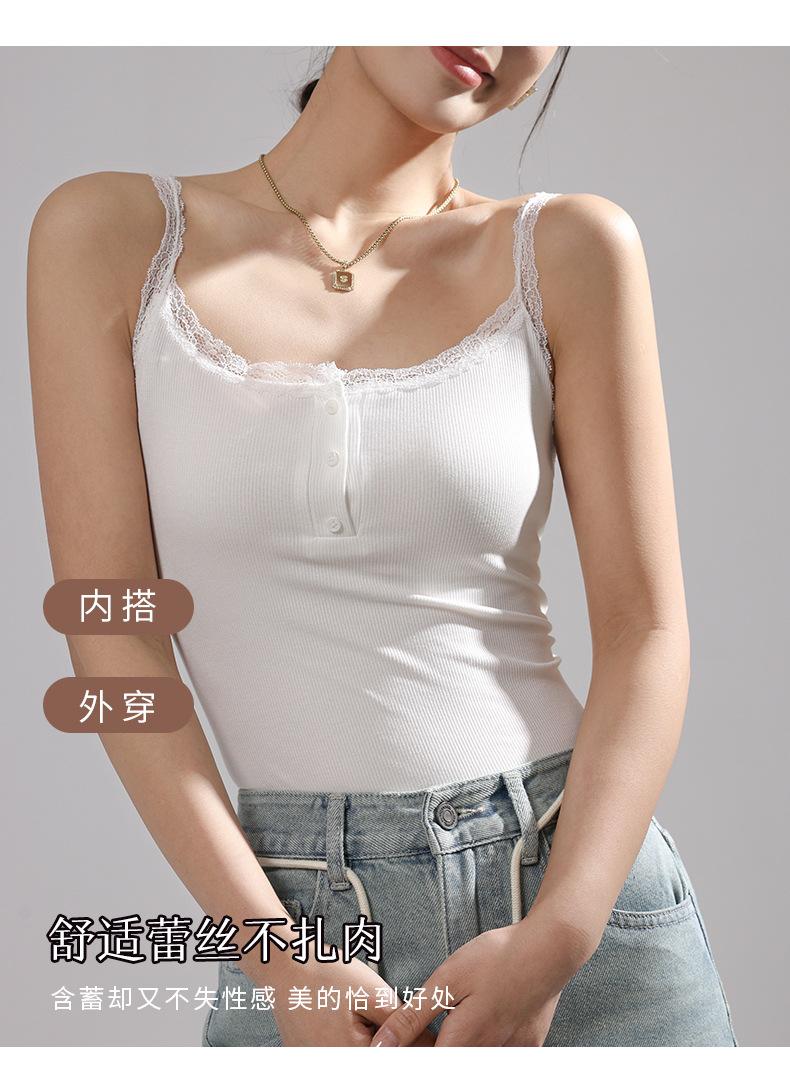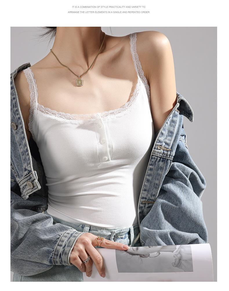 Chaleco de Encaje Estilo White Pure Lust Suspbottomer para Mujer Verano Dulce y Picante Ajustado Casual para Fondo Top Exterior