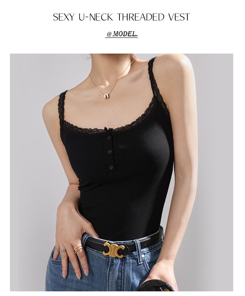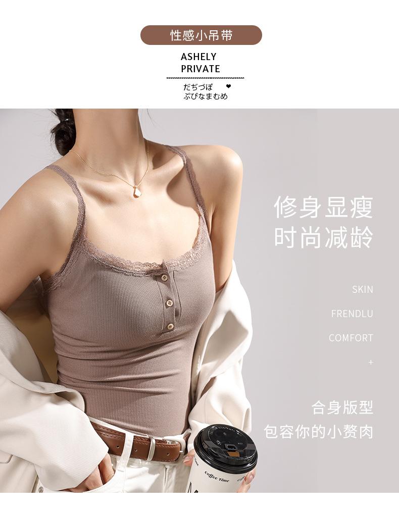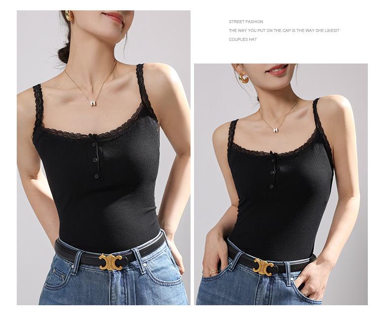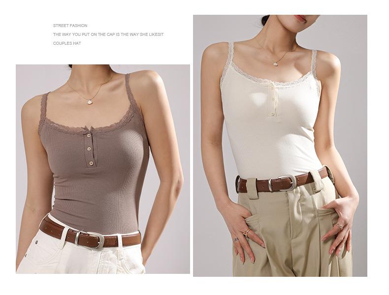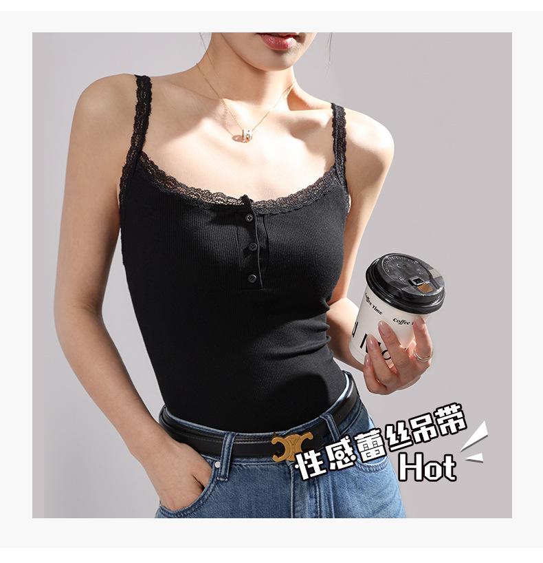 Chaleco de Encaje Estilo White Pure Lust Suspbottomer para Mujer Verano Dulce y Picante Ajustado Casual para Fondo Top Exterior