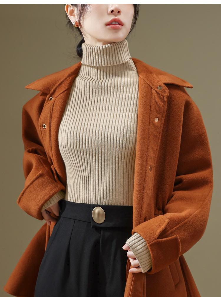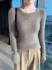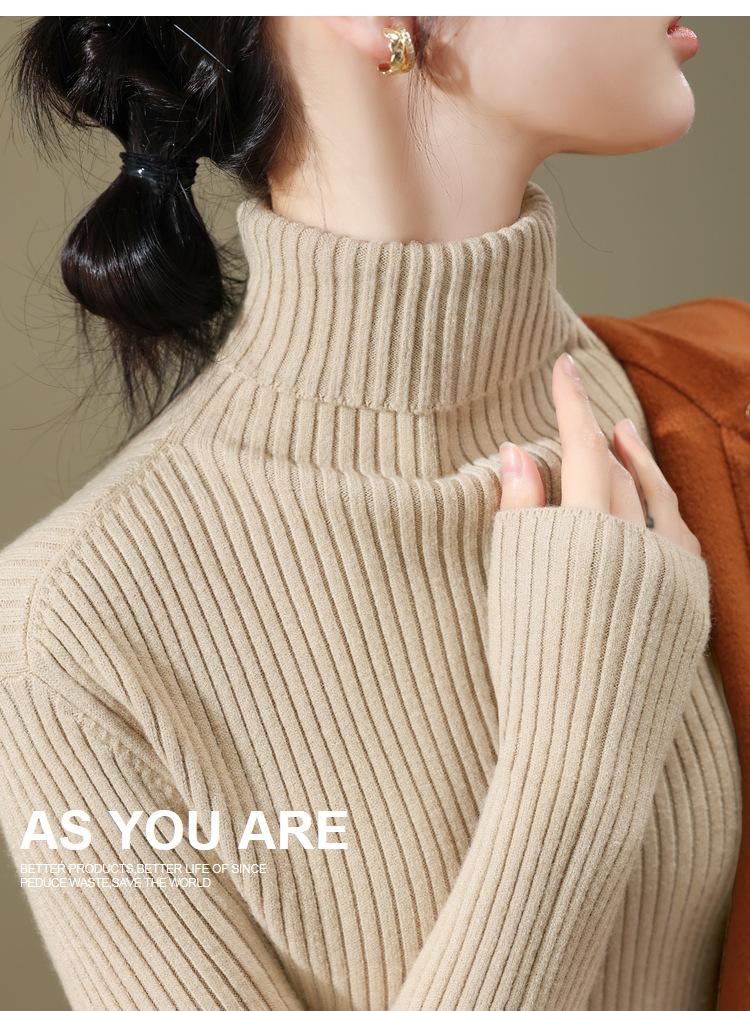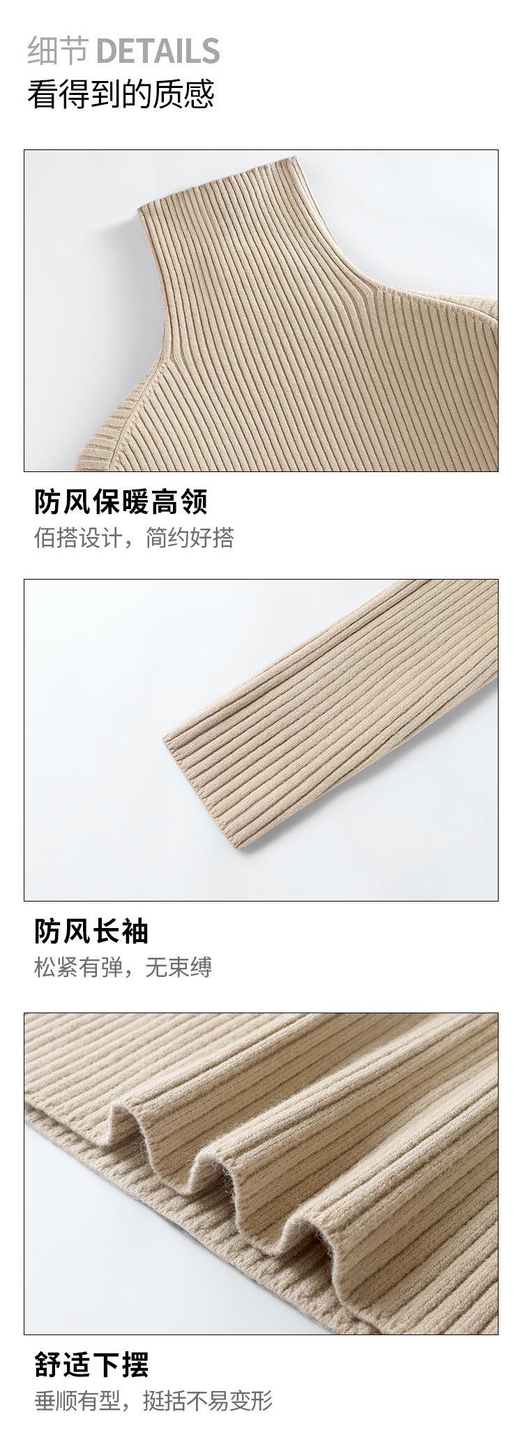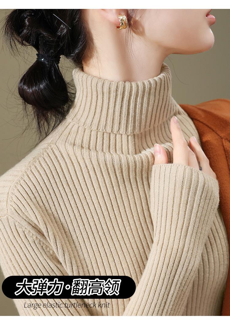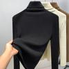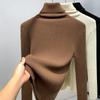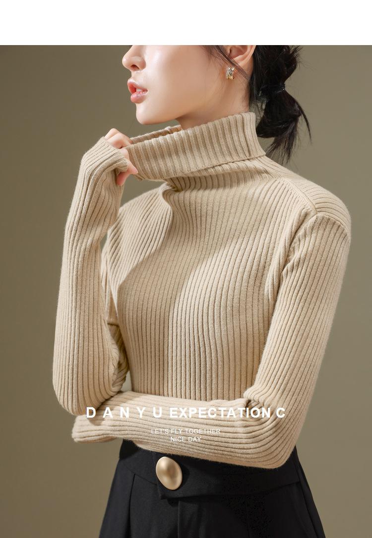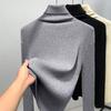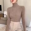 Camiseta básica de punto de cuello alto para mujer 2023 Nuevo suéter de punto acanalado con cuello vuelto para mujer, cálido, interno, ceñido a la cintura