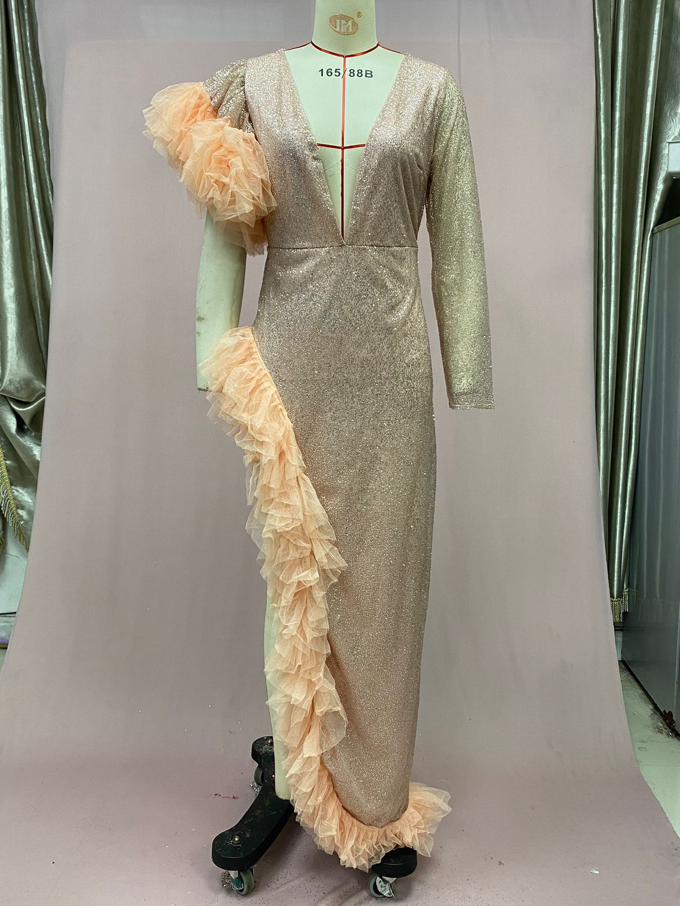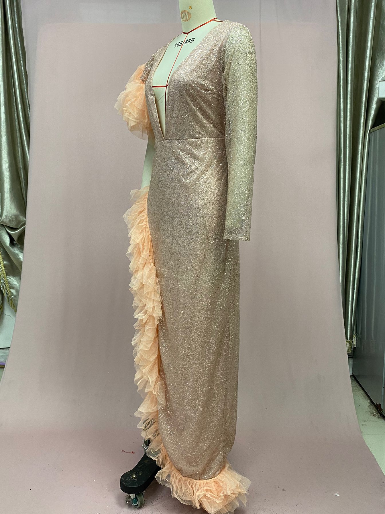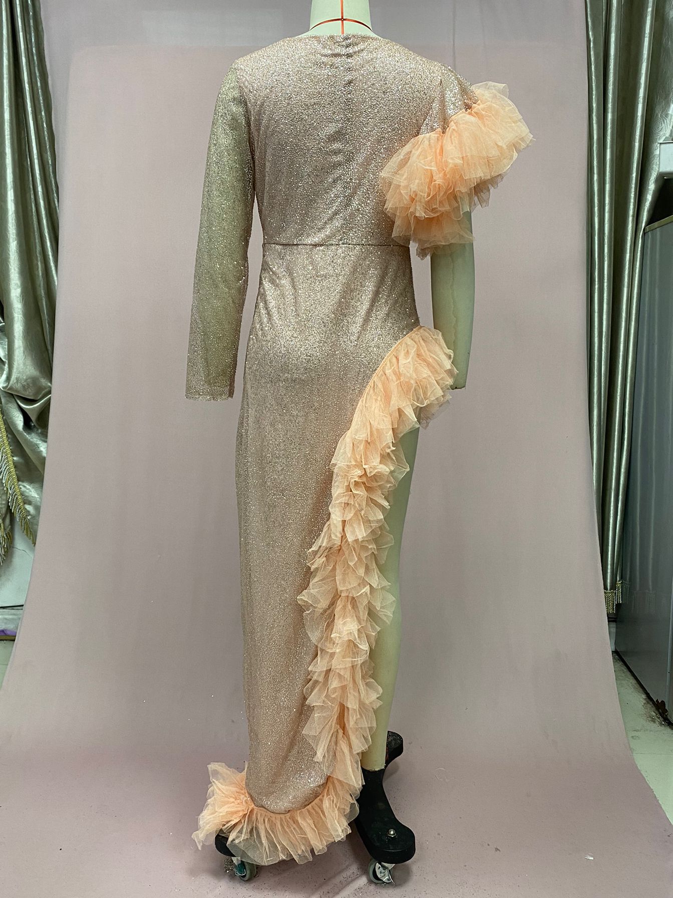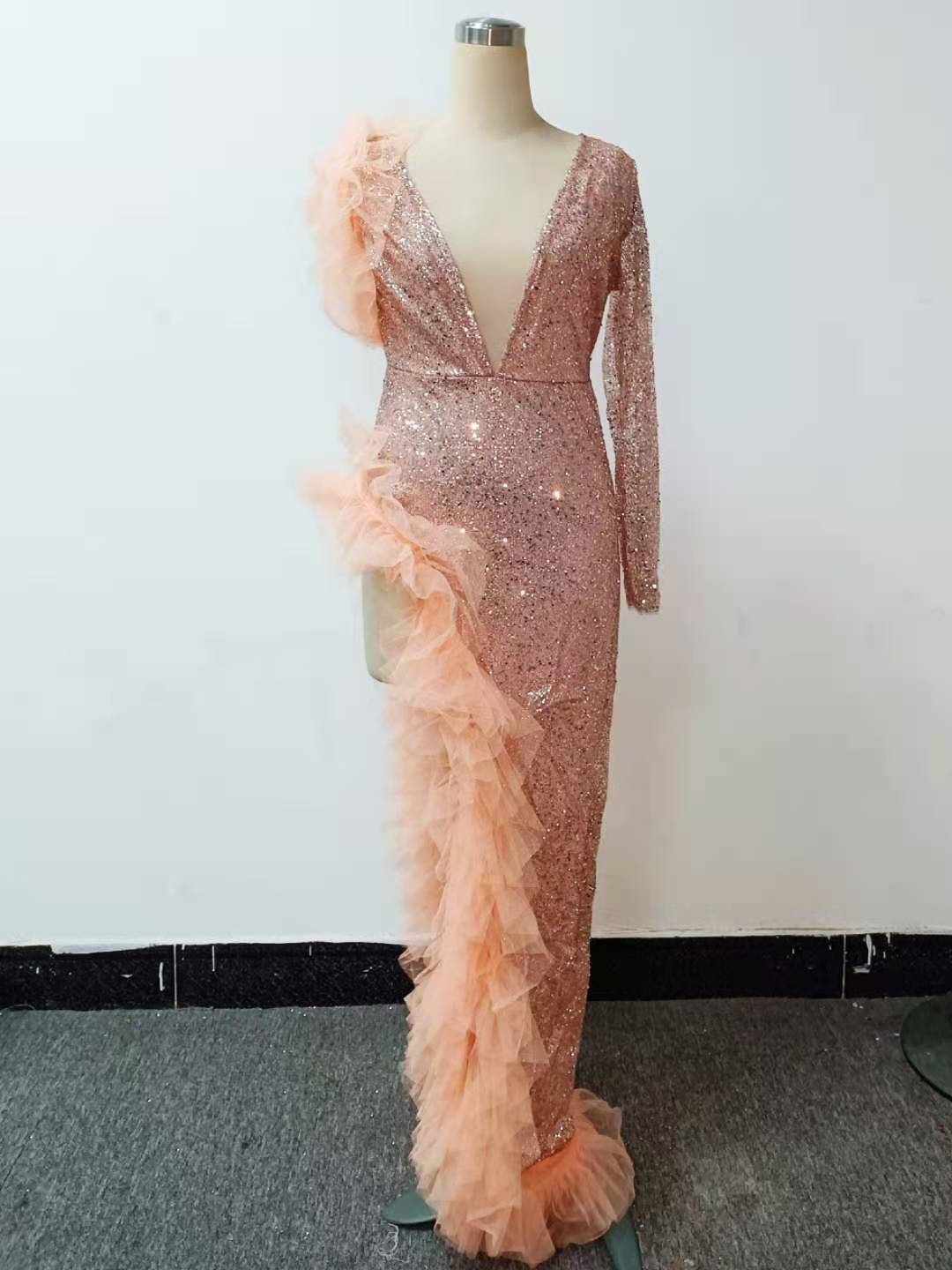 2025 Nuevo Transfronterizo Ropa Transfronteriza Europea y Americana Vestido Amazon Sexy Lentejuelas Manga Larga Asimétrico Vestido de Noche