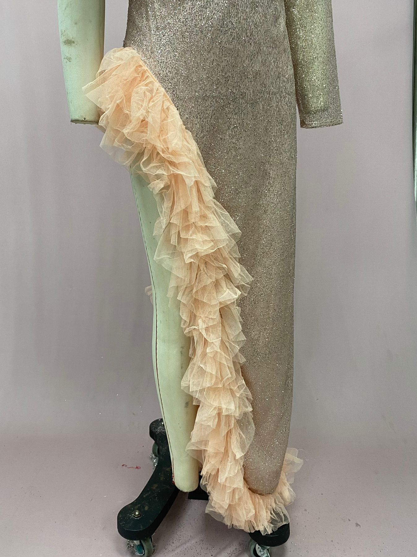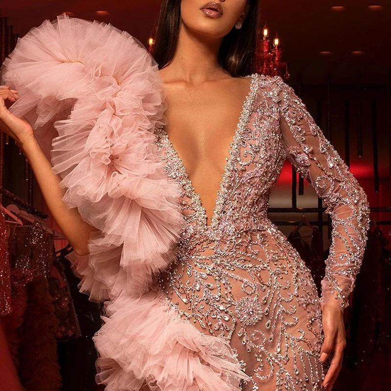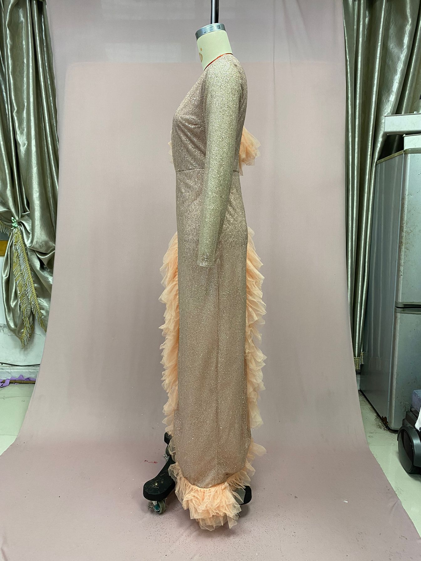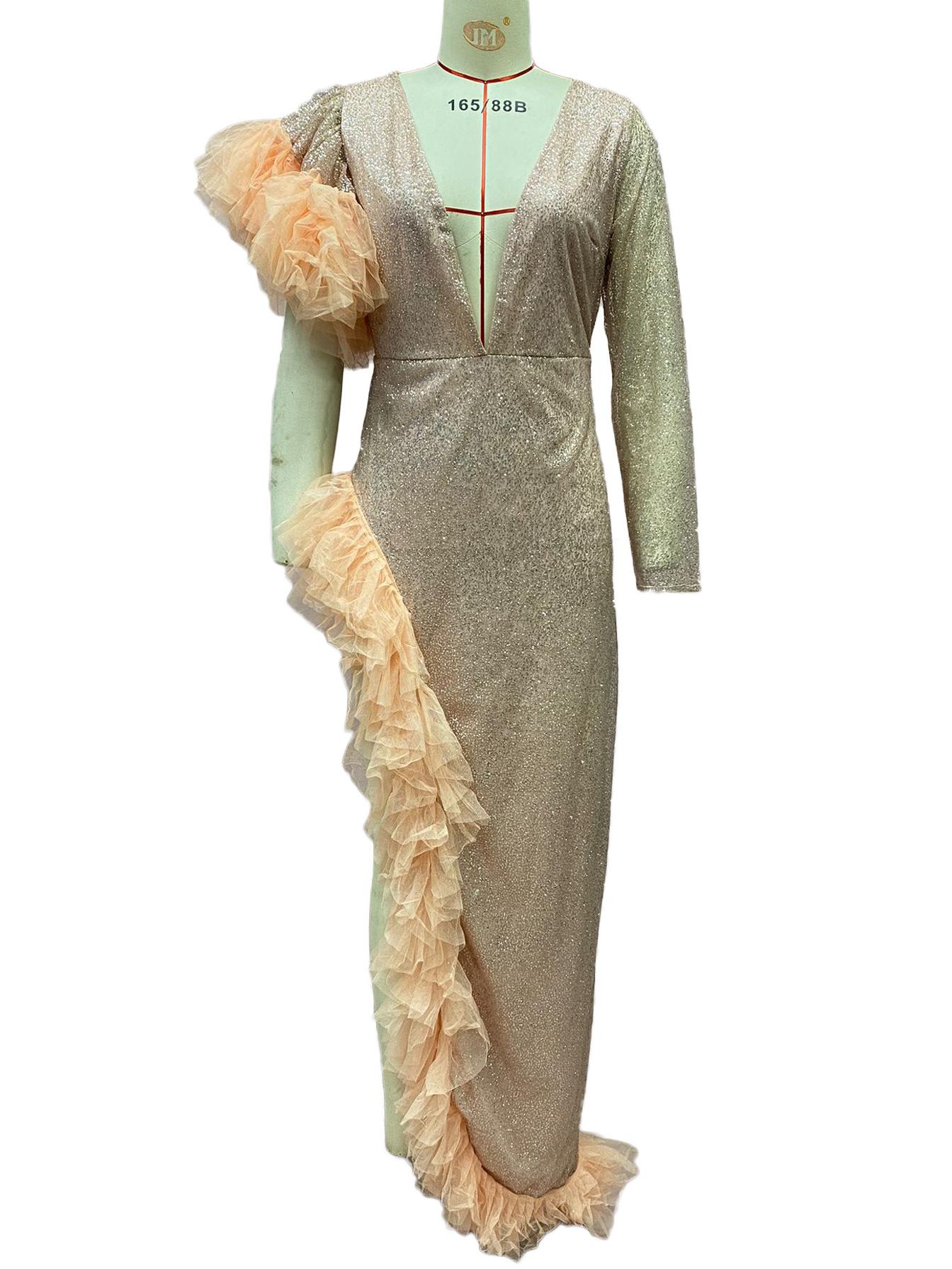 2025 Nuevo Transfronterizo Ropa Transfronteriza Europea y Americana Vestido Amazon Sexy Lentejuelas Manga Larga Asimétrico Vestido de Noche