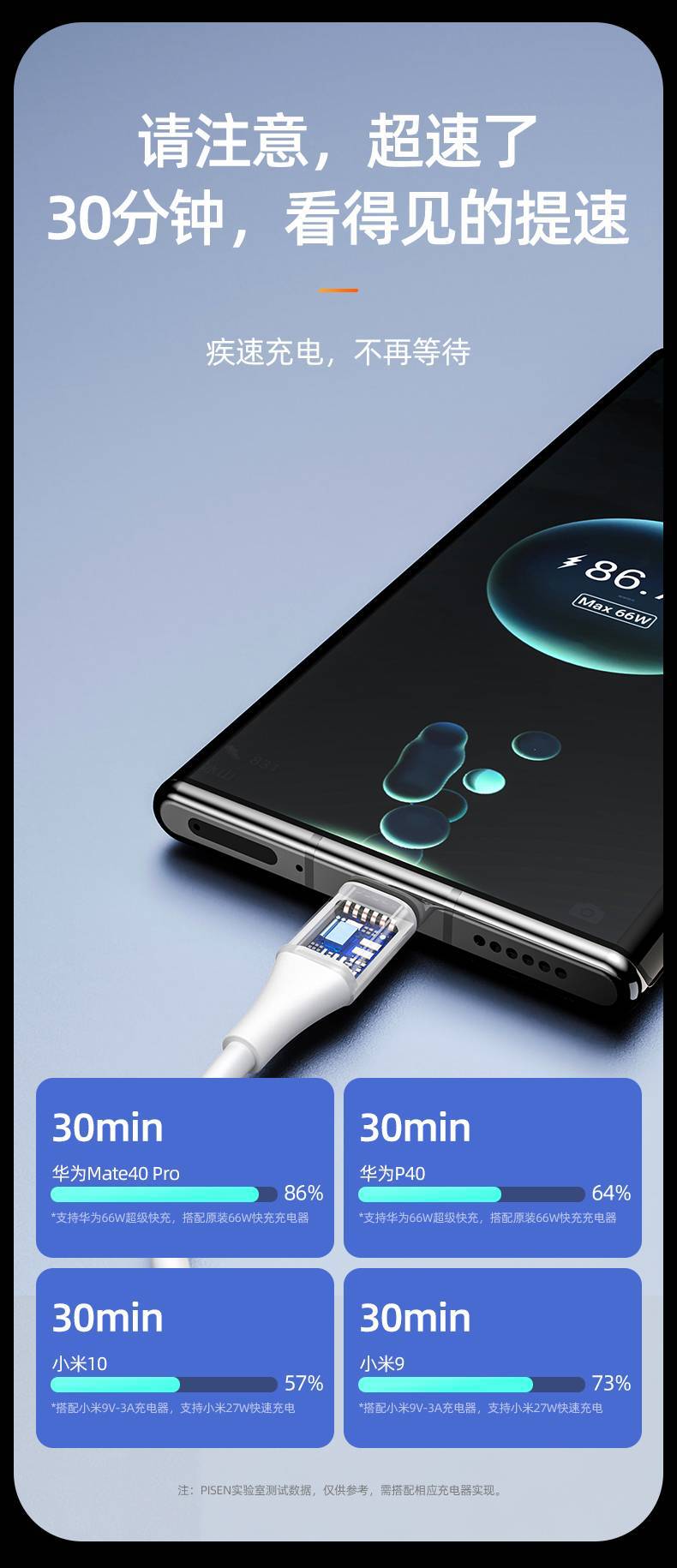 El cable de datos Pinsheng de carga rápida tipo C es adecuado para el cable de carga Android vivo Huawei Xiaomi oppo