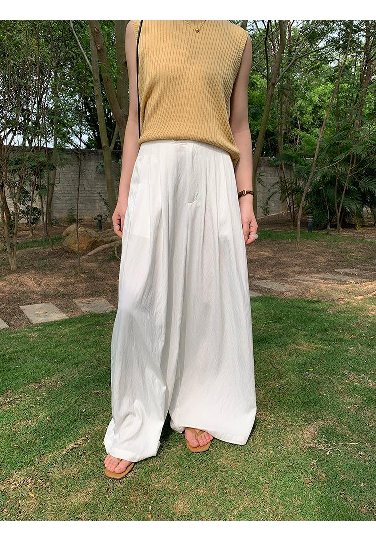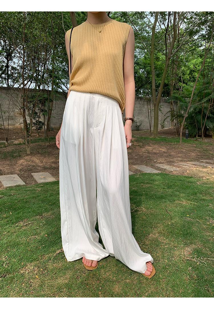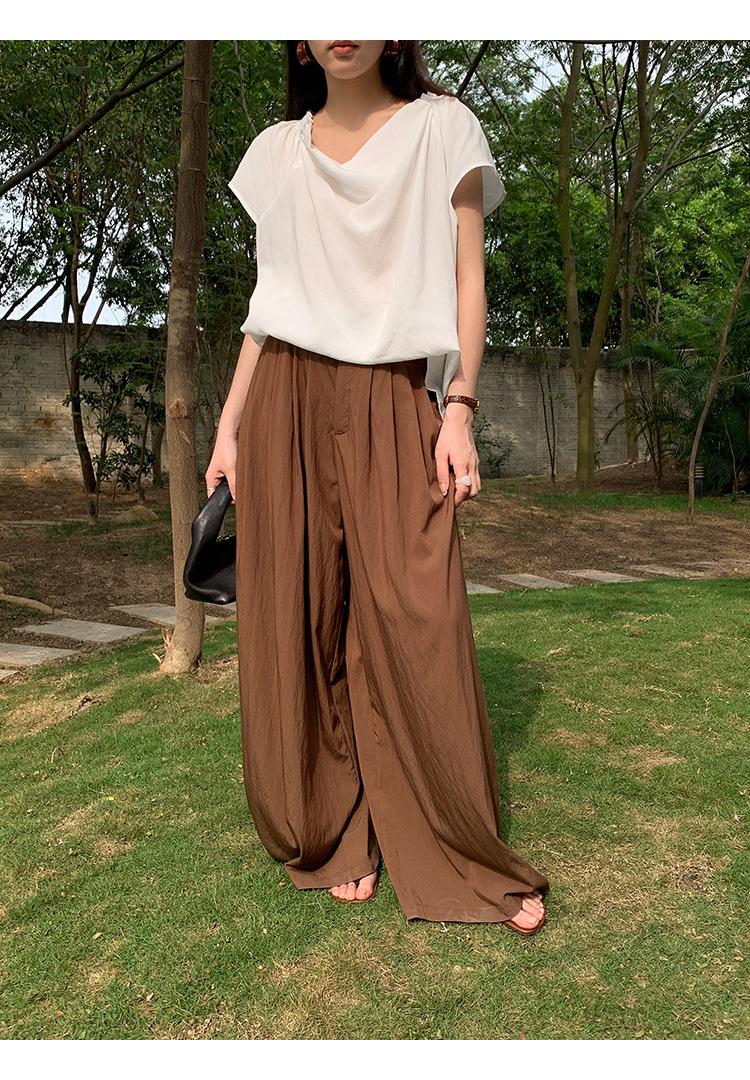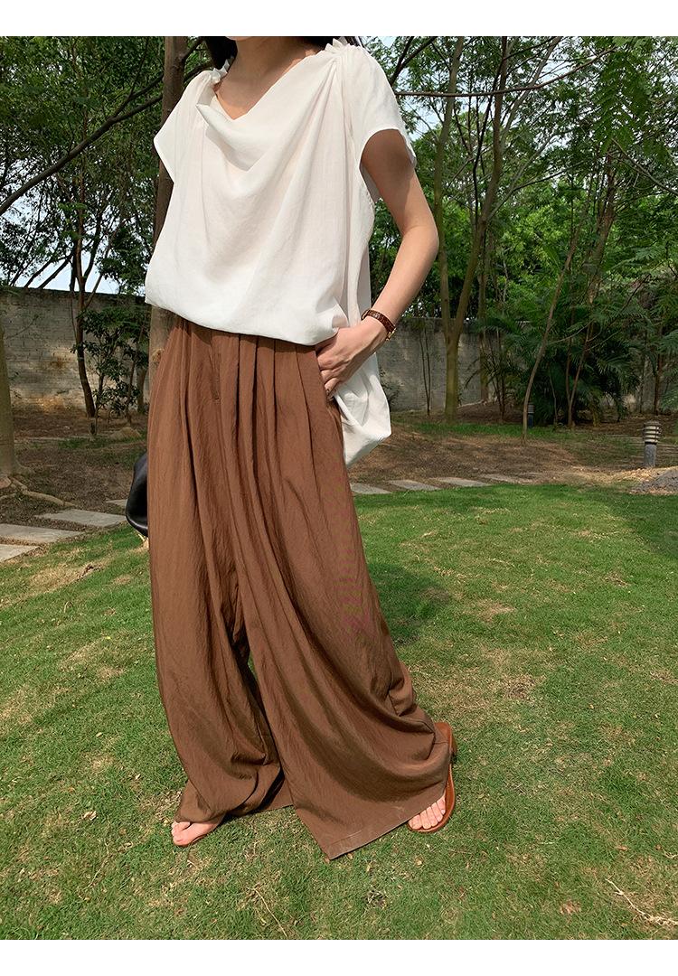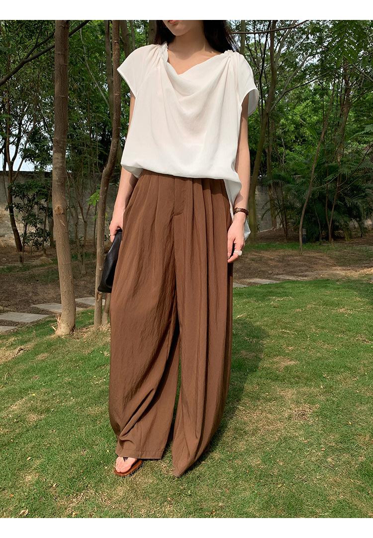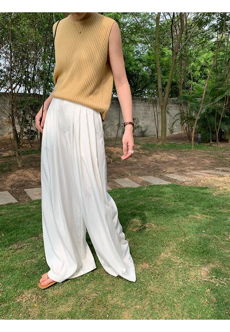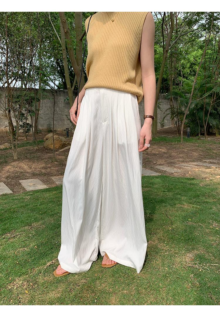 Pantalones Rectos Blancos Wanwei Largos hasta el Piso Drapeados para Mujer 2024 Verano Nuevo Estilo Plisados de Cintura Alta Versión Ancha Casuales Pantalones Largos 163