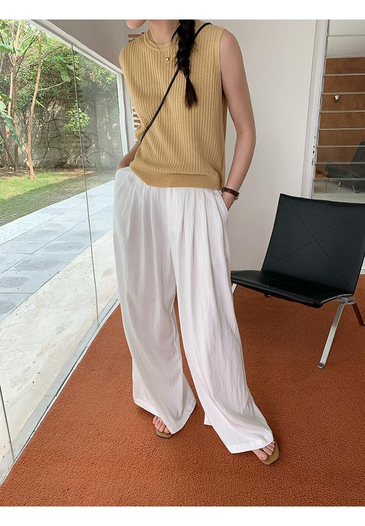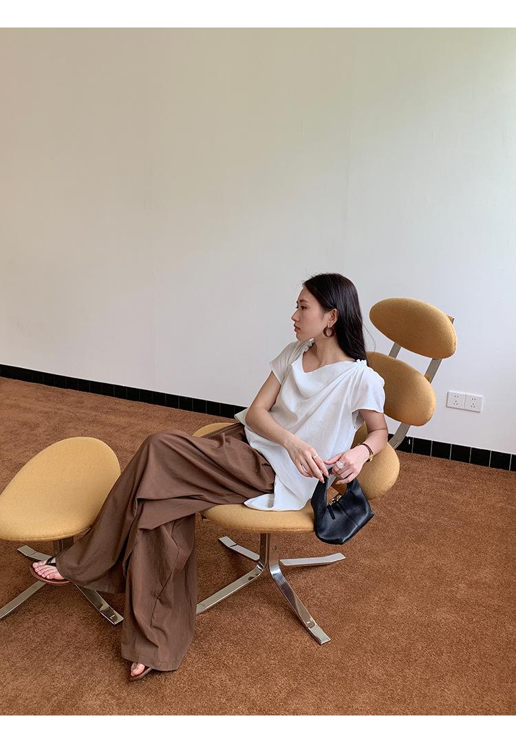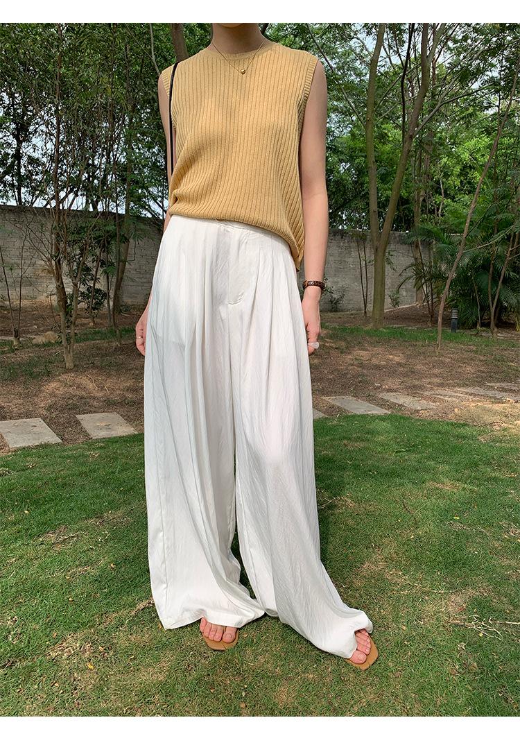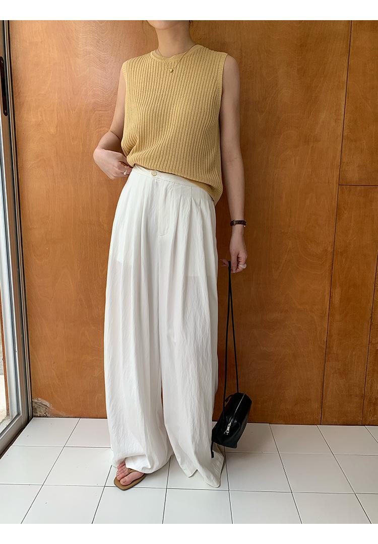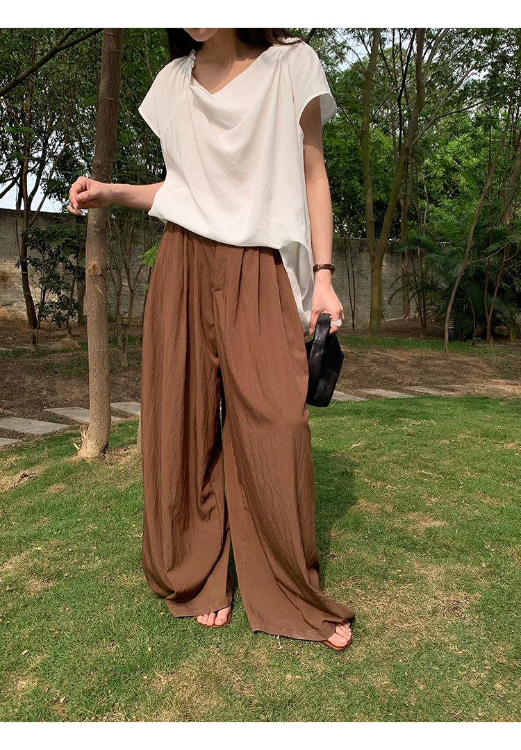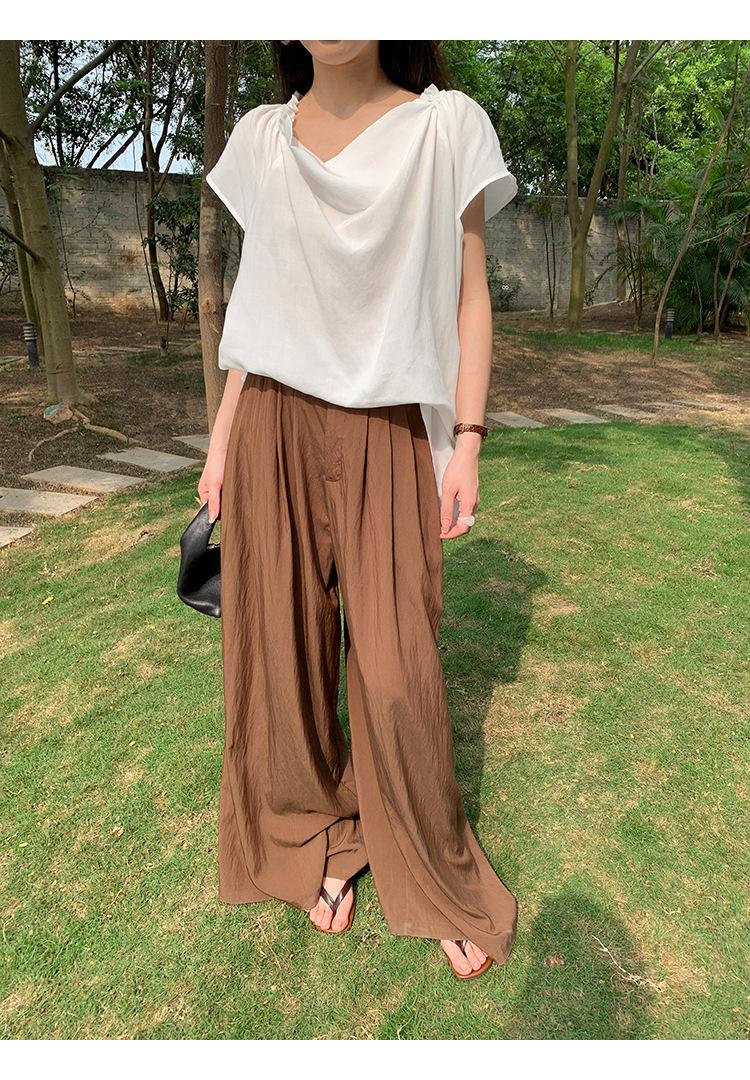 Pantalones Rectos Blancos Wanwei Largos hasta el Piso Drapeados para Mujer 2024 Verano Nuevo Estilo Plisados de Cintura Alta Versión Ancha Casuales Pantalones Largos 163