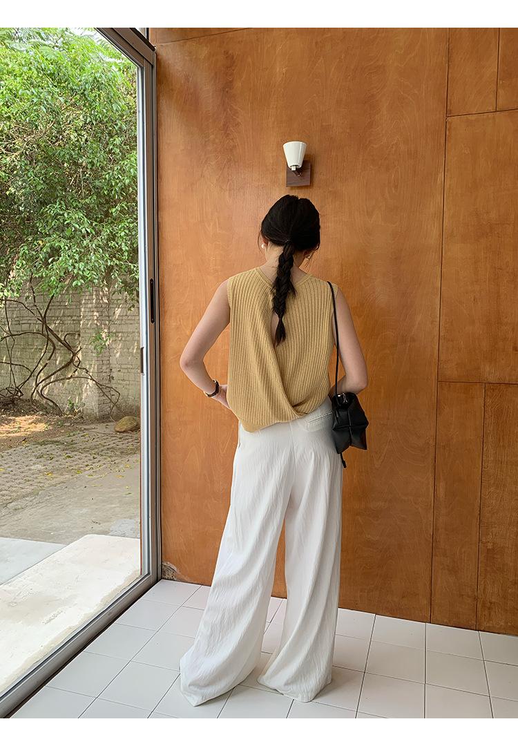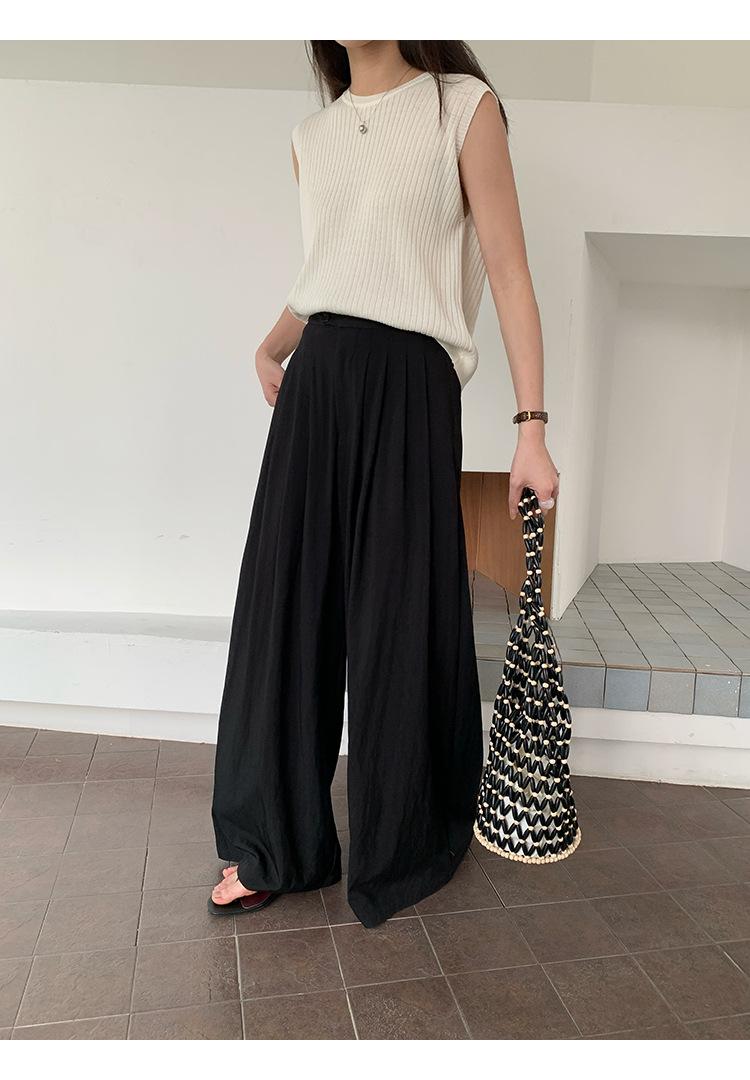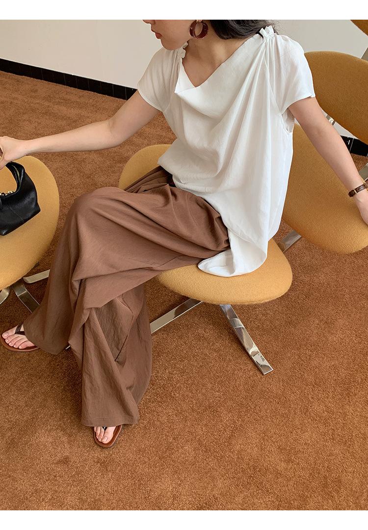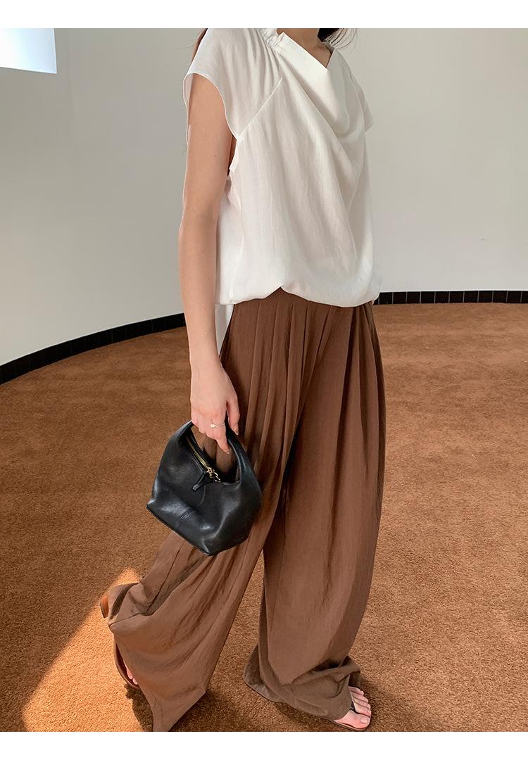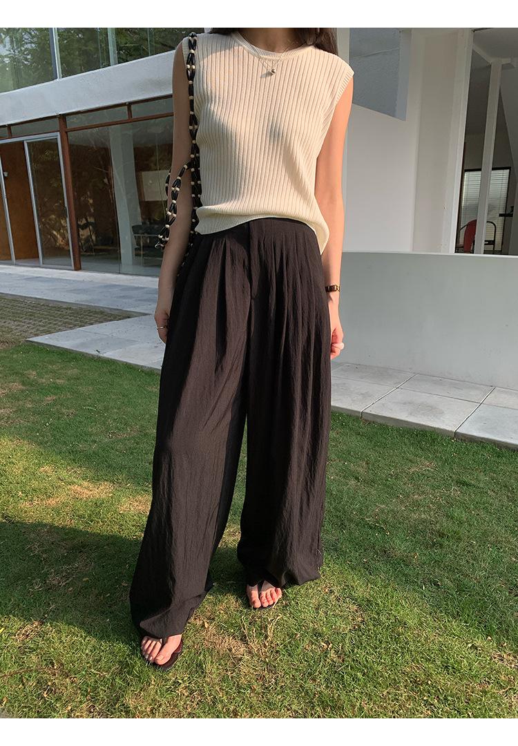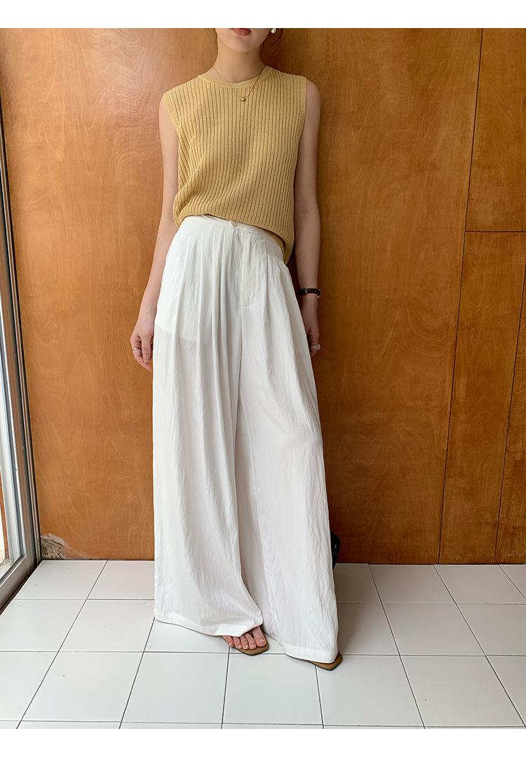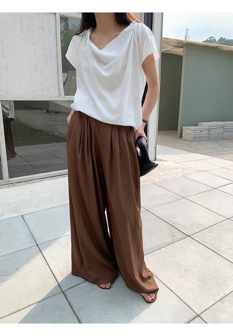 Pantalones Rectos Blancos Wanwei Largos hasta el Piso Drapeados para Mujer 2024 Verano Nuevo Estilo Plisados de Cintura Alta Versión Ancha Casuales Pantalones Largos 163