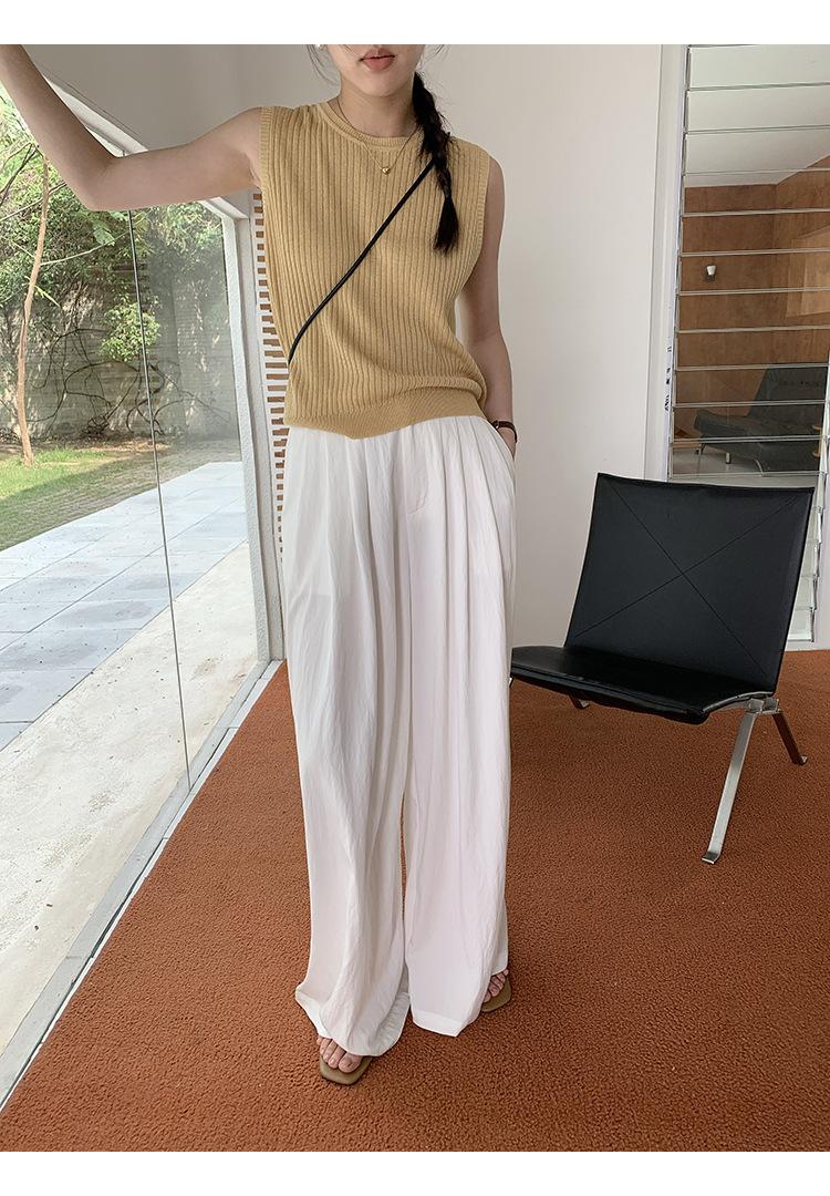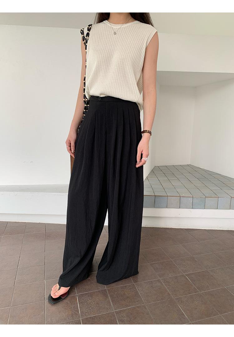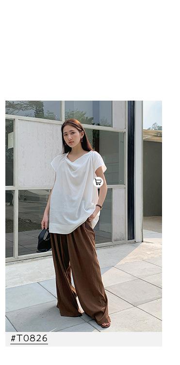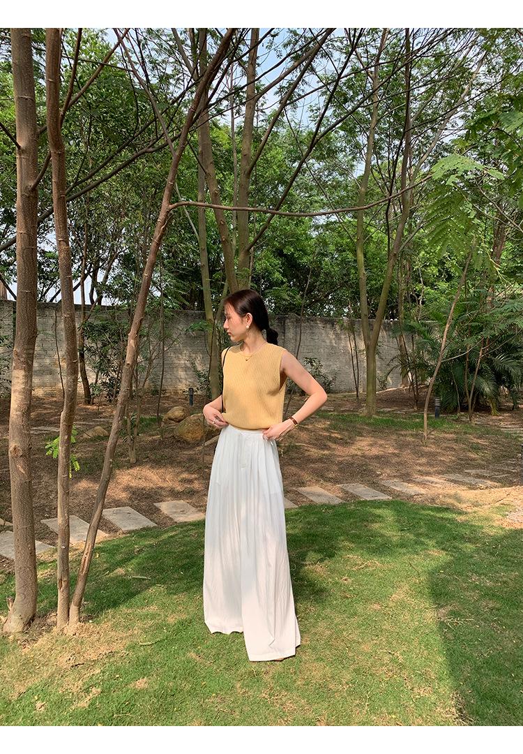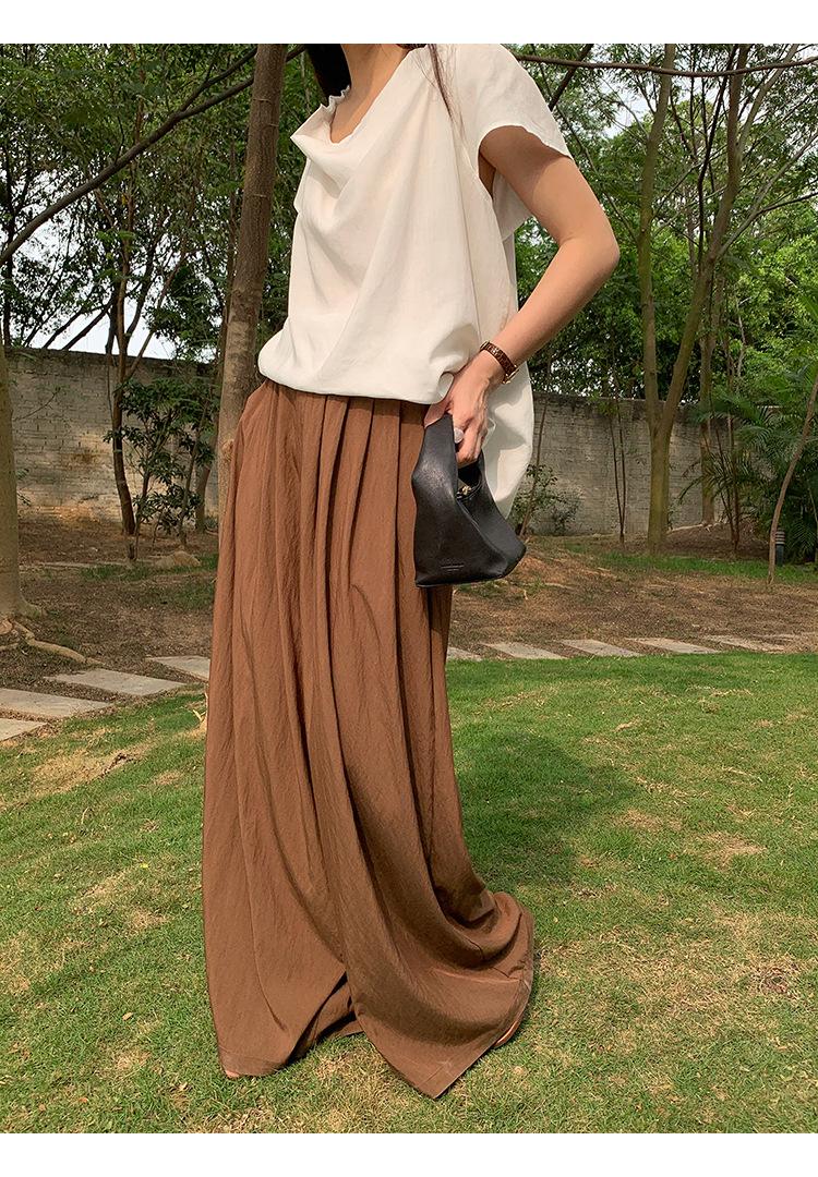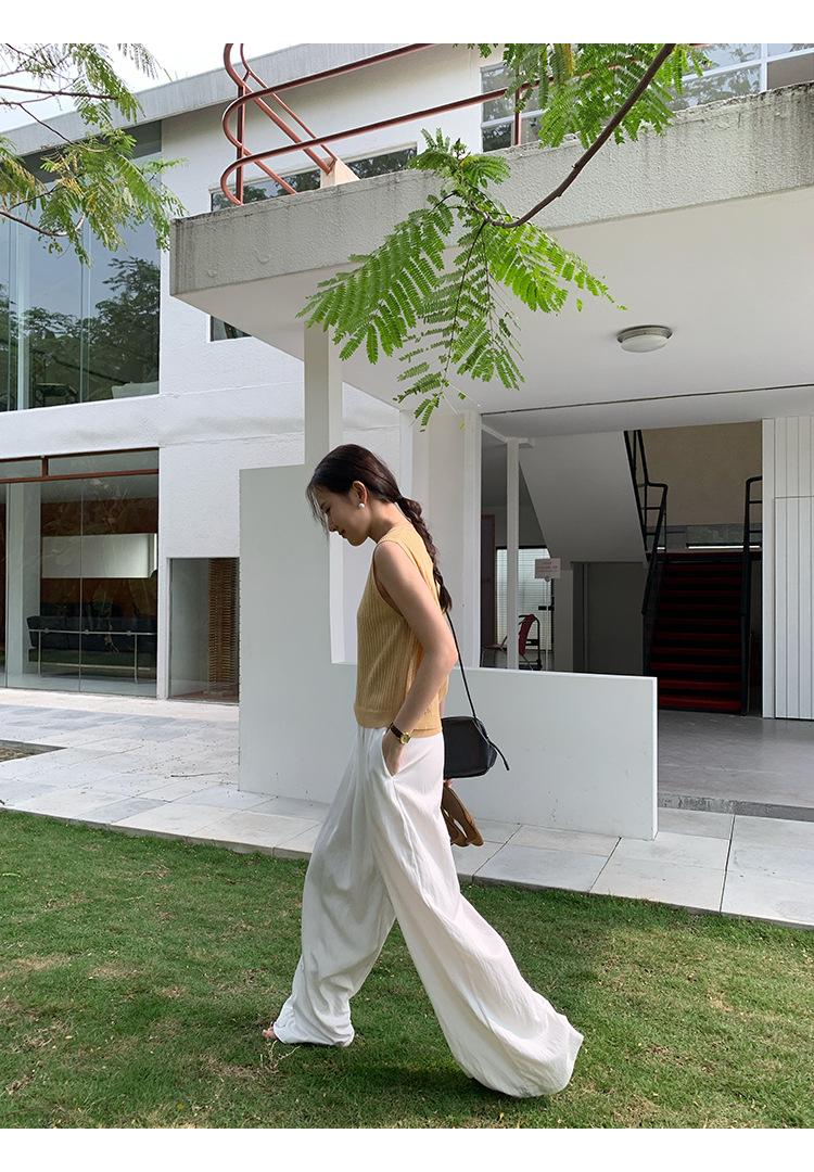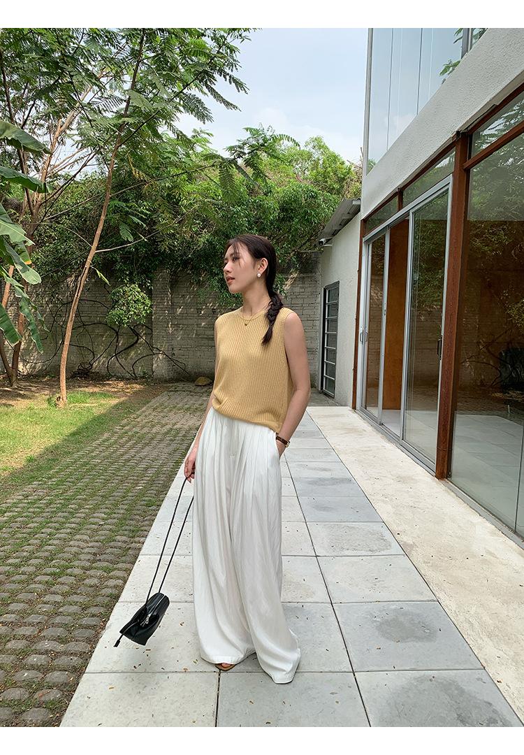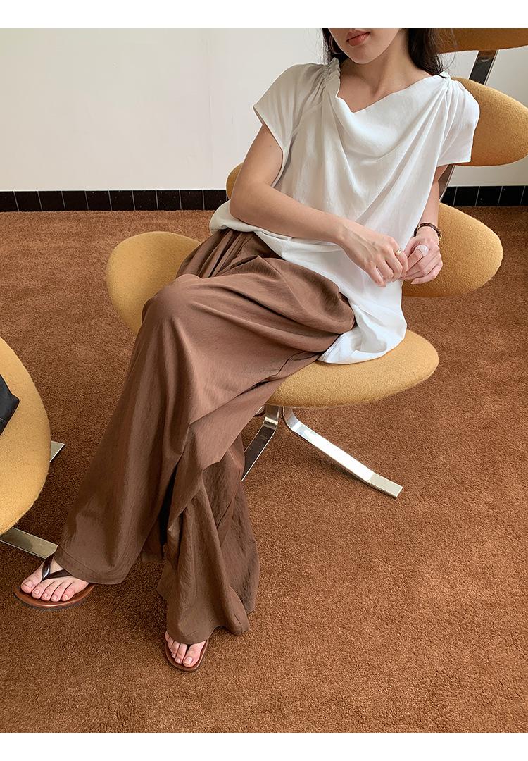Pantalones Rectos Blancos Wanwei Largos hasta el Piso Drapeados para Mujer 2024 Verano Nuevo Estilo Plisados de Cintura Alta Versión Ancha Casuales Pantalones Largos 163