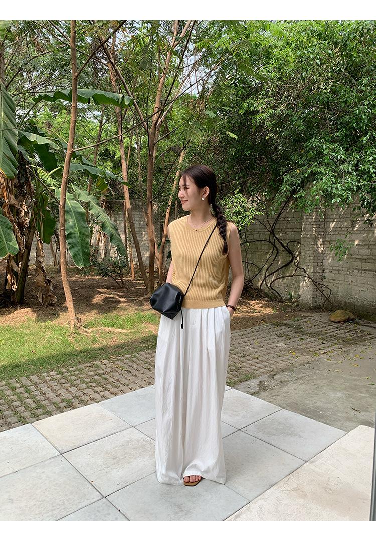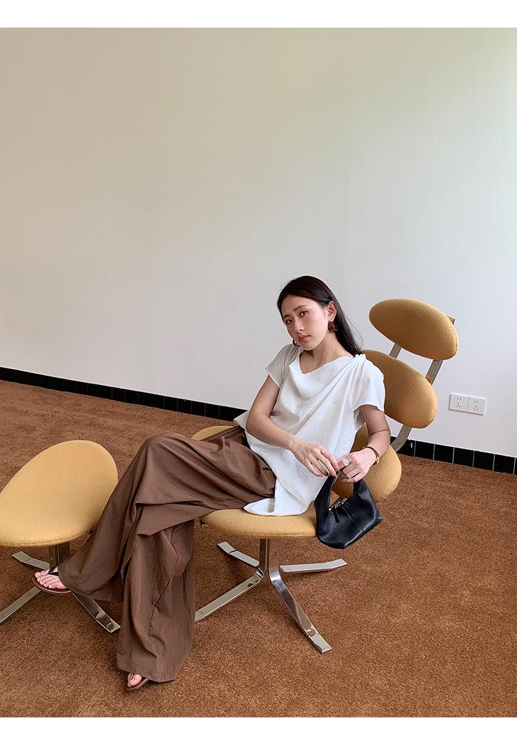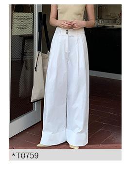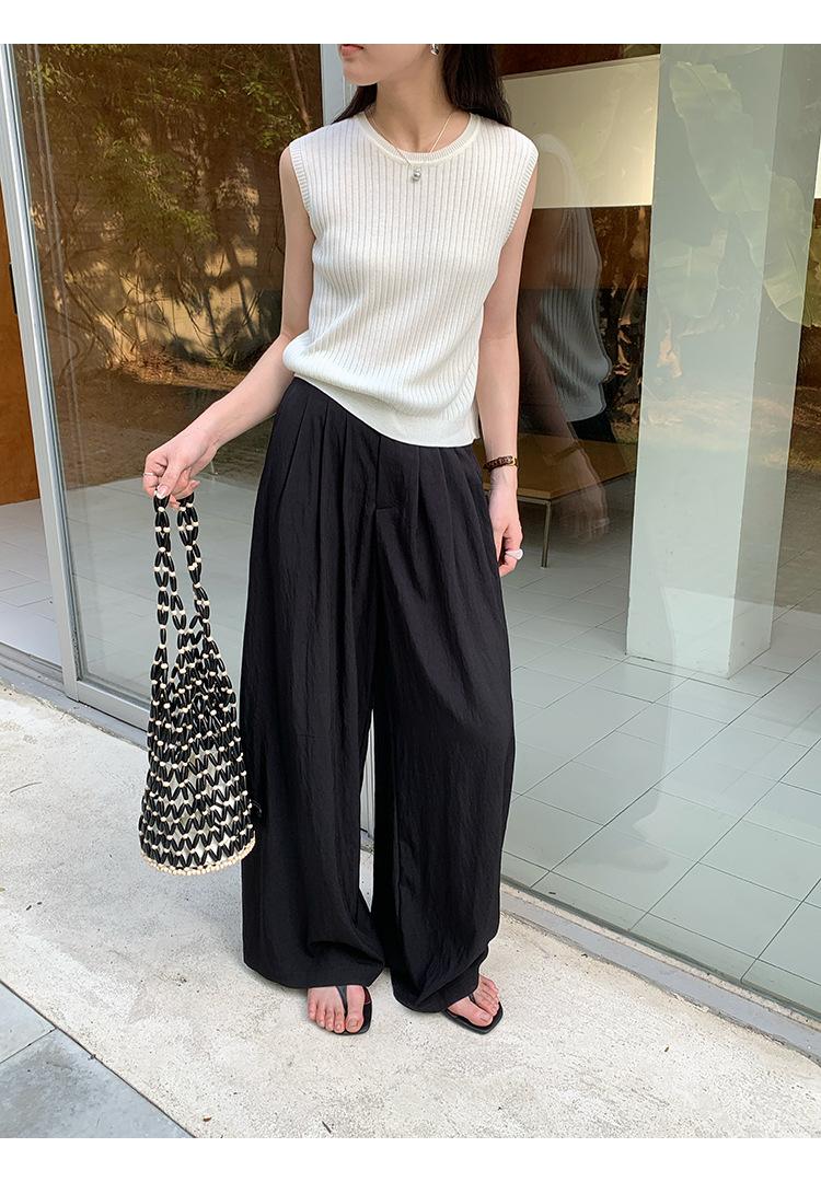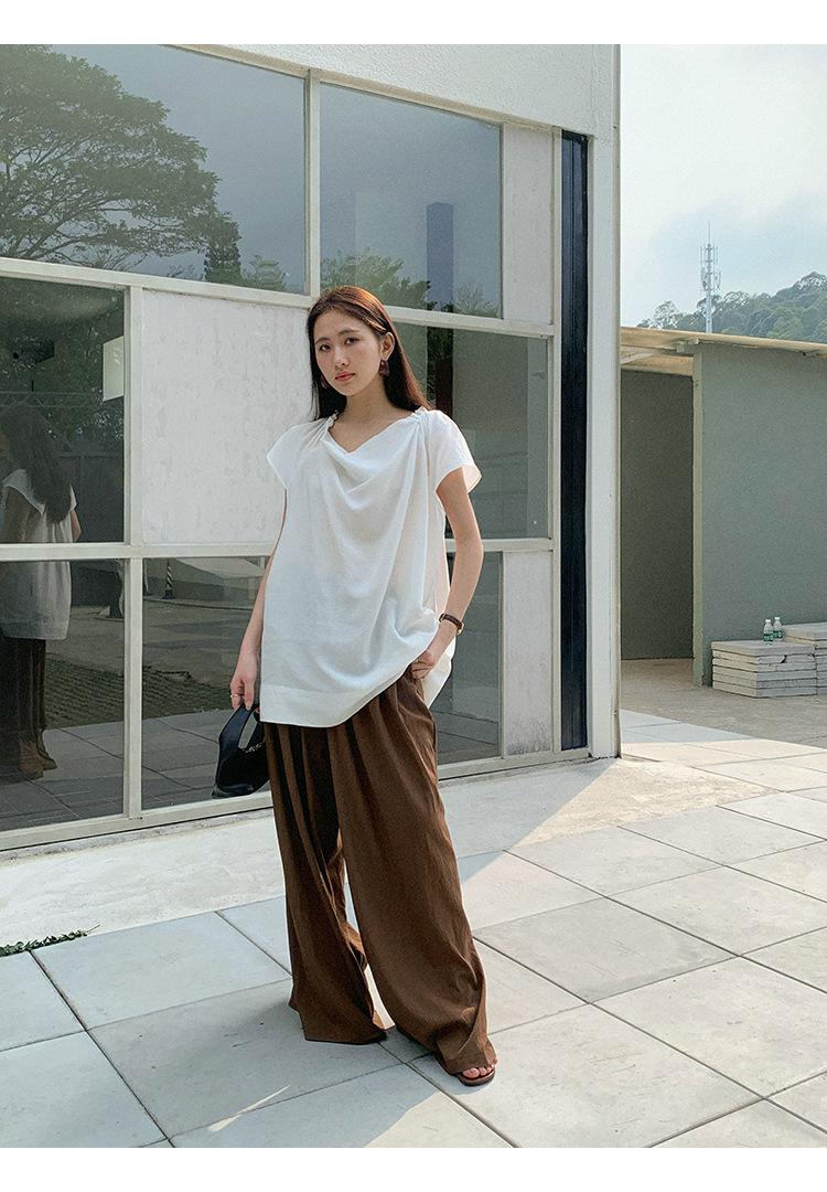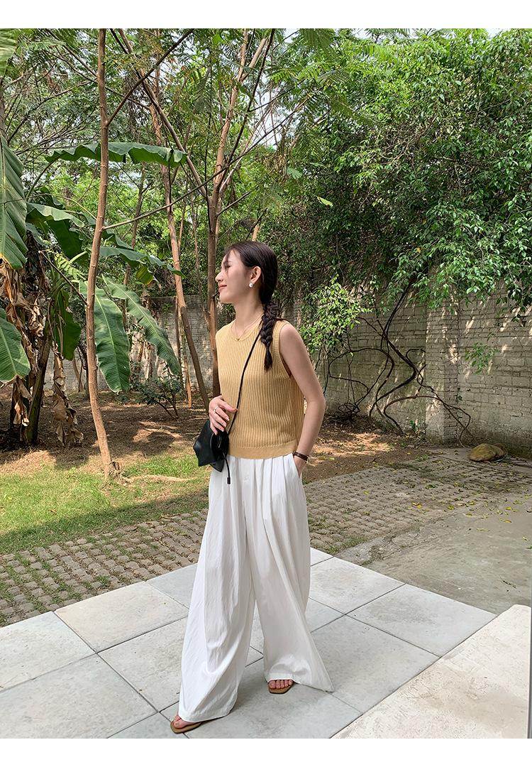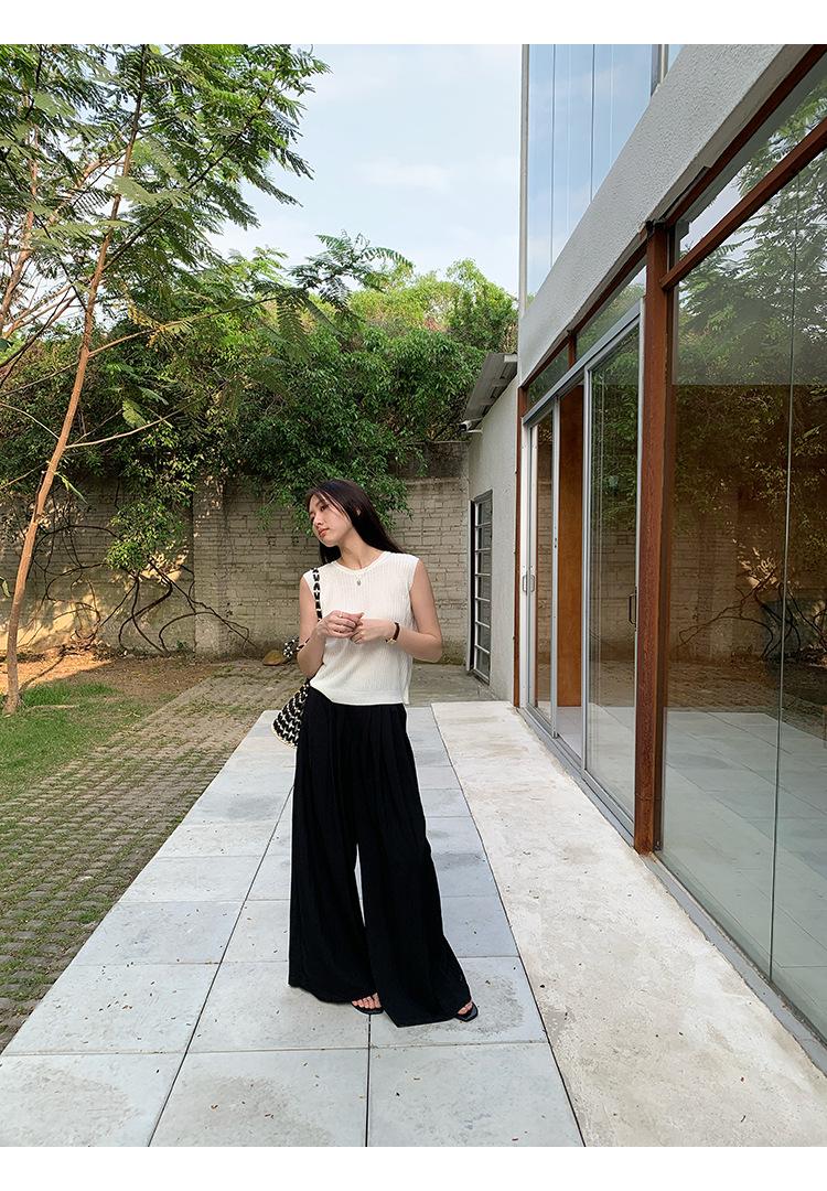 Pantalones Rectos Blancos Wanwei Largos hasta el Piso Drapeados para Mujer 2024 Verano Nuevo Estilo Plisados de Cintura Alta Versión Ancha Casuales Pantalones Largos 163